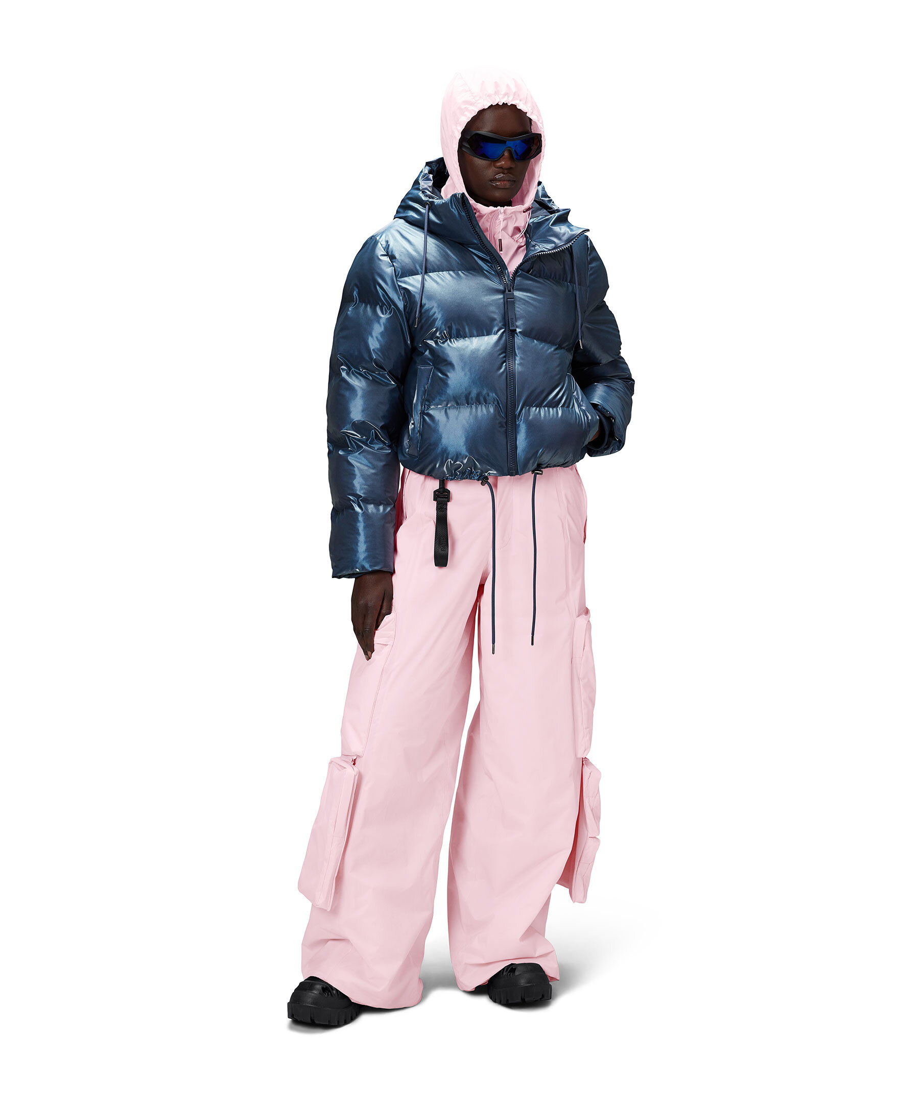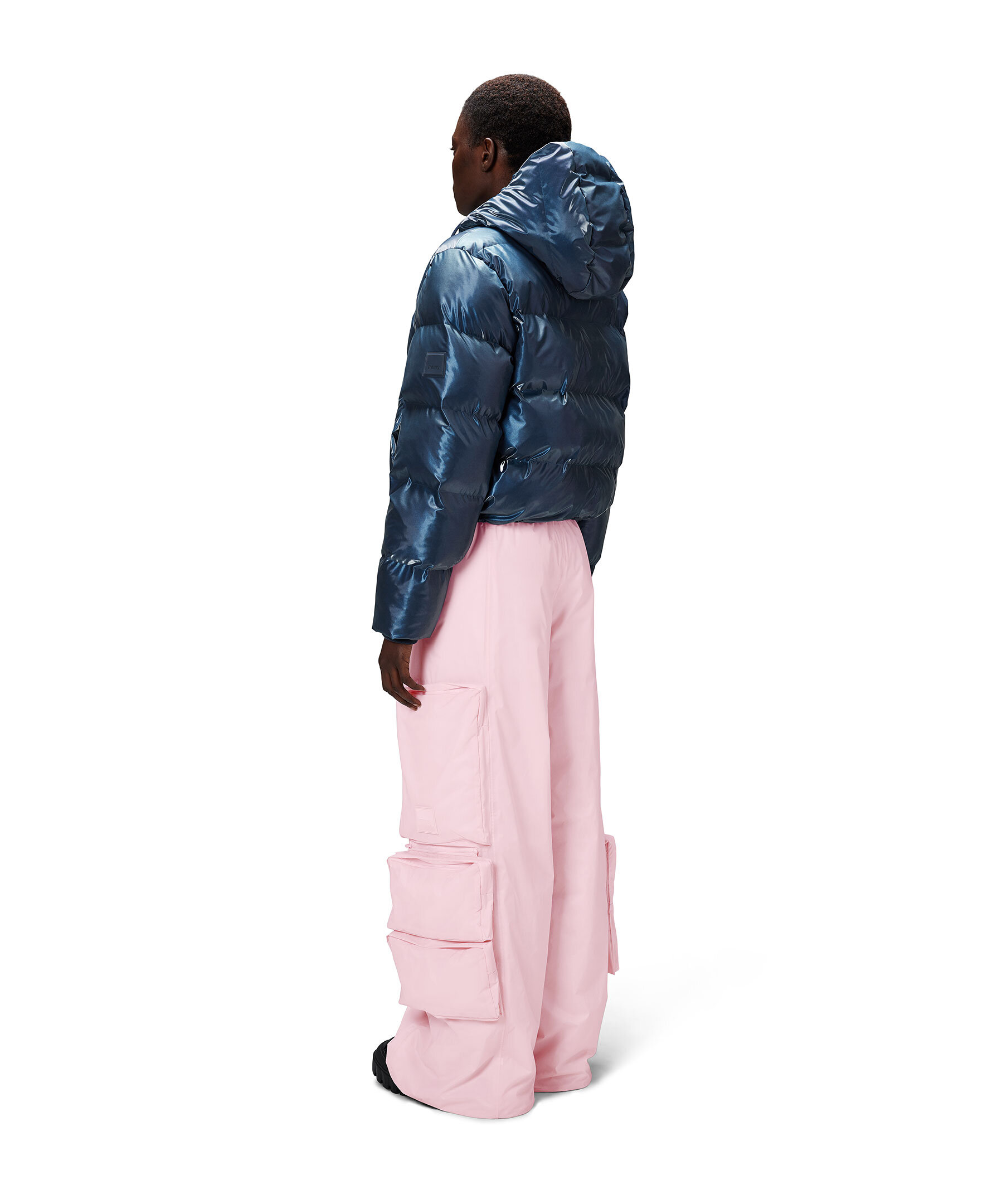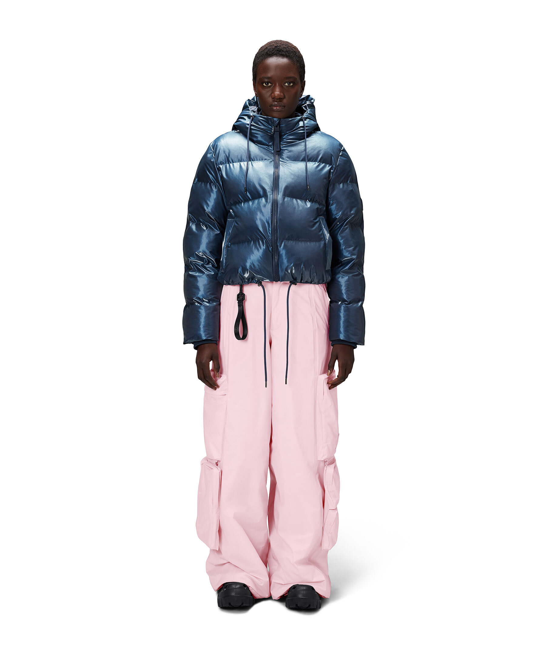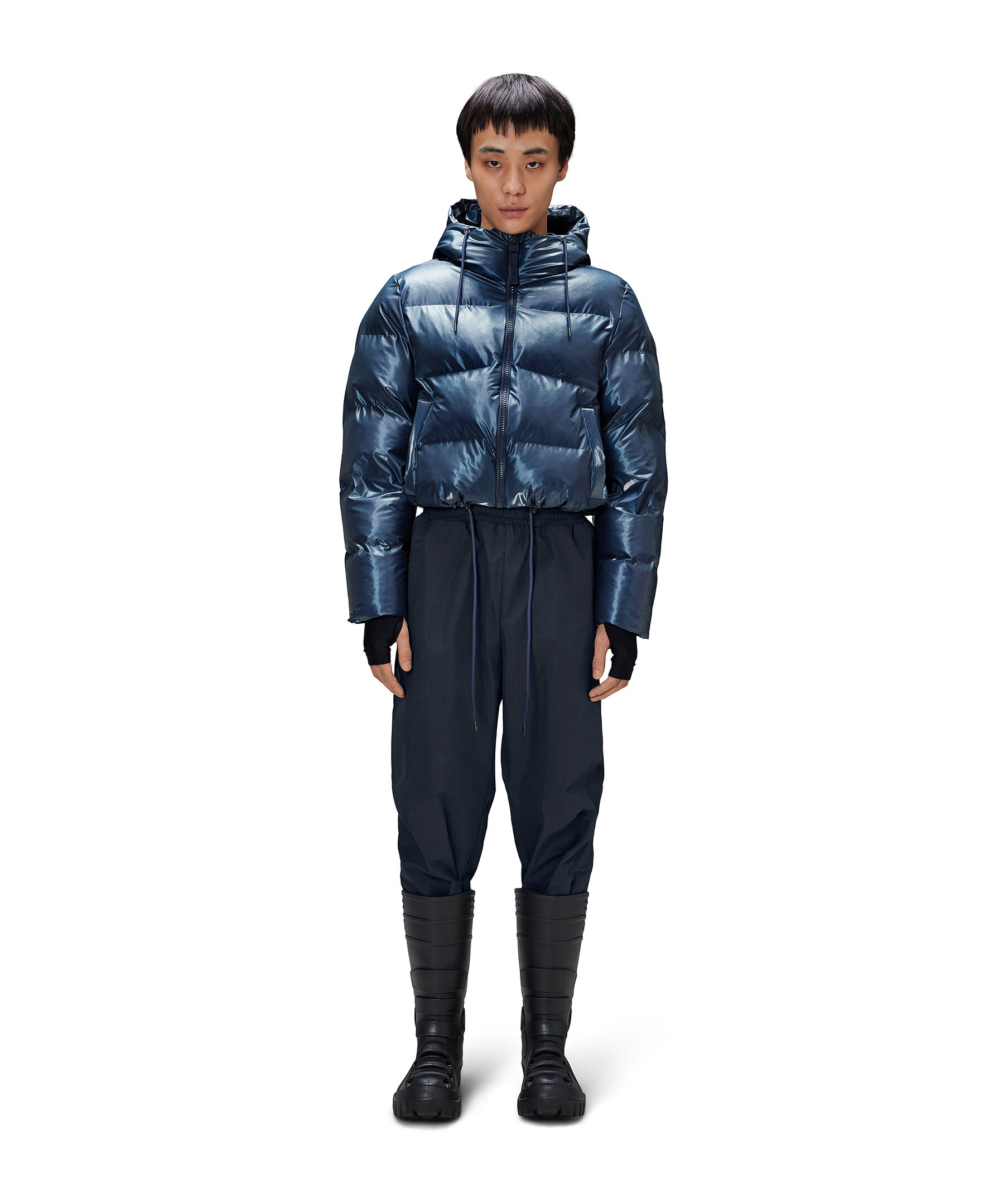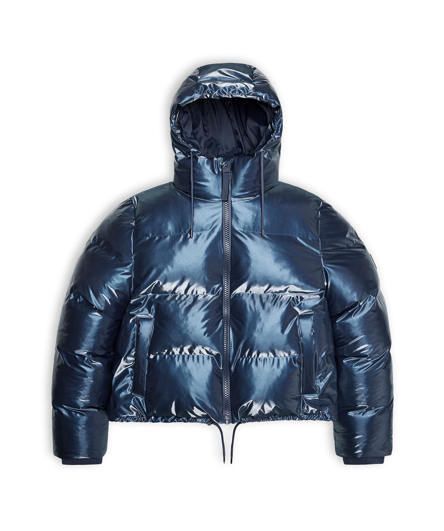 Blå metallicfärgad pufferjacka från Rains. En vattentät vinterjacka med en ren, lättburen puffer-estetik. Som en del av Alta Puffer-serien kännetecknas plagget av en raffinerad silhuett, breda signaturkammare och avskalade detaljer. Den här halvkorta puffern i vattentätt signaturtyg som andas bygger på fjäderlös kammarteknologi som håller dig varm och bekväm i de kallaste vädren. Jackan har gummerat blixtlås, ultraljudsgjutna sömmar, rymliga fleecefodrade sidfickor, dolda stormmanschetter och inre bröstficka. Silhuetten fulländas av en fodrad dragskohuva och dragskofåll.