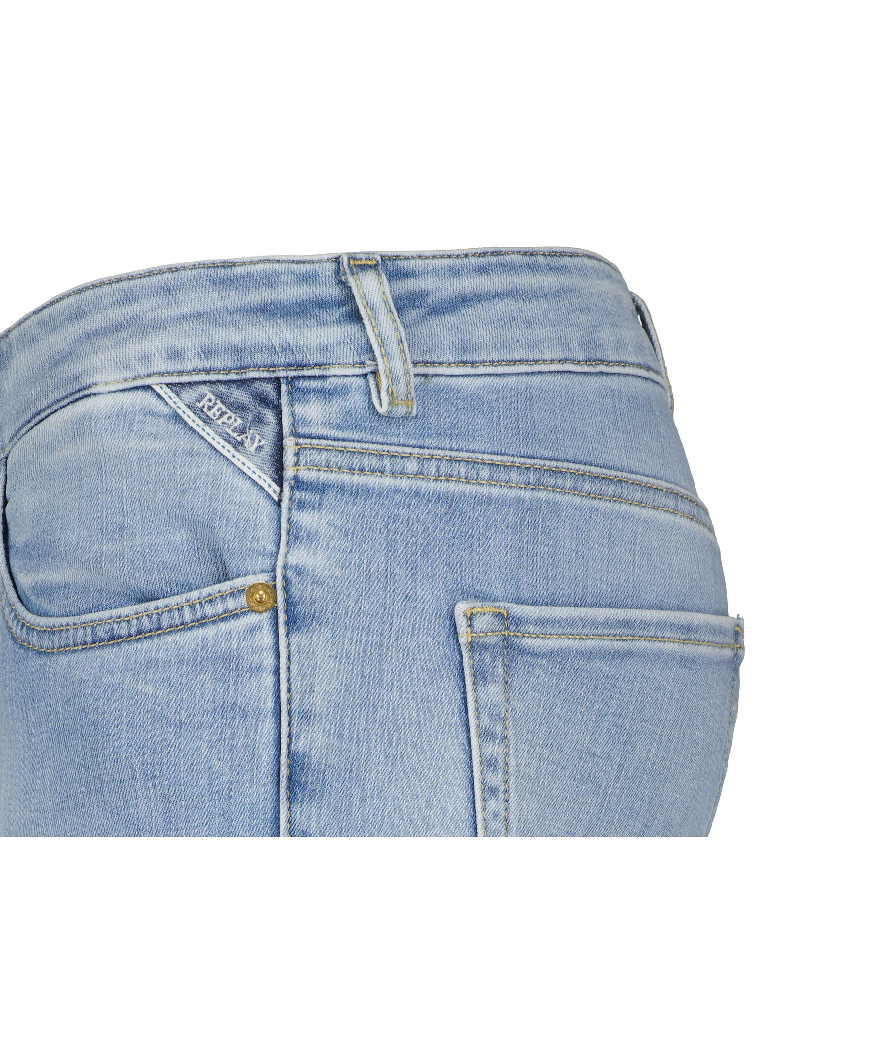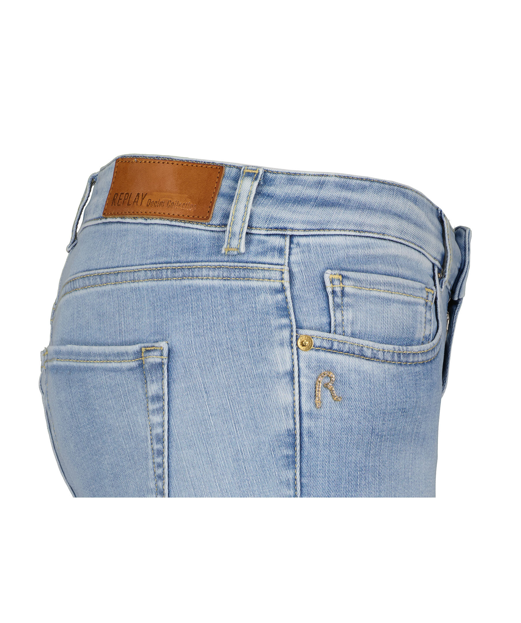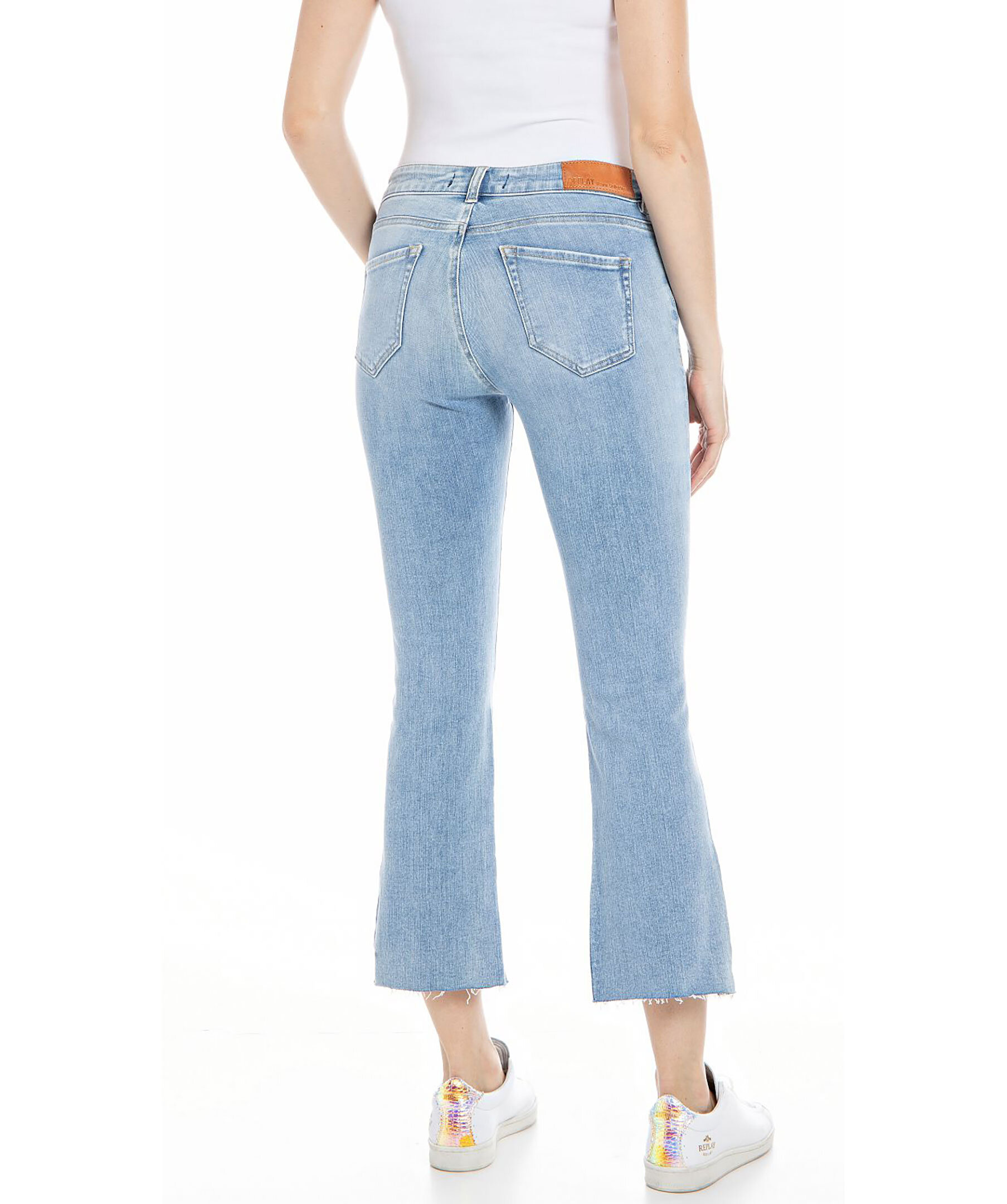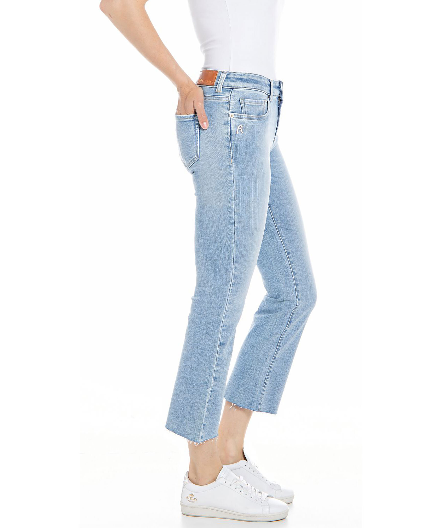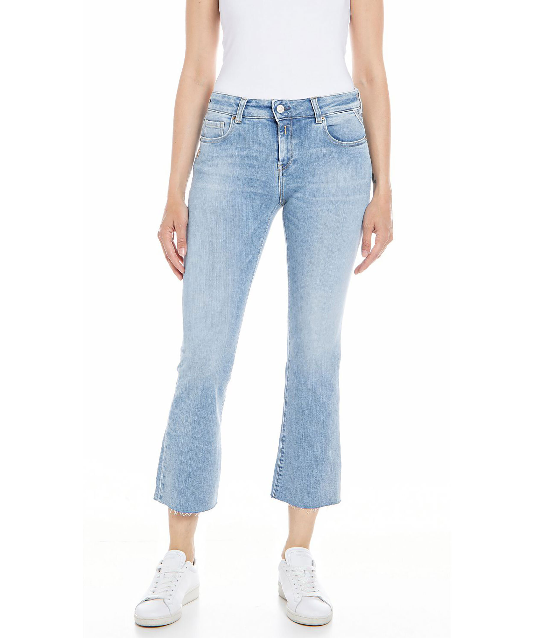 Ljusblåa jeans från Replay med fem fickor. Tillverkade i en bomullsblandning. Avklippt, flaremodell med mellanhög midja.
