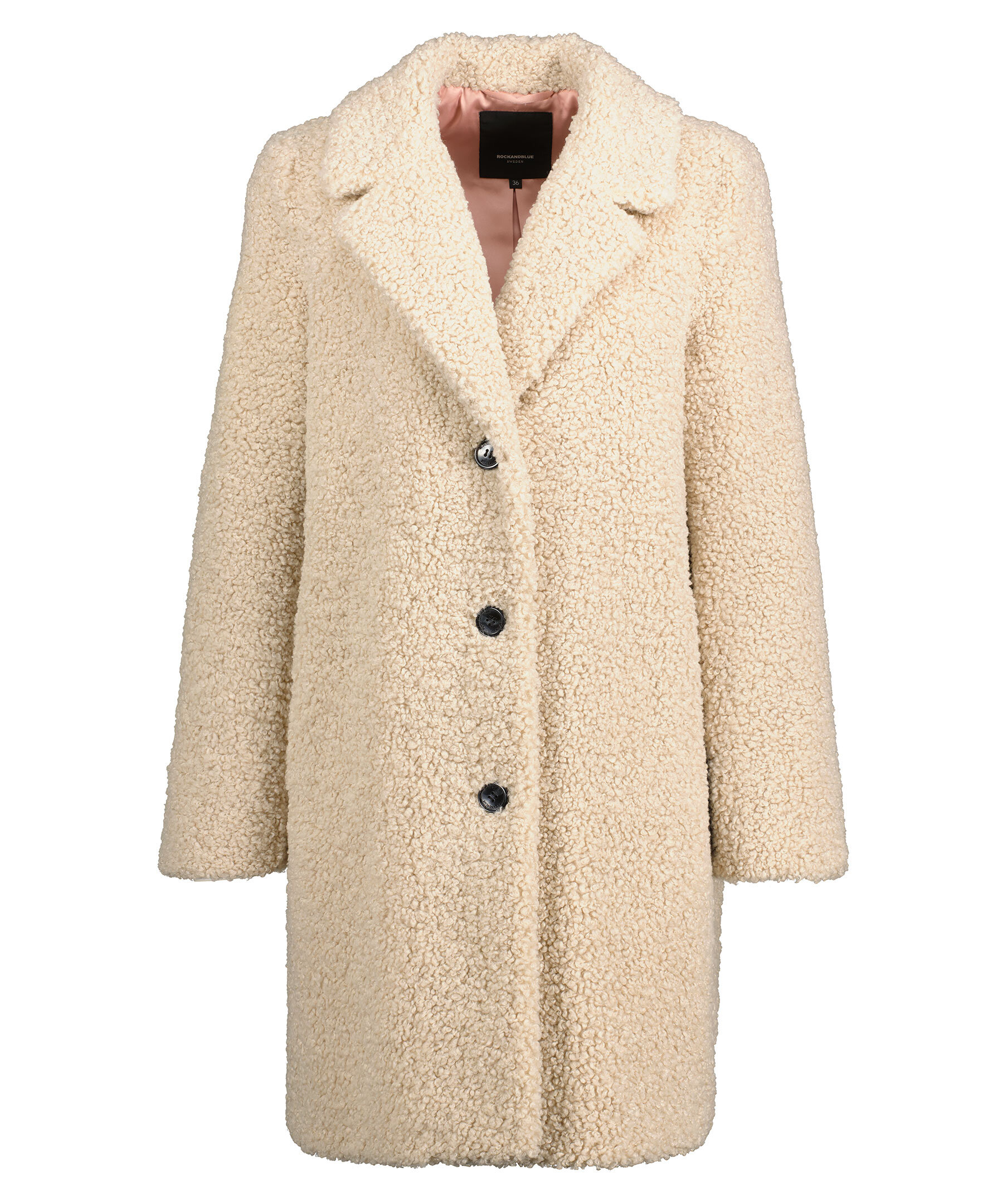 Ljusbeige jacka gjord i konstpäls från RockandBlue. Jackan har två dolda, öppna fickor, en innerficka med dragkedja. Fin krage med slag. Stängs med stora, svarta knappar och har ljusrosa foder. Tillverkad i polyester.