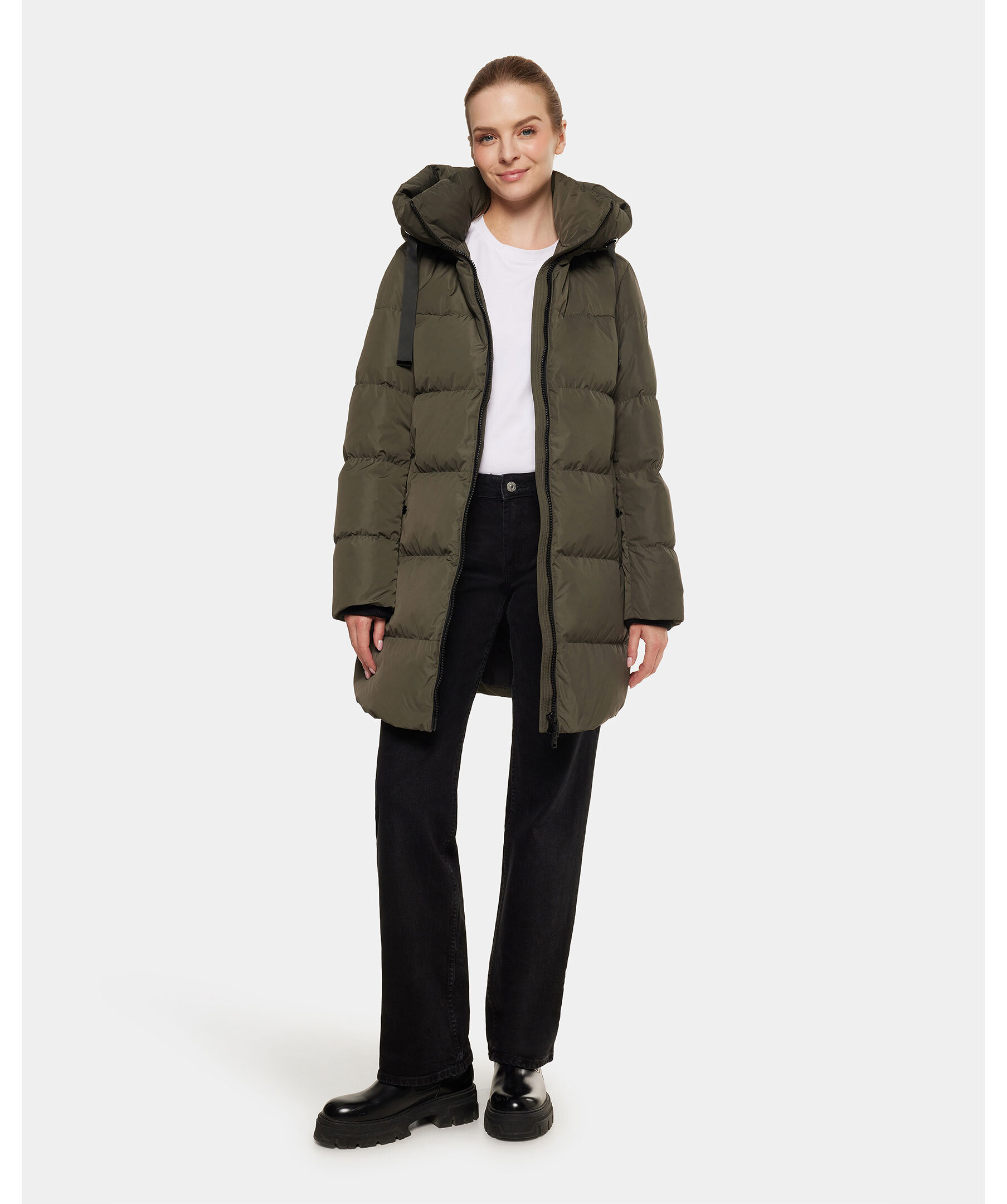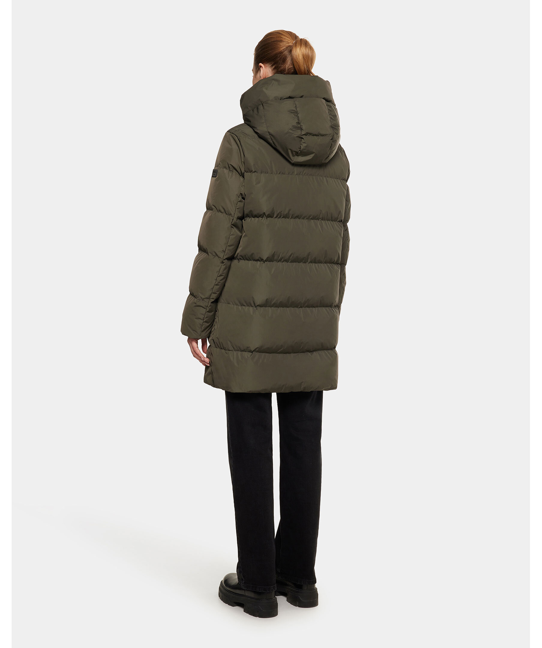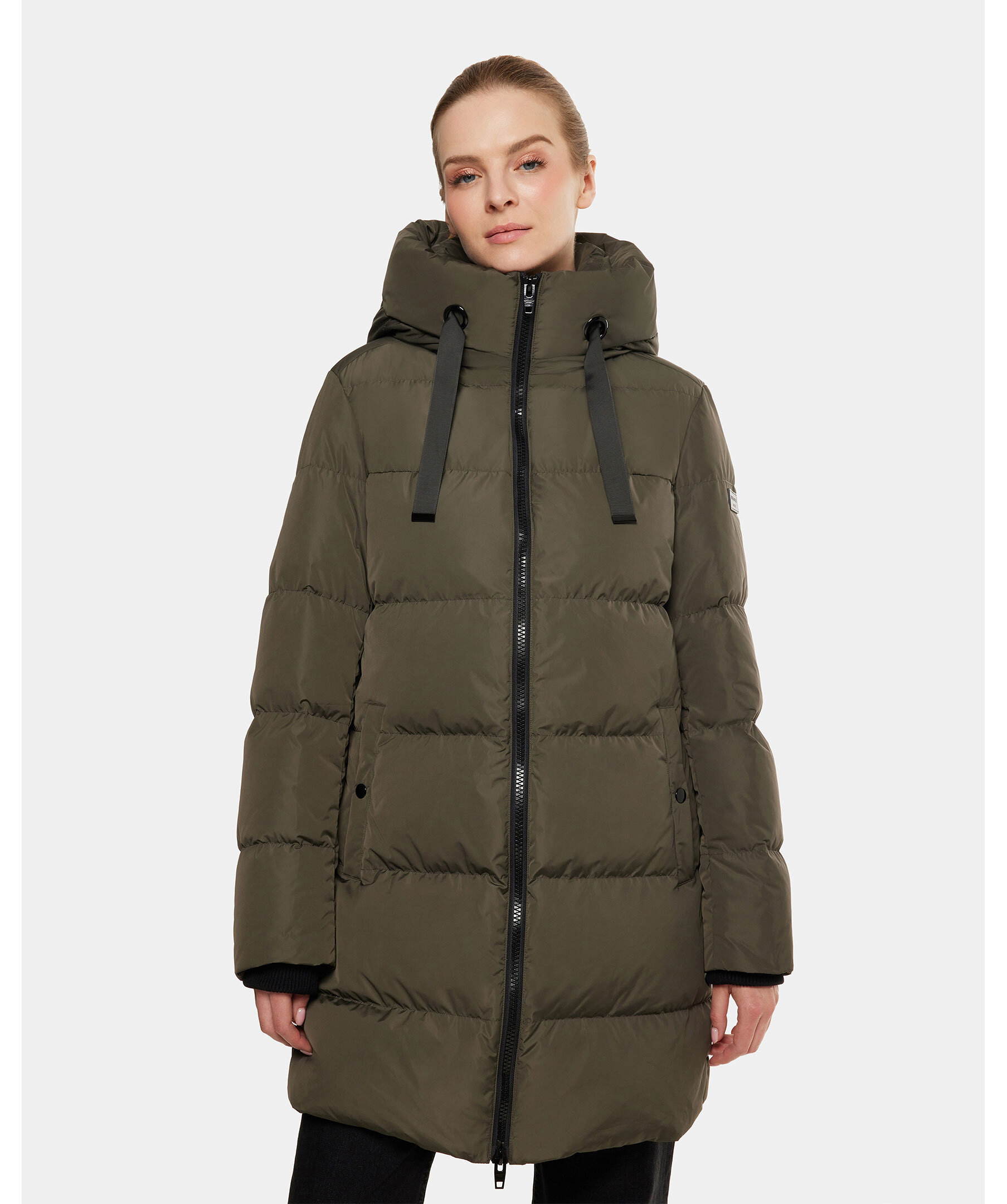 Grön, medellång, vadderad jacka från Rockandblue. Jackan stängs med tvåvägsdragkedja och har en hög krage, huva med dragsko, två sidfickor med knappstängning, ribbstickade ärmslut och logotyp på vänster ärm. Tillverkad i polyester.
