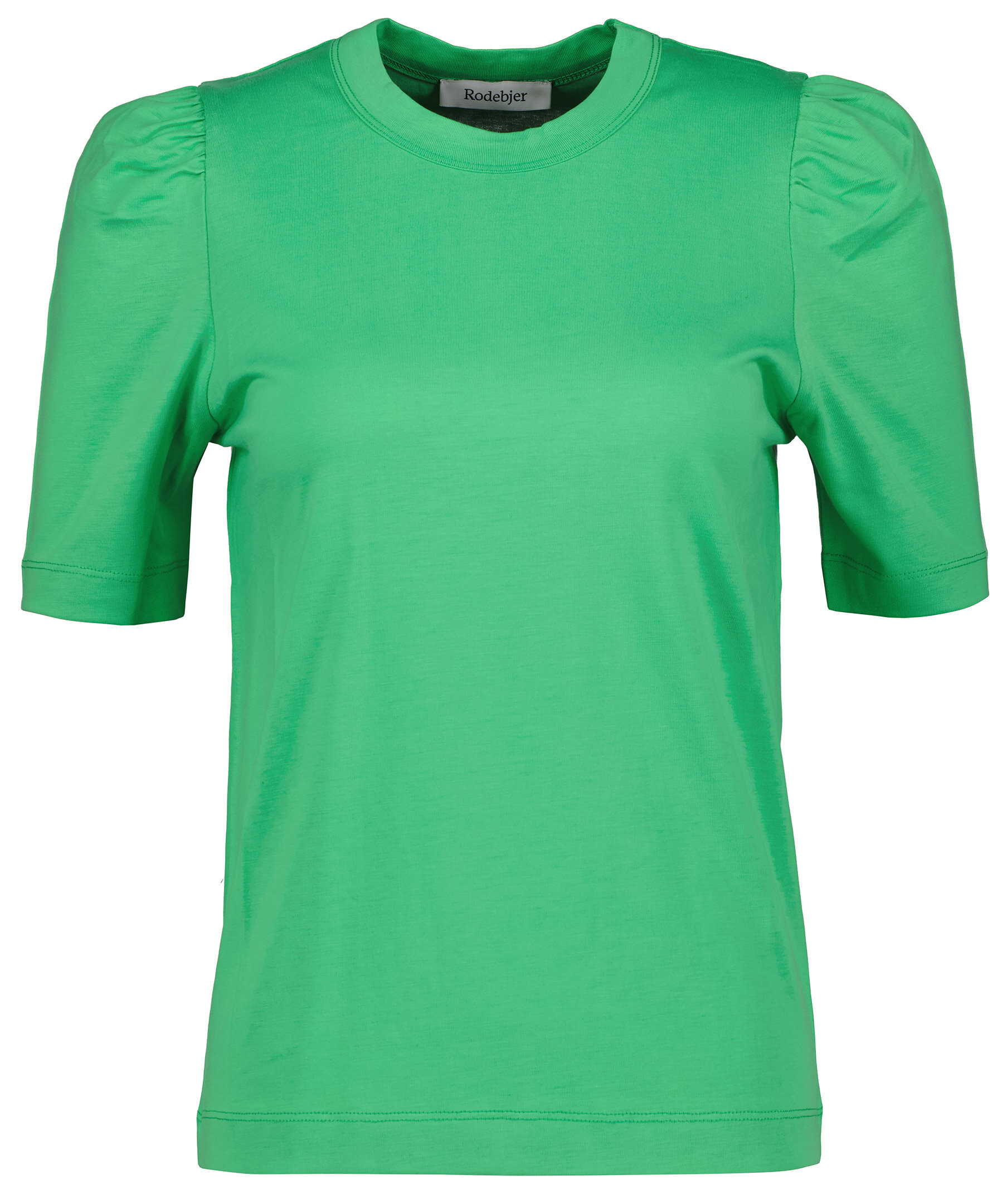 Grön T-shirt från Rodebjer med puffärmar, ärmen slutar strax ovanför armbågen. Tillverkad i Lyocell och bomullsblandning. Rundad halsringning.