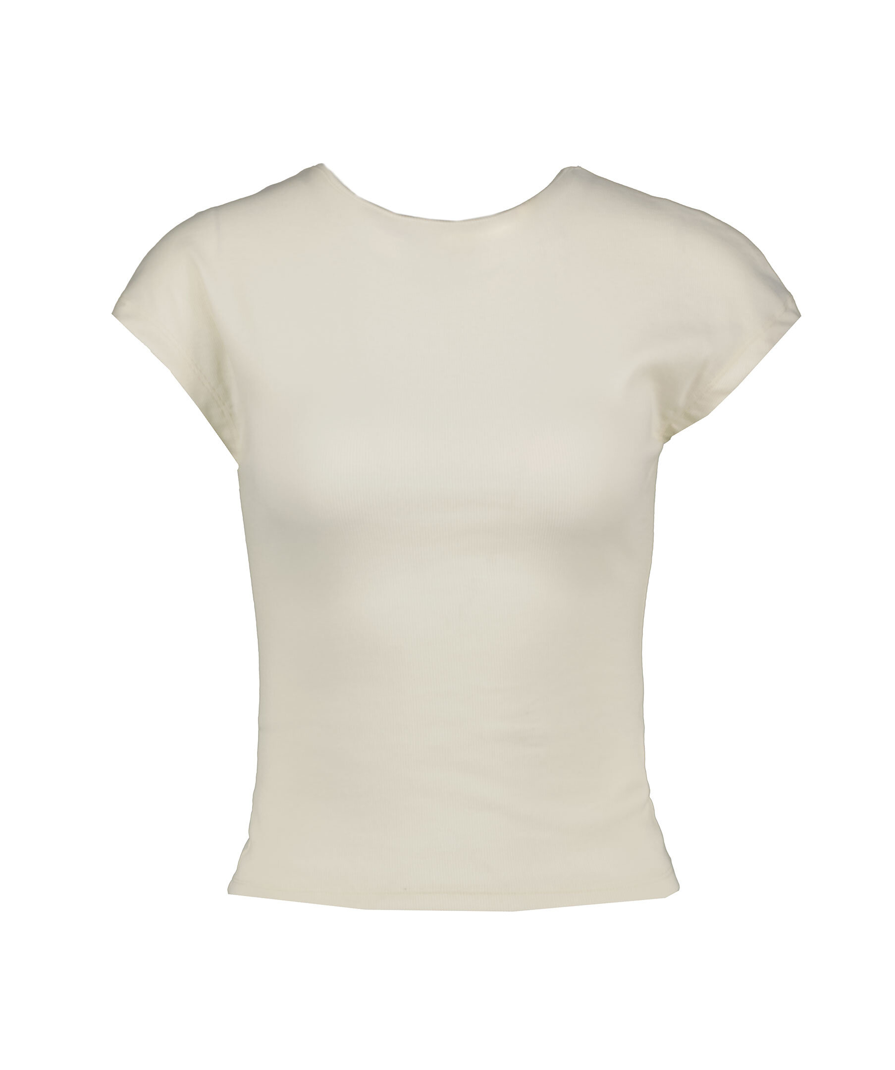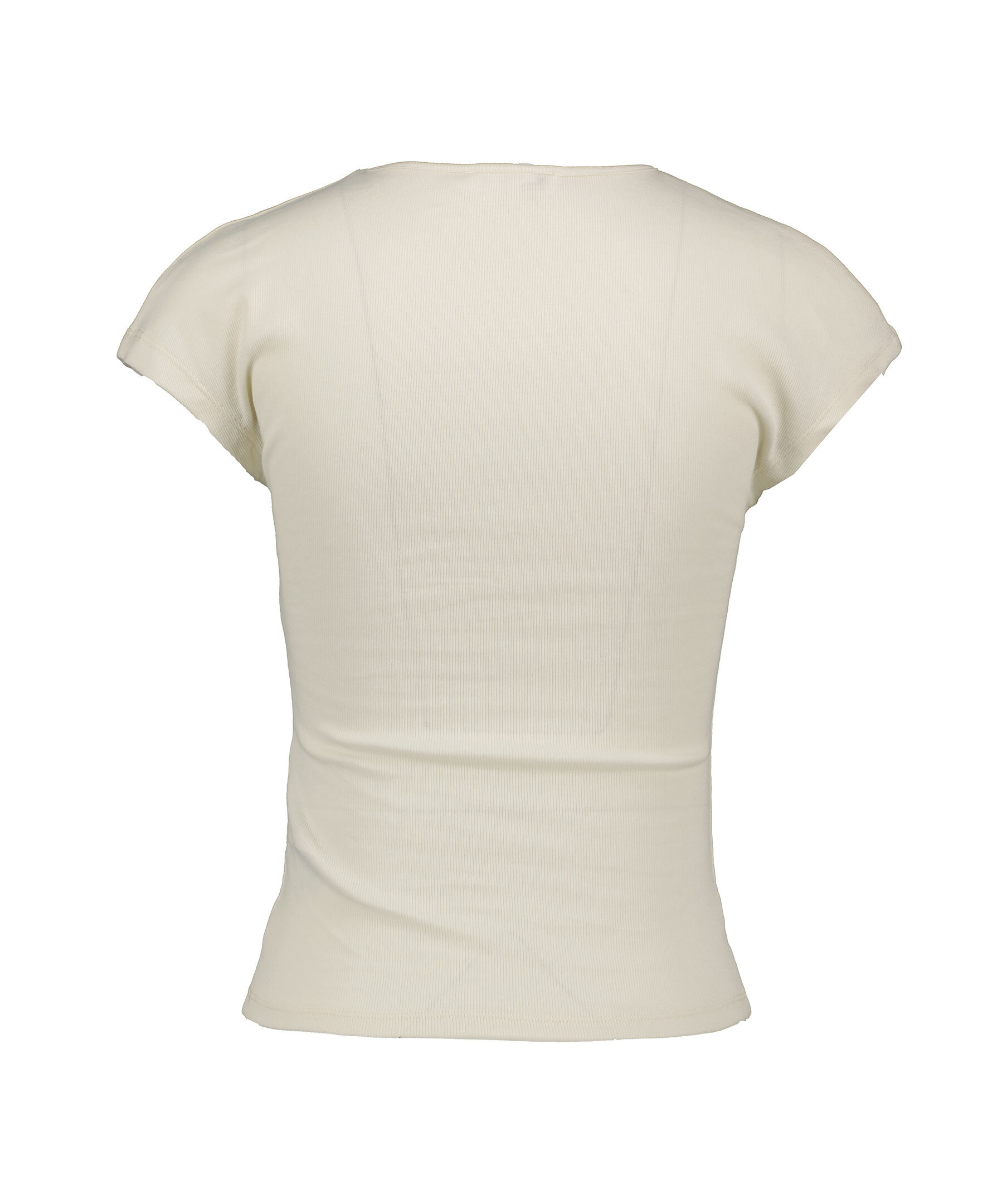 Benvit topp från Rodebjer. Den är gjord av lätt jersey till en smal siluett, korta ärmar och en ribbad struktur. Tillverkad i en bomullsblandning.
