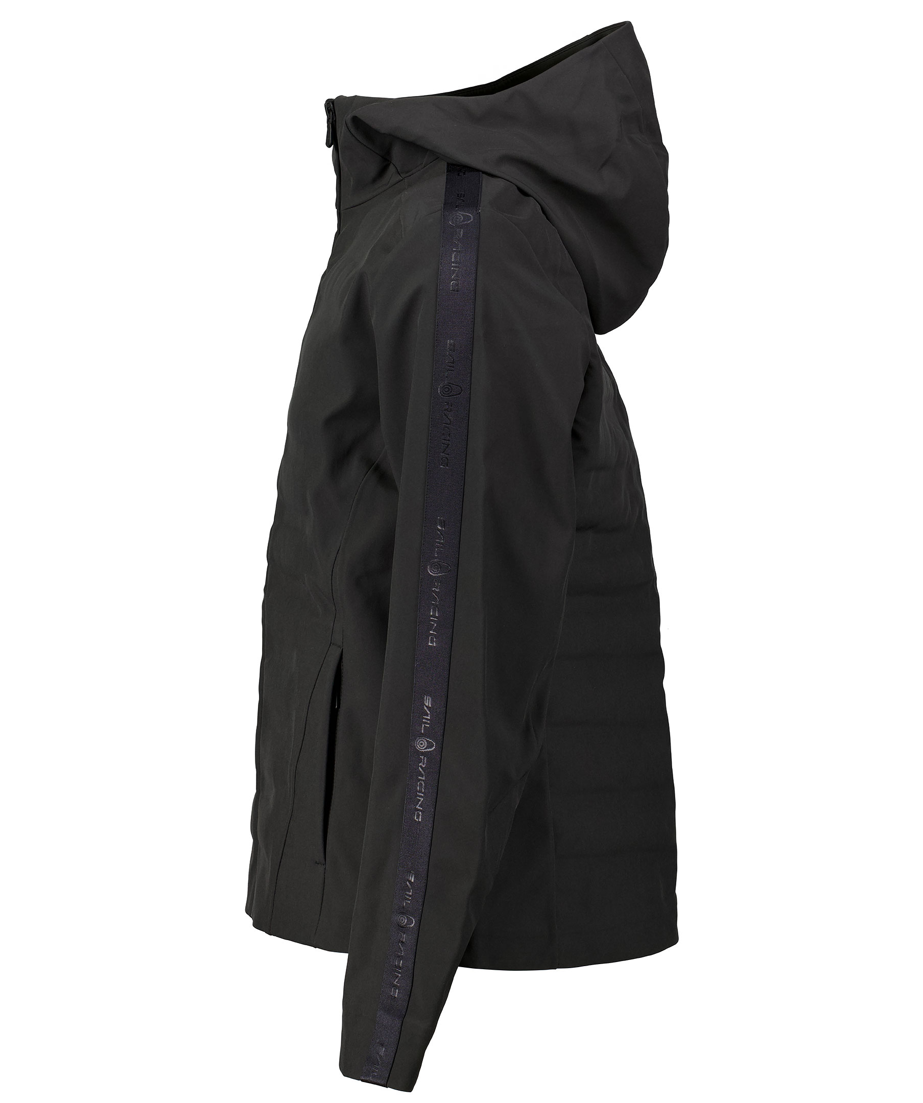 Svart tunn dunjacka från Sail Racing. Jackans yttertyg är gjord i en polyester och spandex blandning. Två framfickor, revärer längst jackans ärmar med logotyp.