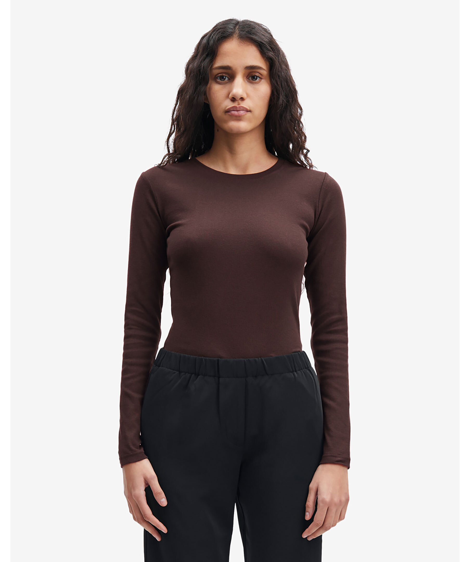 Långärmad T-shirt från Samsoe Samsoe i bomullsjersey med tillsatt stretch för en smalare silhuett. Den prydliga rundade halsringningen och längre kroppslängden gör denna långärmade T-shirt perfekt för lager-på-lager eller att bära ensam.