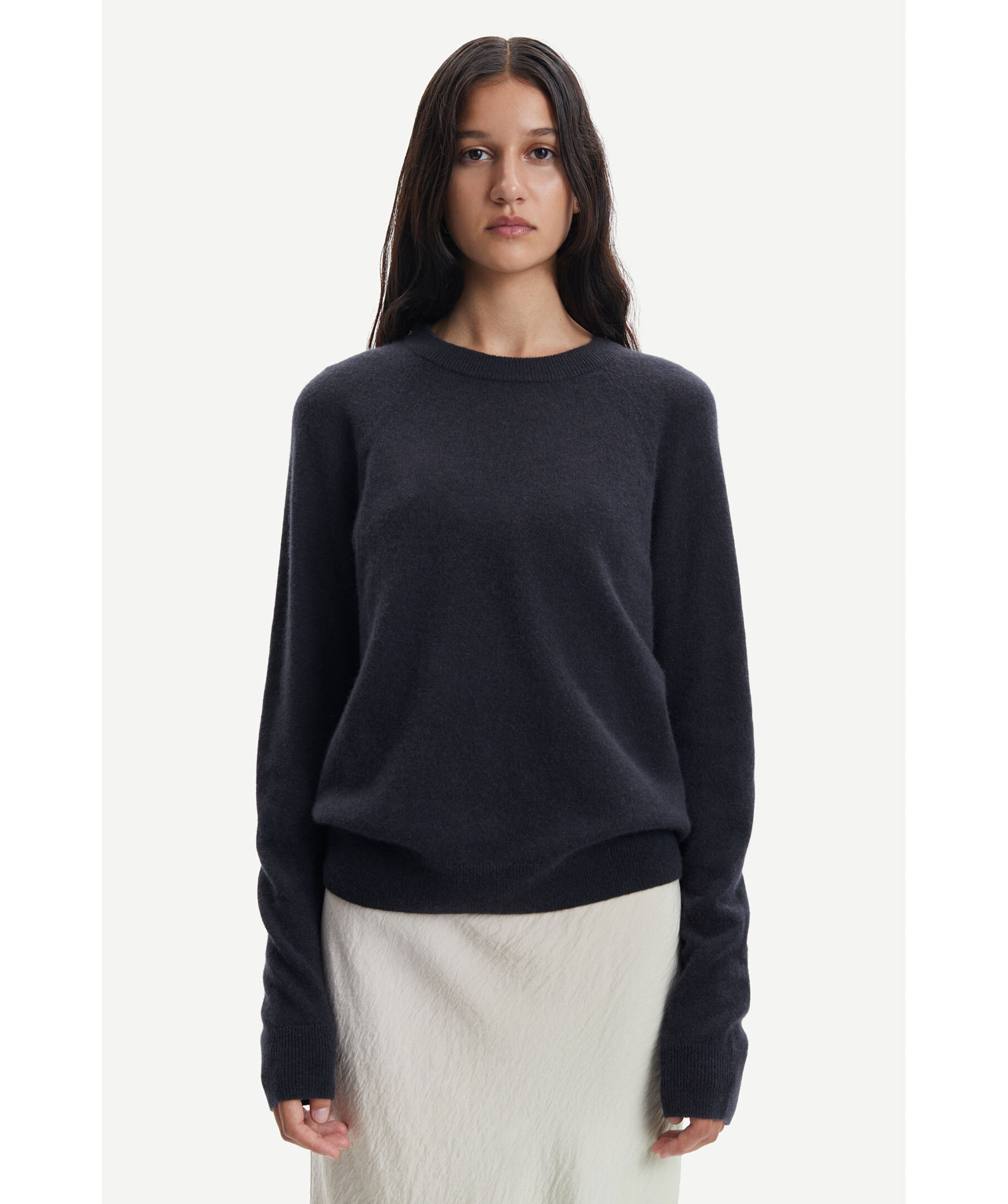 Svart finstickad kashmir tröja från Samsoe Samsoe. Halsringning, ärm- och plaggslut med ribbstickad mudd. Rundad halsringning, långa ärmar. Tillverkad i 100% kashmir.