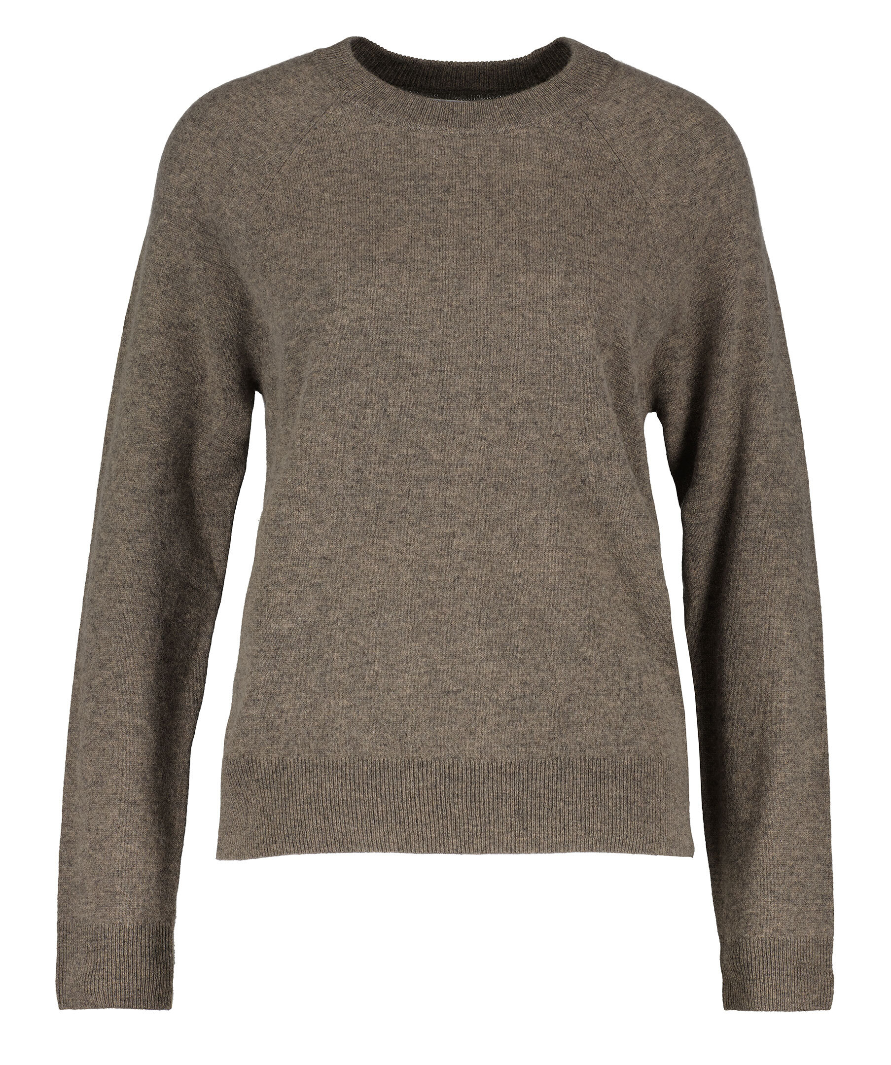 Taupe-färgad finstickad kashmir tröja från Samsoe Samsoe. Halsringning, ärm- och plaggslut med ribbstickad mudd. Rundad halsringning, långa ärmar. Tillverkad i 100% kashmir.