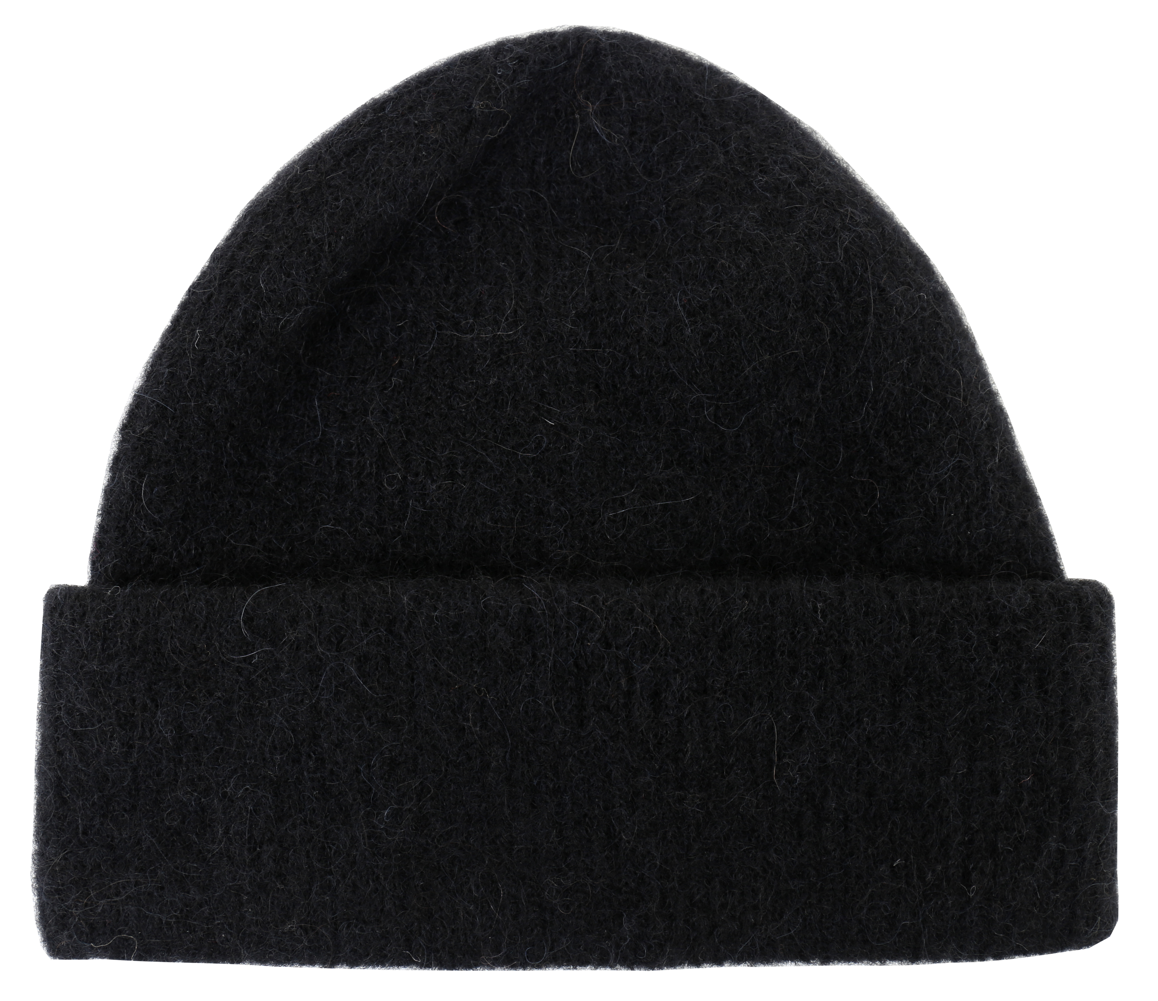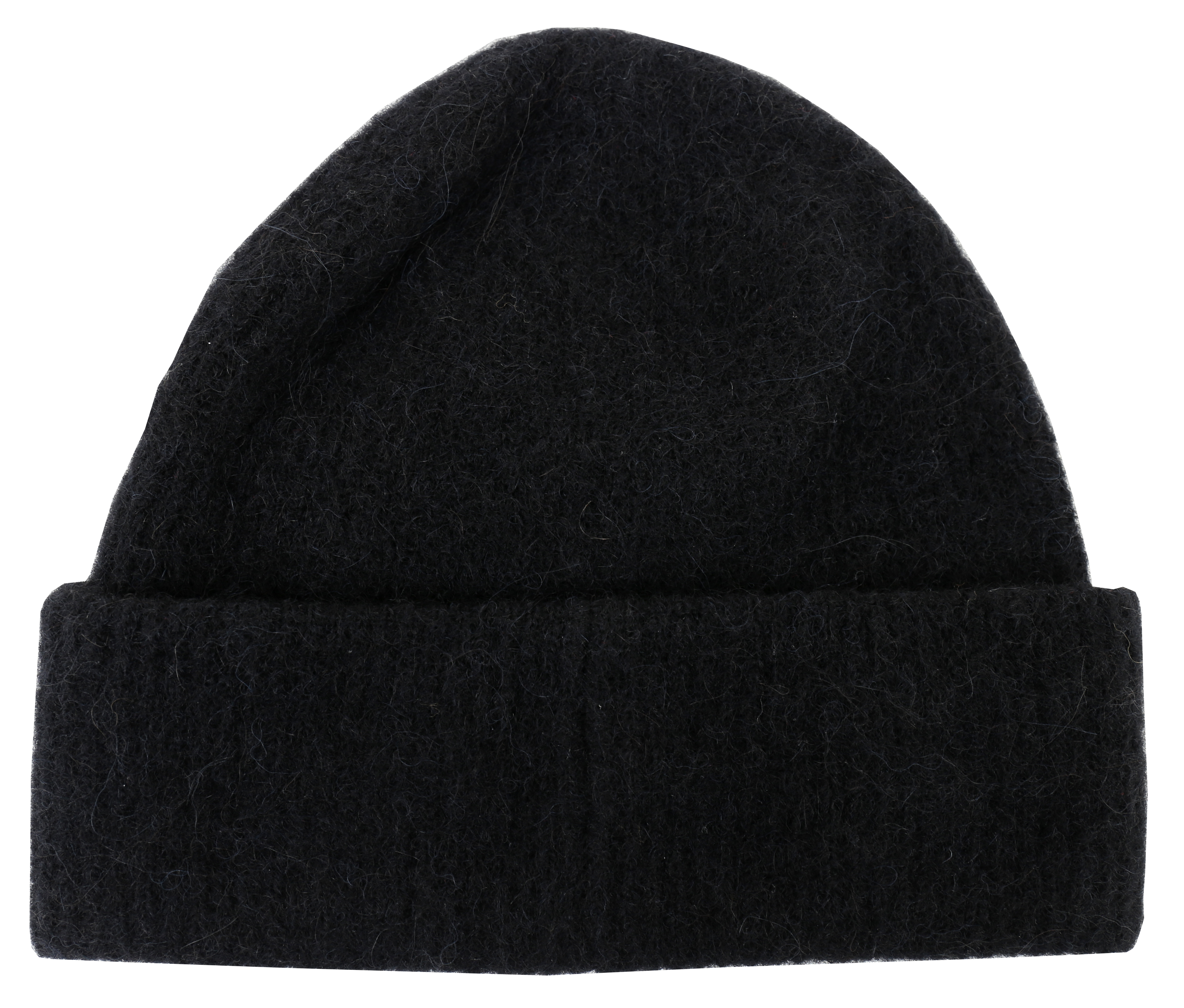 Svart stickad mössa från Samsoe Samsoe i varm och skön ullmix. Har en uppvikt kant och är ribbstickad.