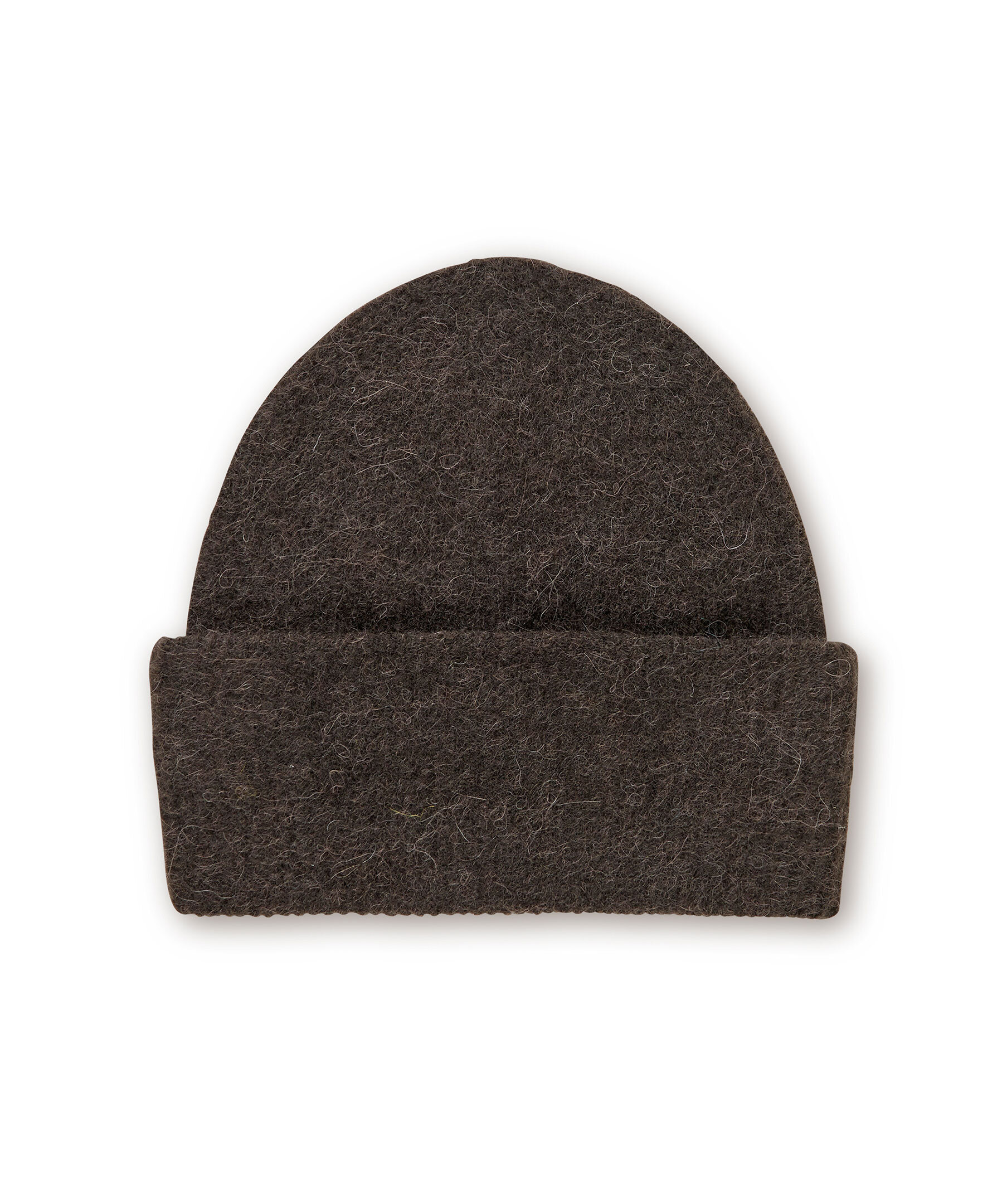 Mörkbrun stickad mössa från Samsoe Samsoe i varm och skön ullmix. Mössan har en uppvikt kant och är ribbstickad.