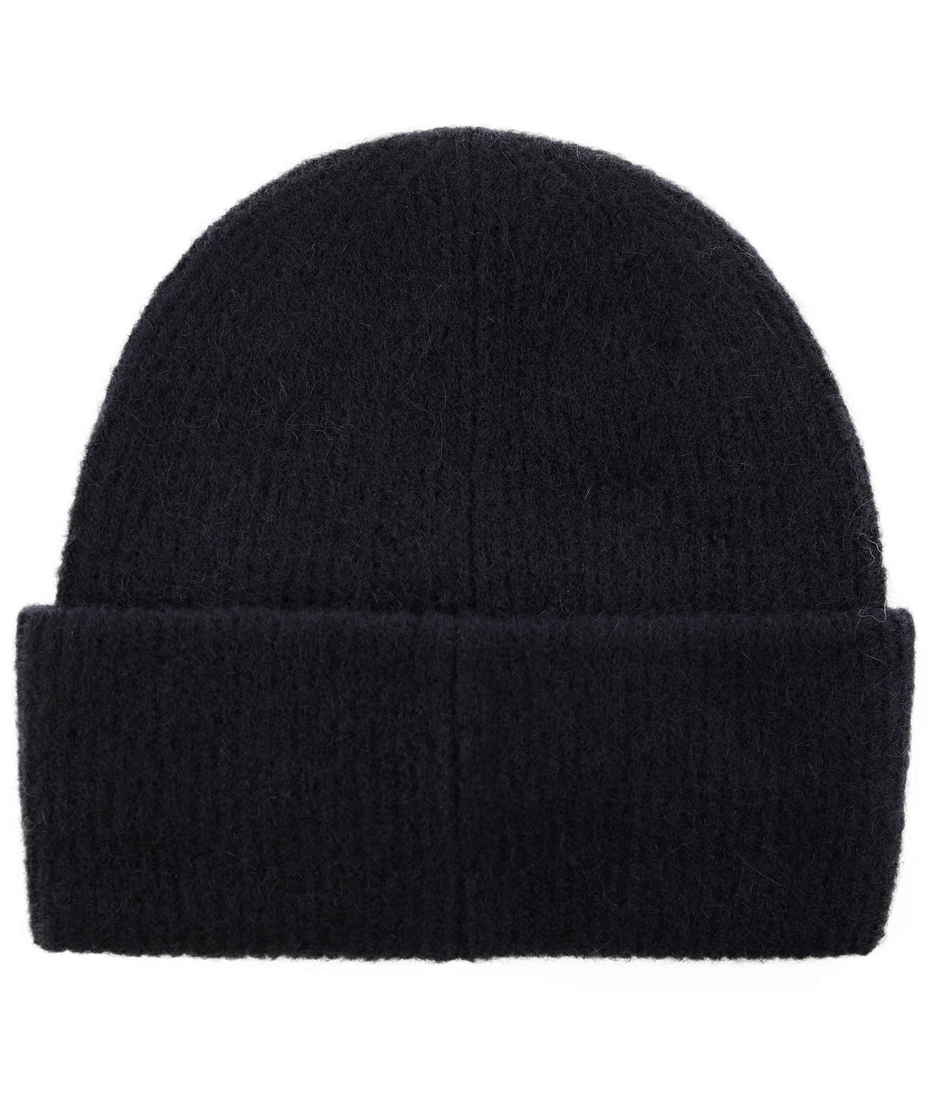 Svart stickad mössa från Samsøe Samsøe. Uppvikt kant, tillverkad i ullmix.