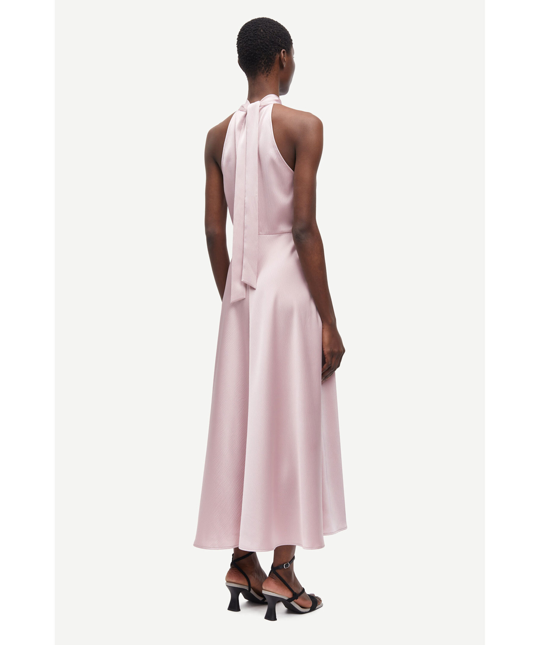Ljuslila satinklänning från Samsoe Samsoe. Klänningen är en ärmlös design i midilängd, den har normal passform och en utsvängs kjol. Knyts bak och har en dragkedja i sidan. Delad öppning bak. Tillverkad av en polyesterblandning.