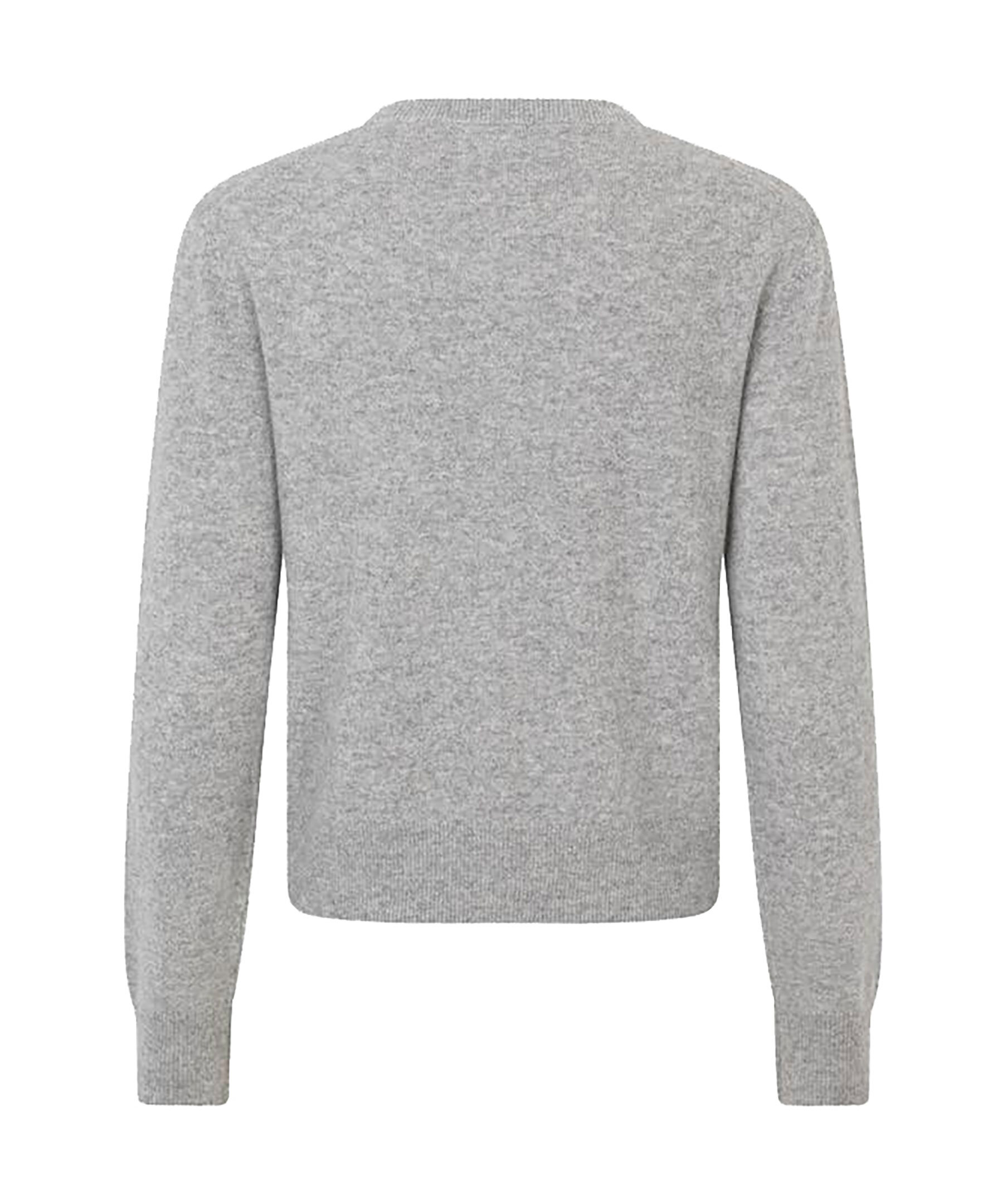 Grå, stickad kofta från Samsoe Samsoe. Koftan stängs med knappar framtill, har ribbstickad krage, tröj- och ärmavslut. Rundad halsringning och tillverkad av 100% kashmir.
