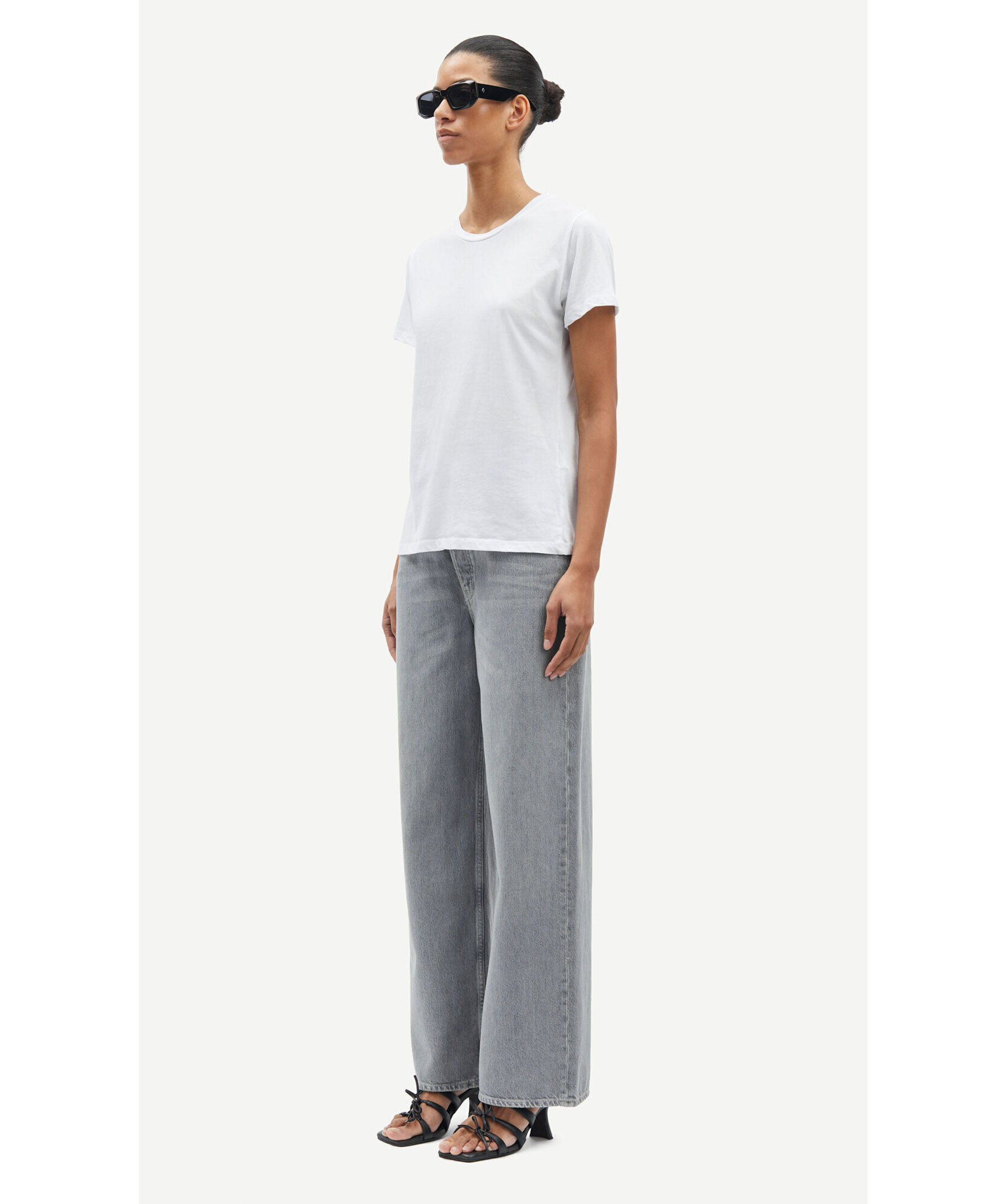 Vit T-shirt från Samsoe Samsoe. Rundad halsringning. Tillverkad i 100% Organic cotton. Figrunära.