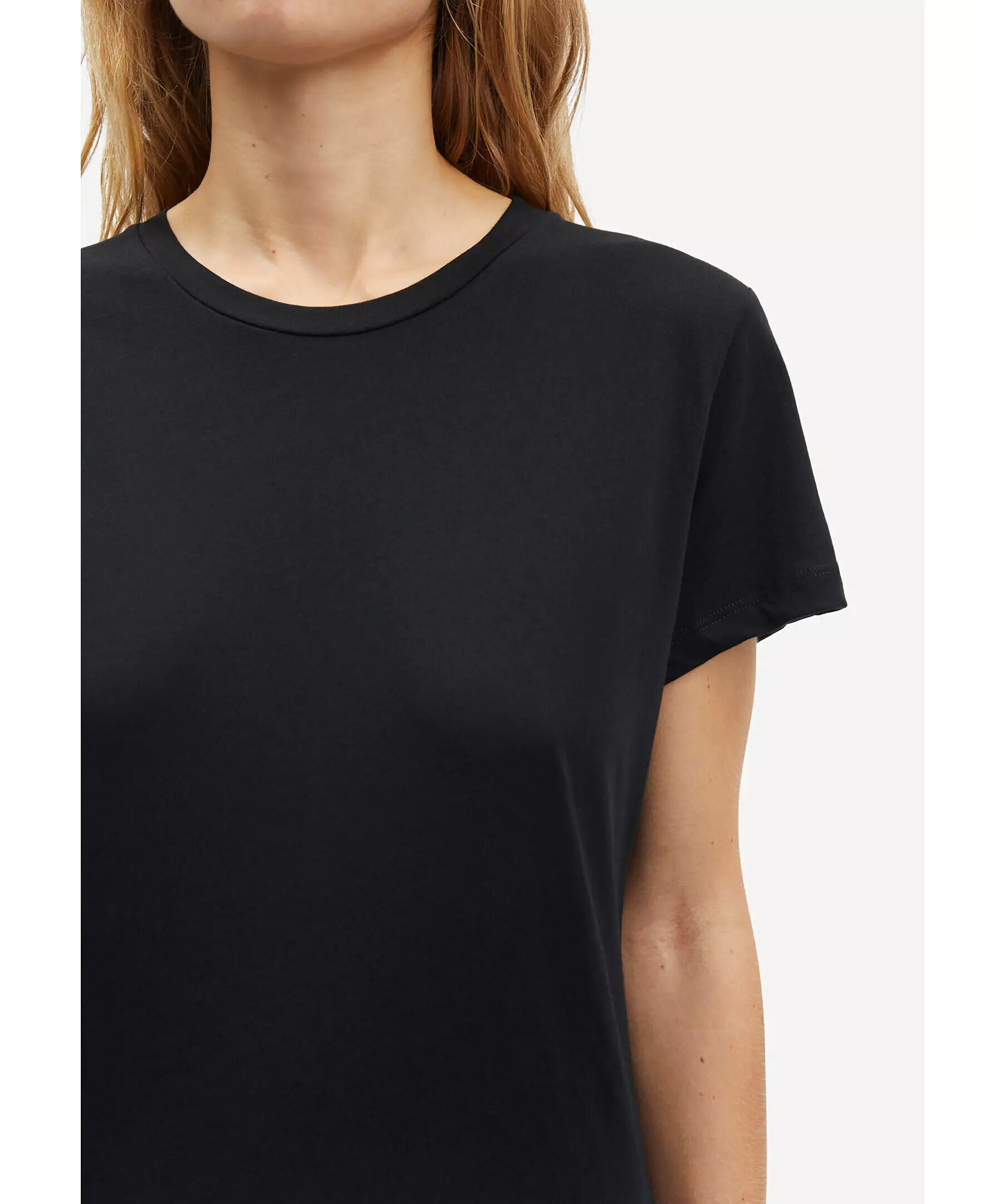 Svart T-shirt från Samsoe Samsoe. Rundad halsringning. Tillverkad i 100% Organic cotton. Figrunära.