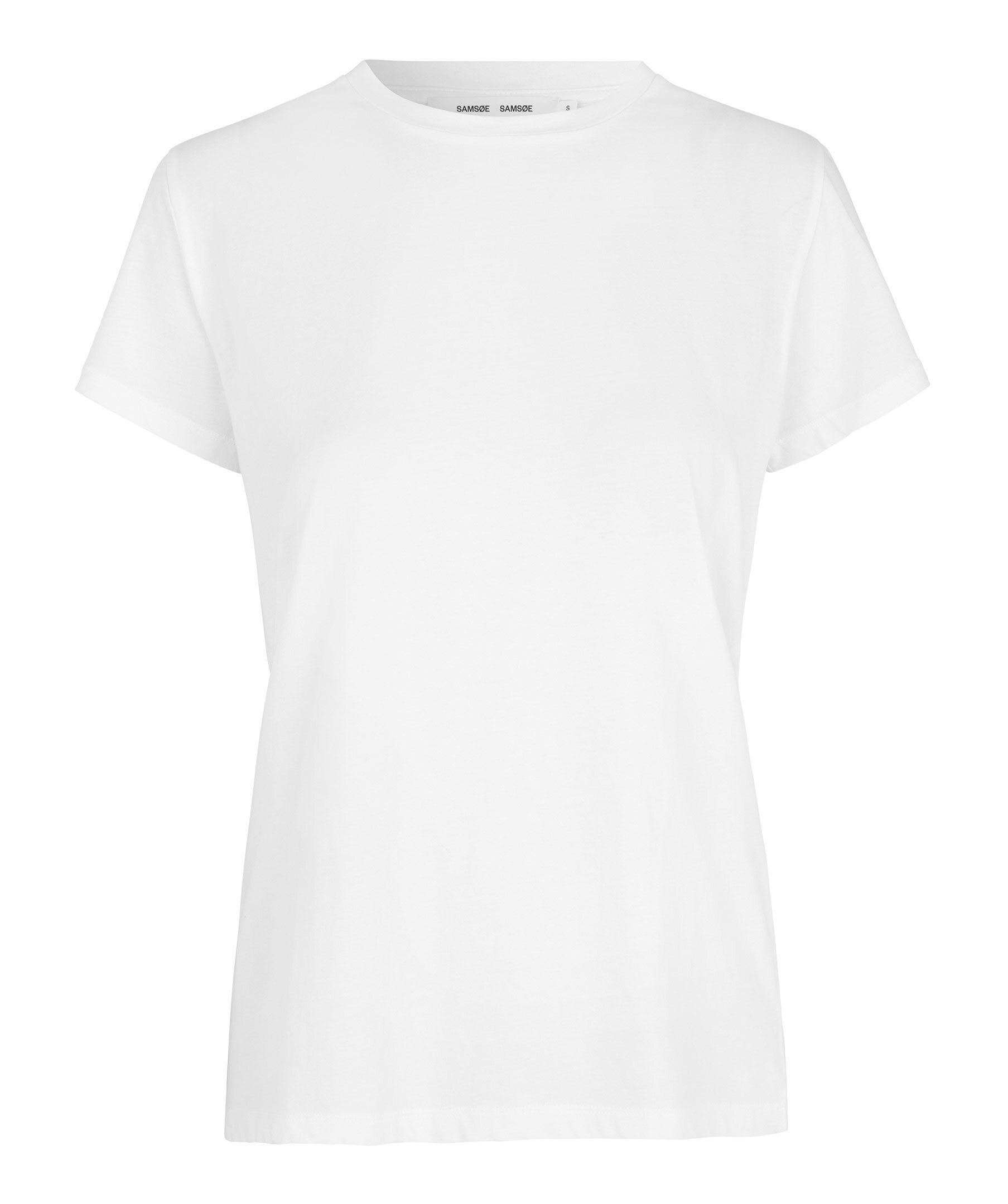 Vit T-shirt från Samsoe Samsoe. Rundad halsringning. Tillverkad i 100% Organic cotton. Figrunära.
