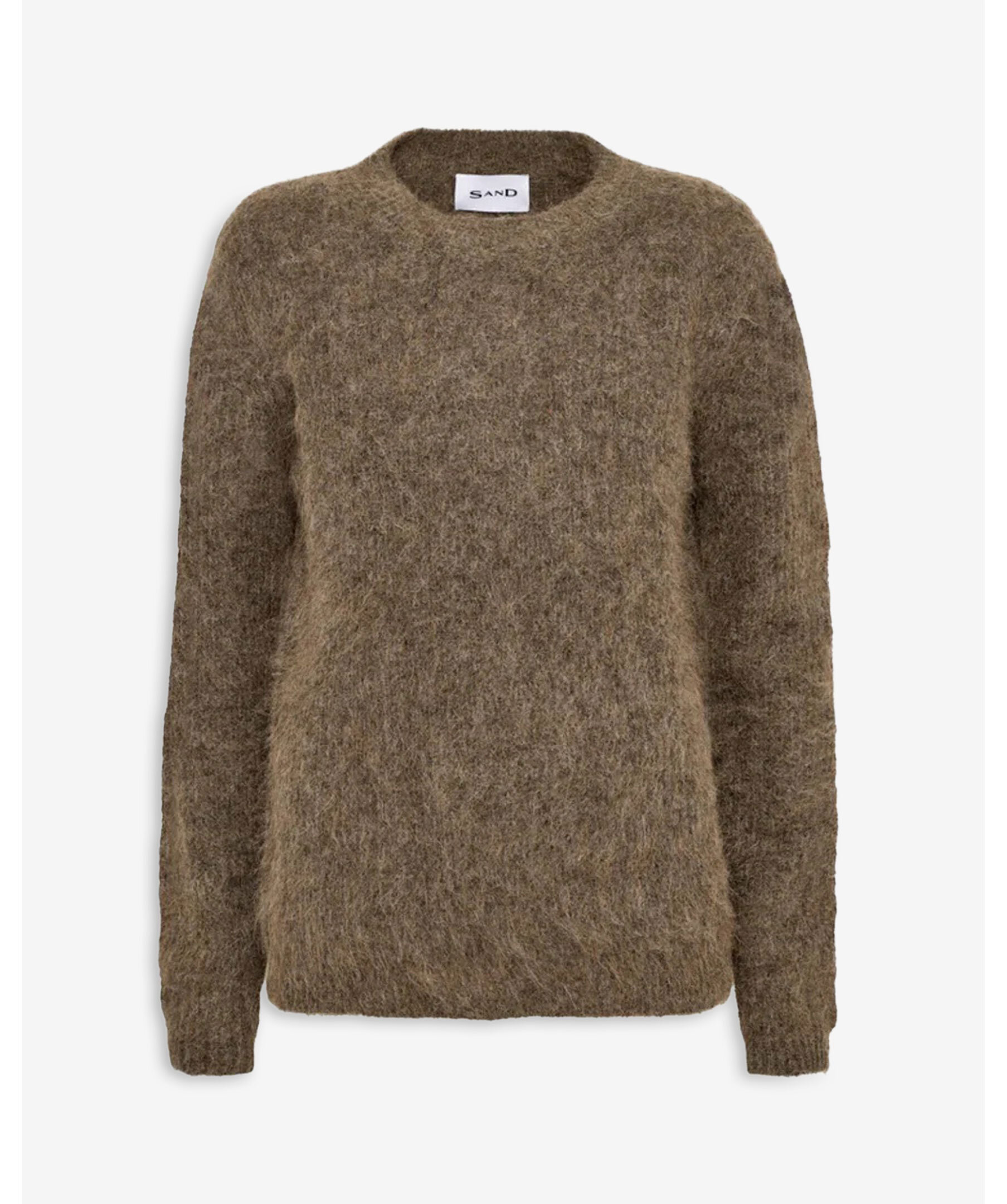 Brun stickad tröja från SAND. Tröjan har rund halsringning, ribbade ärmslut och nederkant. Den är tillverkad i en lätt, hårig mohairblandning för en mjuk touch. Ett värmande basplagg med lyxig känsla.