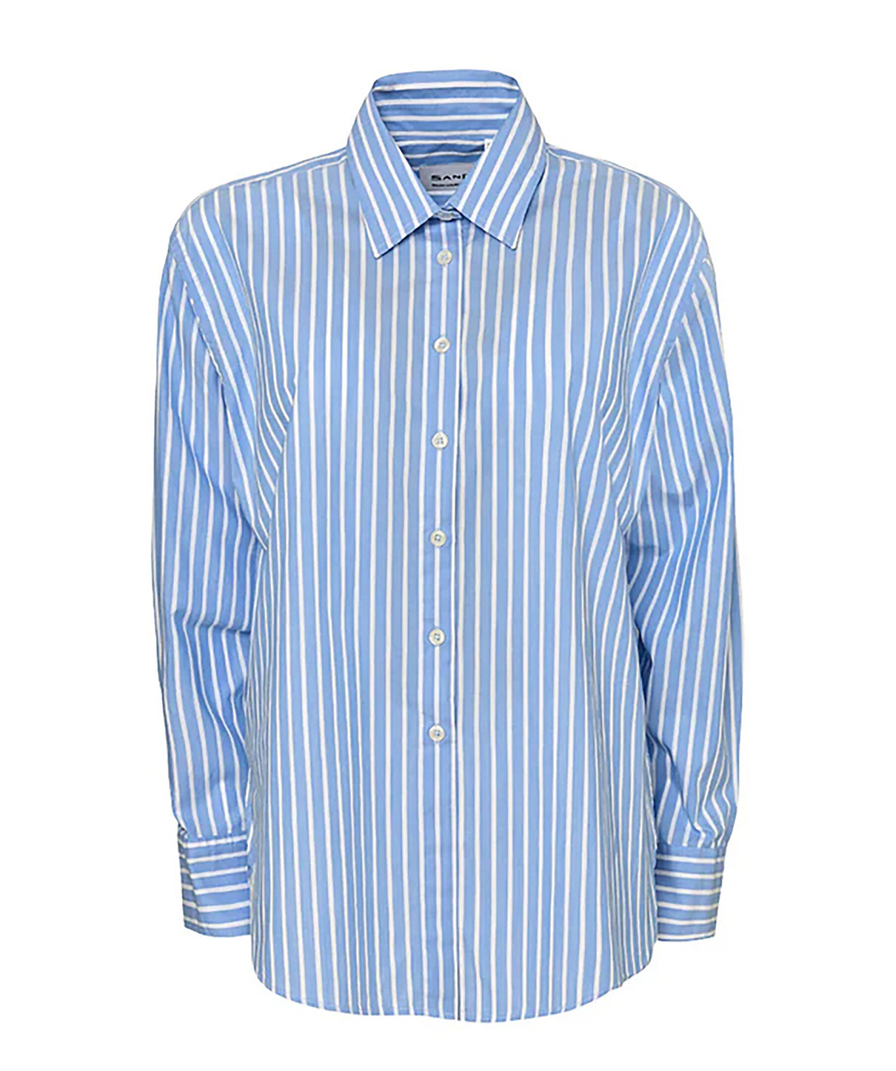 Blårandig skjorta från Sand. Skjortan har en spetsig krage, längre ryggpanel och manschett vid ärmslut. Tillverkad i bomull.
