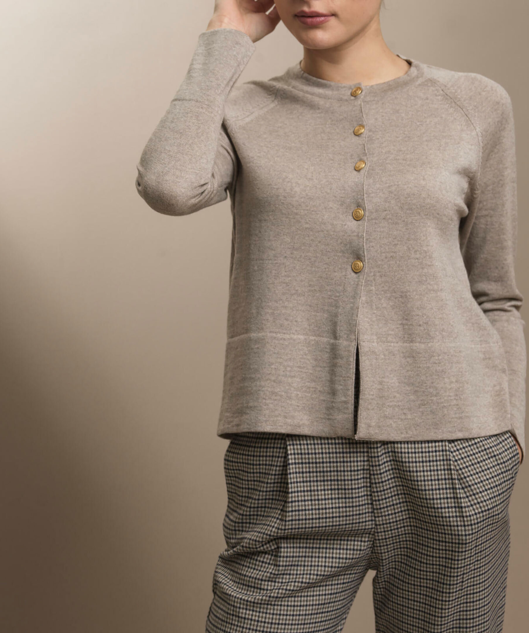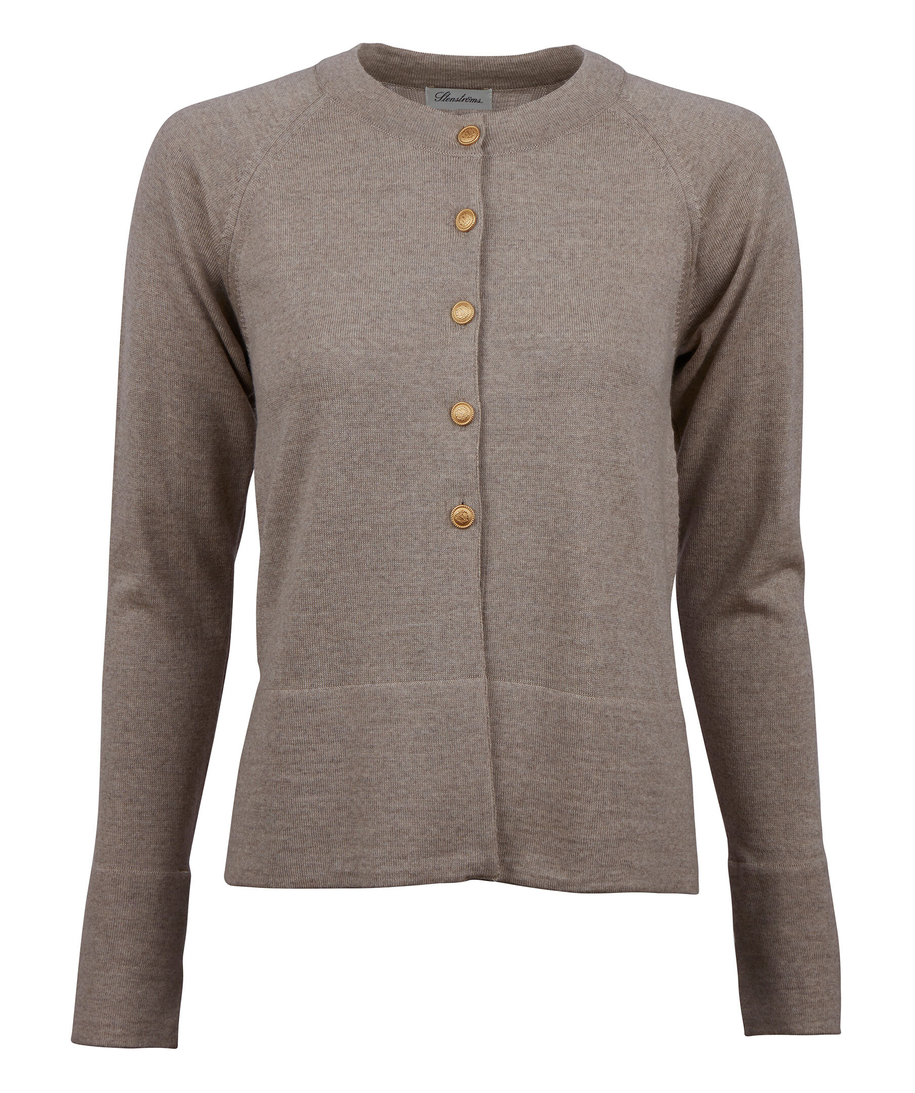 Håll dig varm och välklädd i den här mjuka och värmande koftan i merinoull. Den har rundhals och guldfärgade knappar med ett instansat "Stenströms-S" och ett vikt avslut runt manschetter och plaggslut. Passformen är något vid och ger din stil ett elegant men avslappnat intryck. Passar till det mesta. Vi gillar den tillsammans med en vit skjorta och ett par jeans.