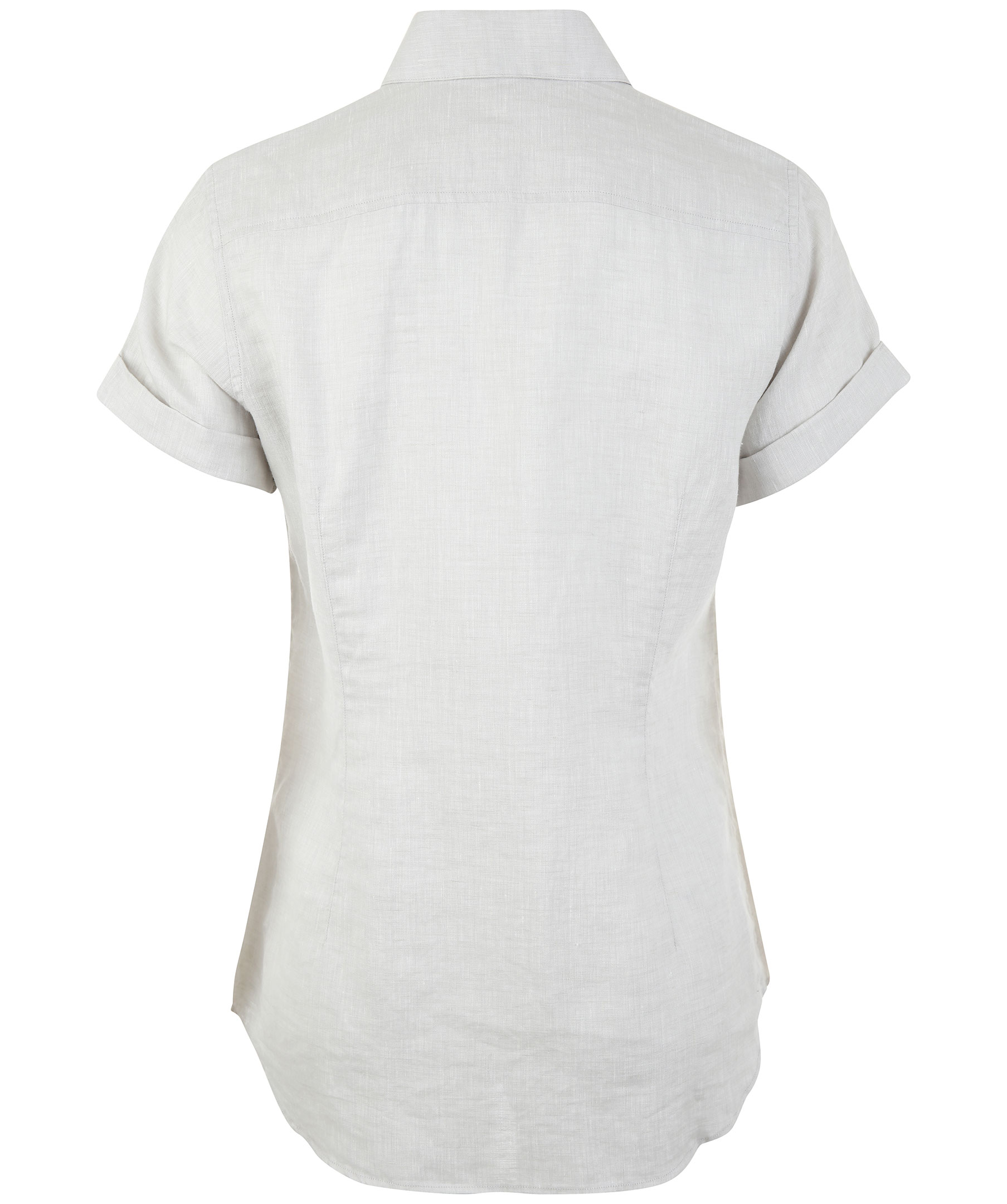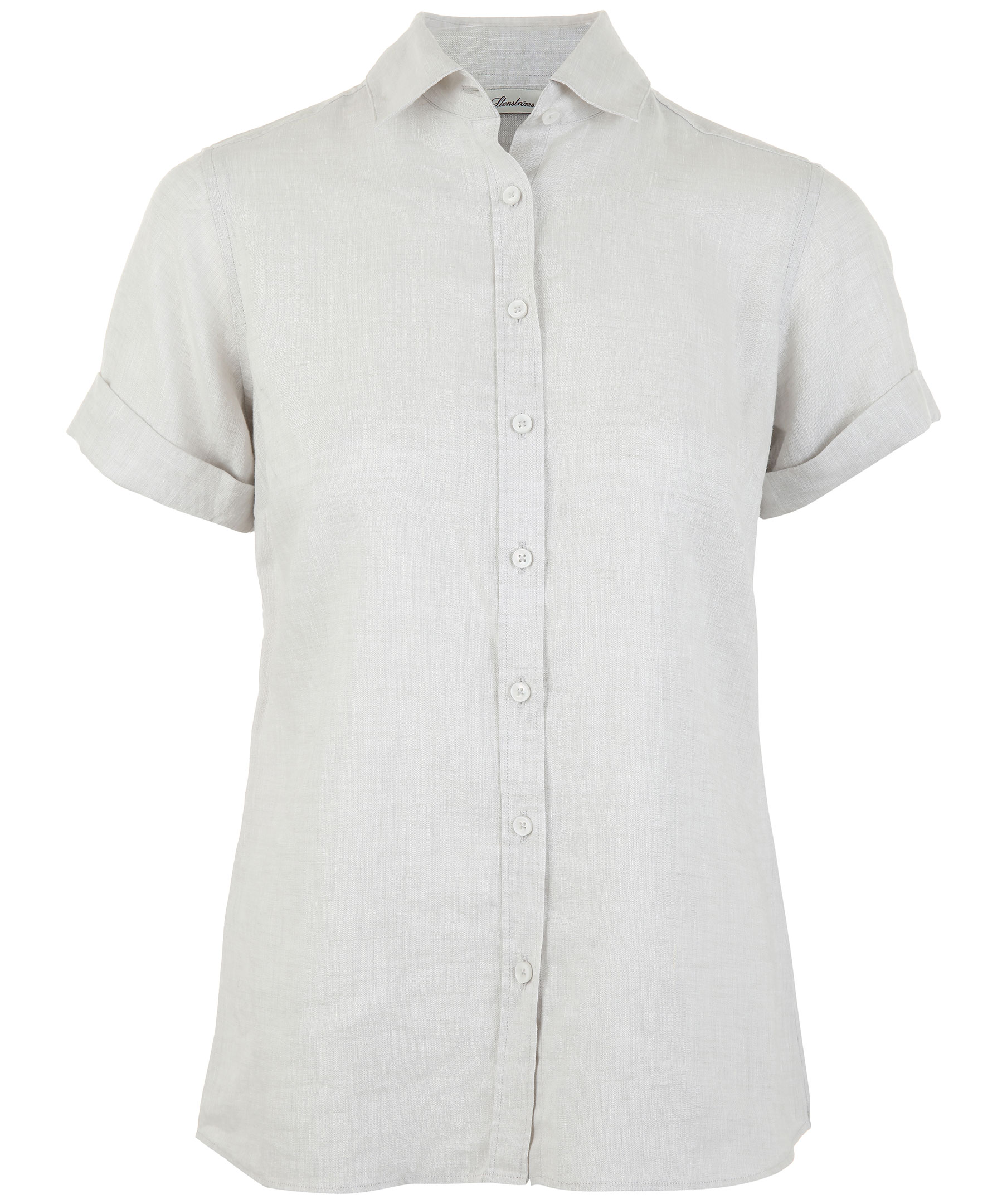 Beige kortärmad skjorta från Stenströms. Tillverkad i 100% linne. Har spetsig krage och har upprullade ärmar.