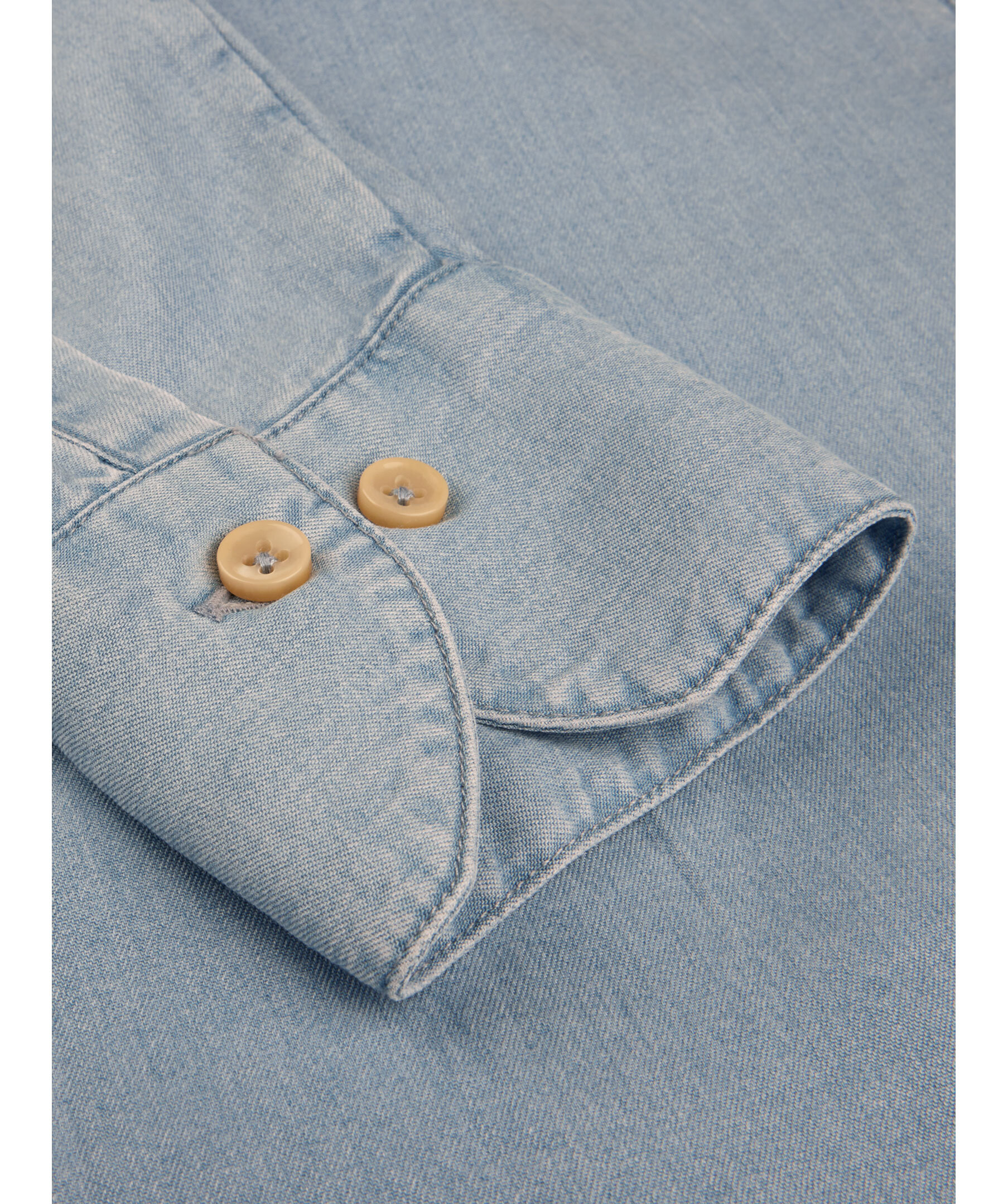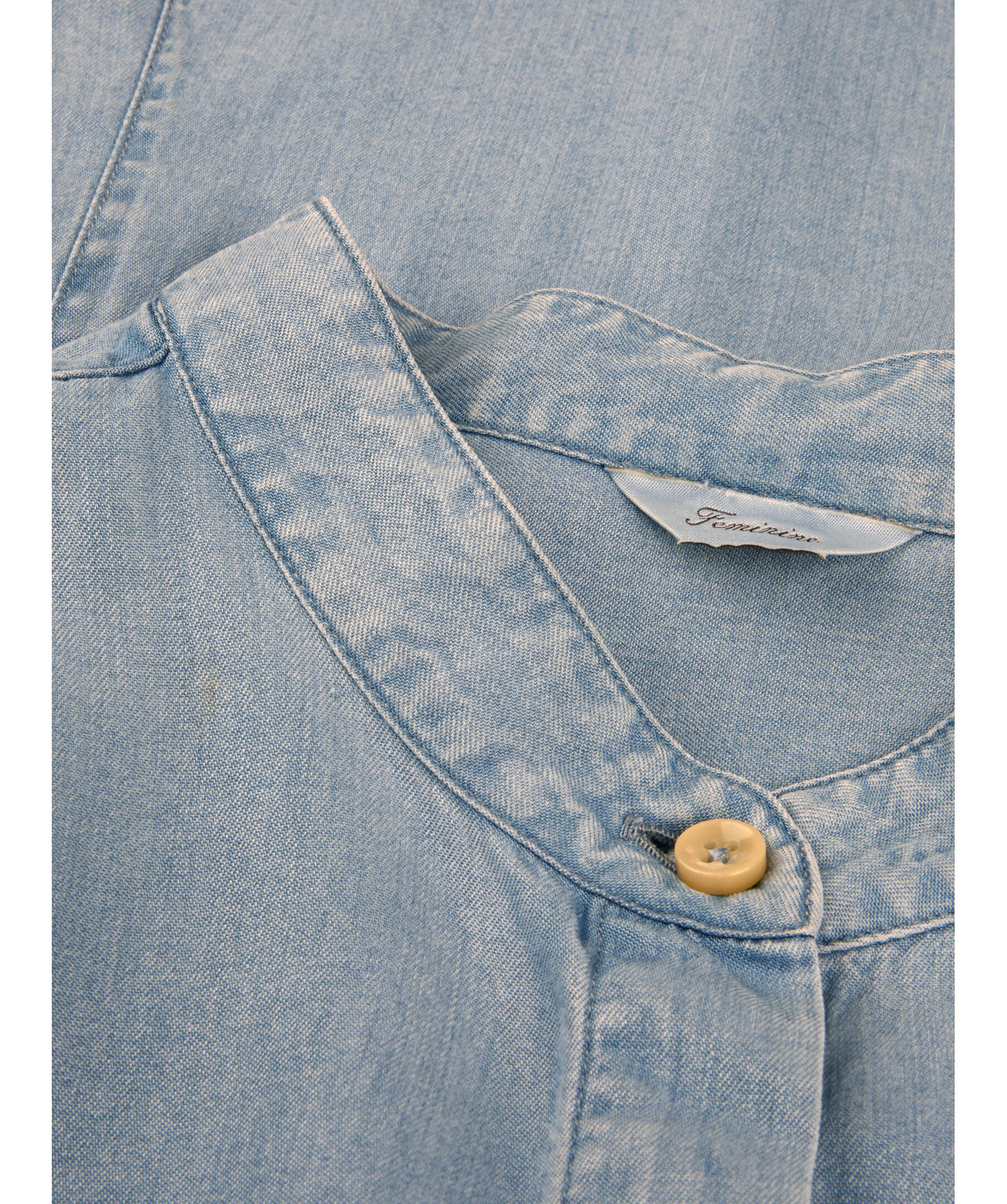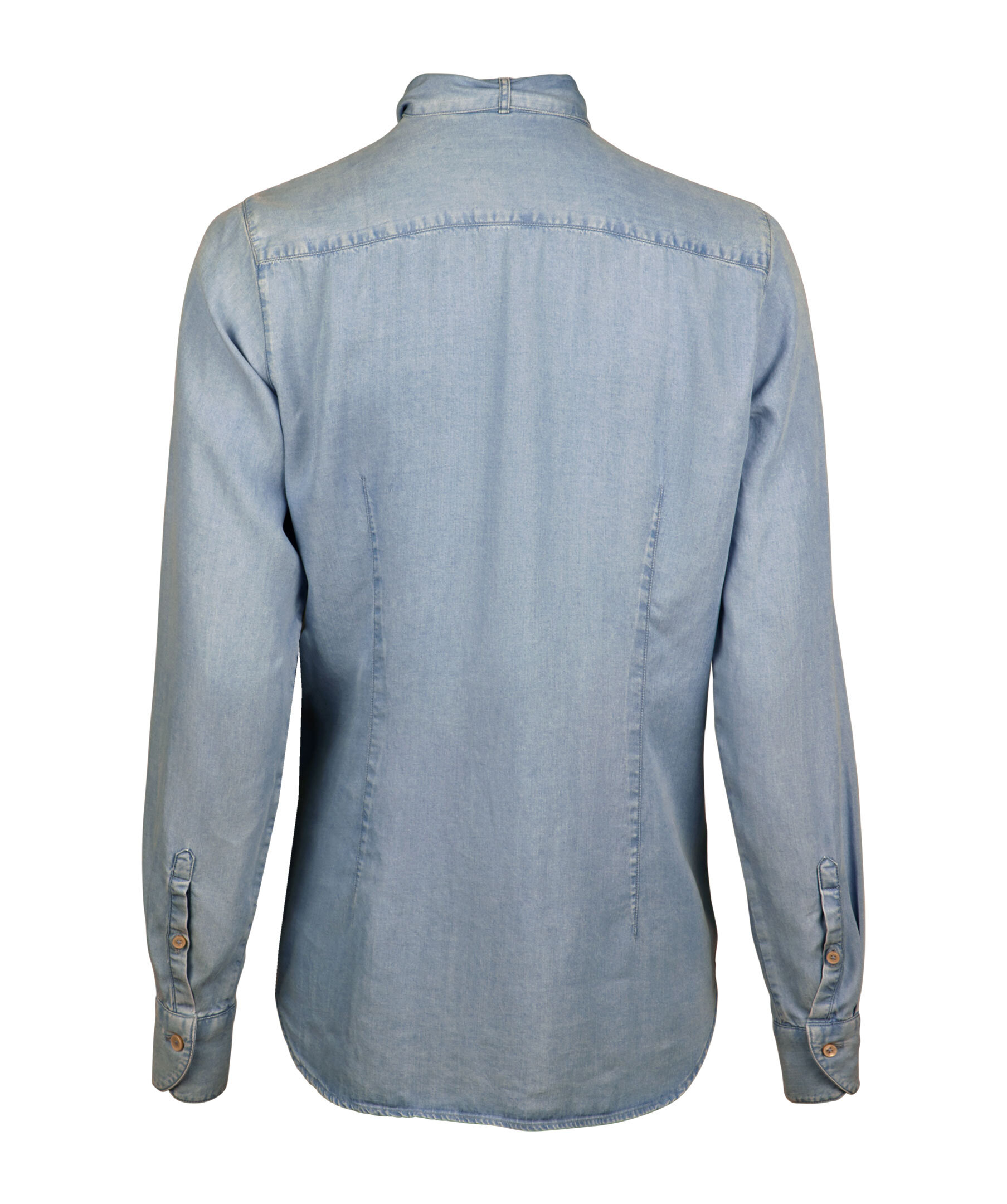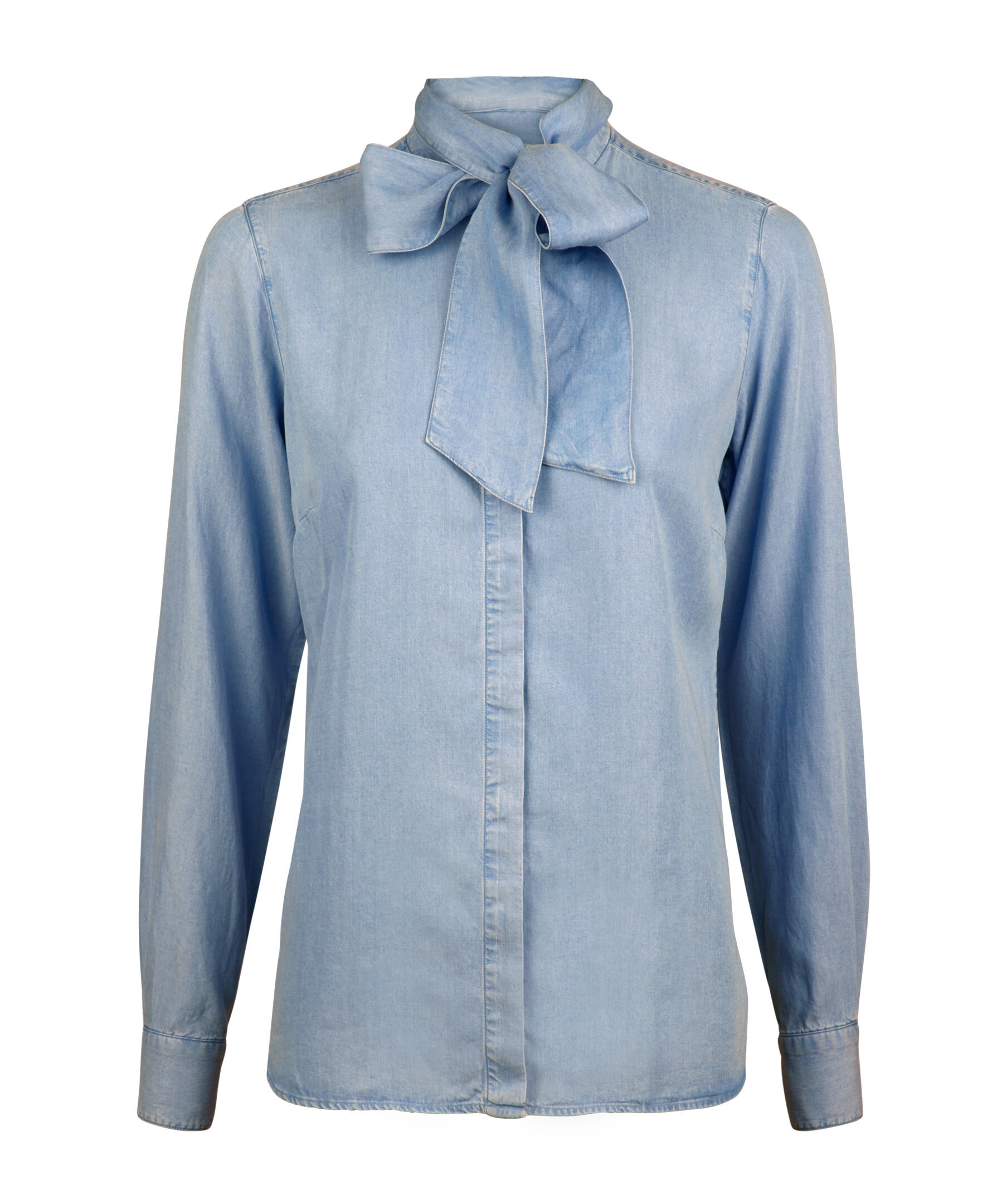 Denna knytblus är tillverkad av lyocell och har en dold knappslå, enkla manschetter och en knytkrage.