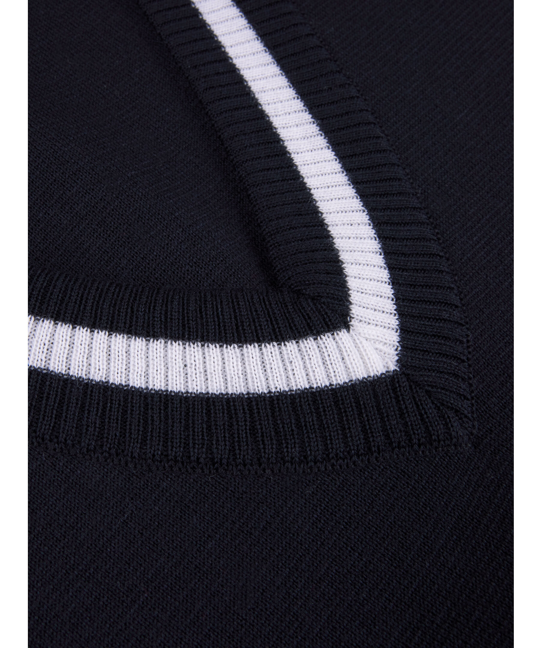 Denna v-ringade slipover är tillverkad av merinoull och är detaljerad med ränder i kontrastfärg.