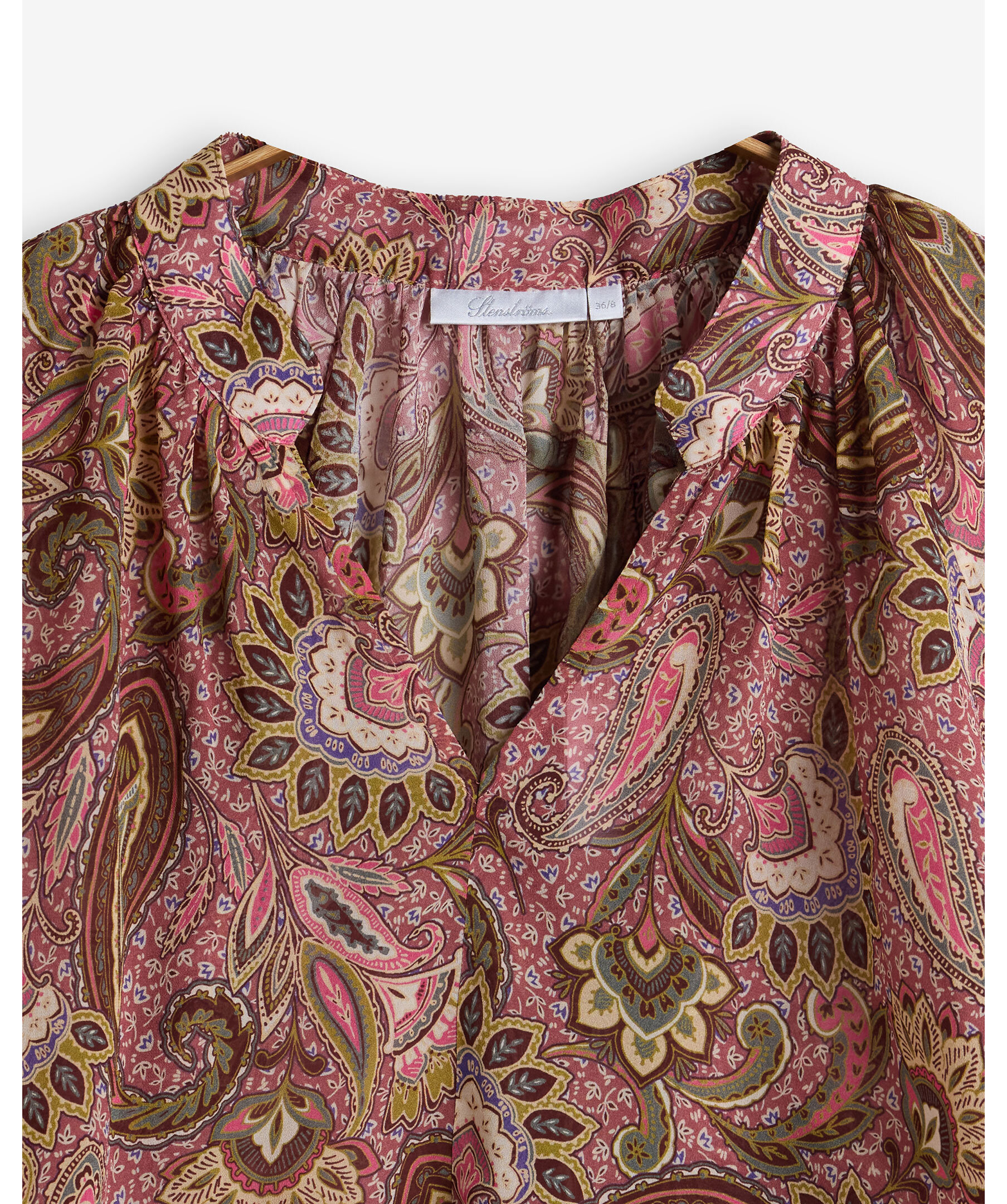 Flerfärgad, mönstrad blus från Stenströms. Blusen är semi-genomskinlig och har en v-ringad halsringning samt långa ärmar. Tillverkad i 100% viskos.