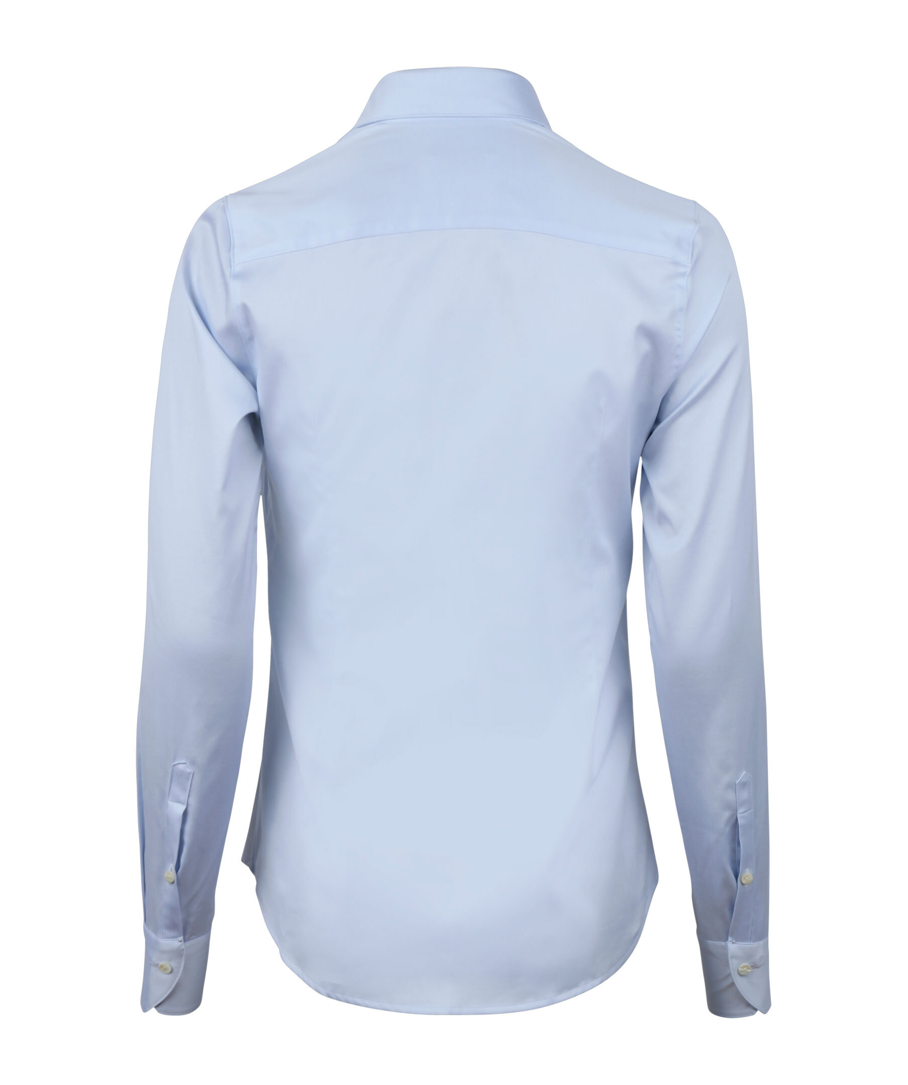 Denna skjorta är tillverkad av bomull och har en feminin passform. Skjortan har pärlemorknappar, enkla manschetter och en klassisk krage. Detta plagg är en Stenströms Essential, och har en given plats i allas garderob.