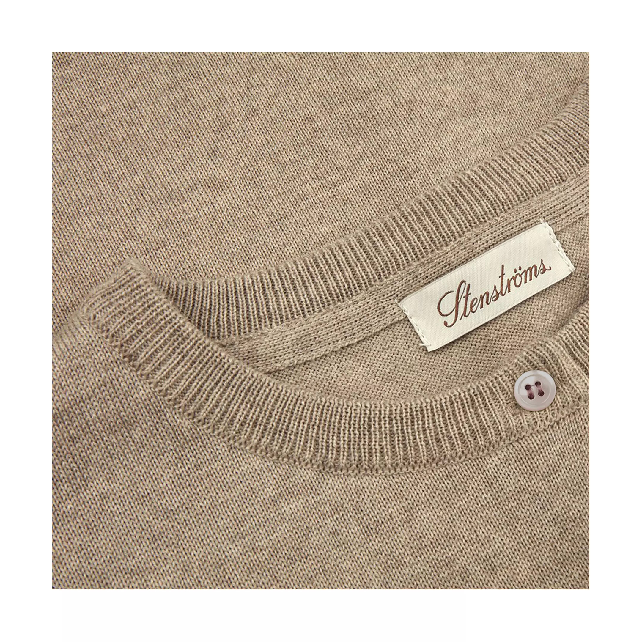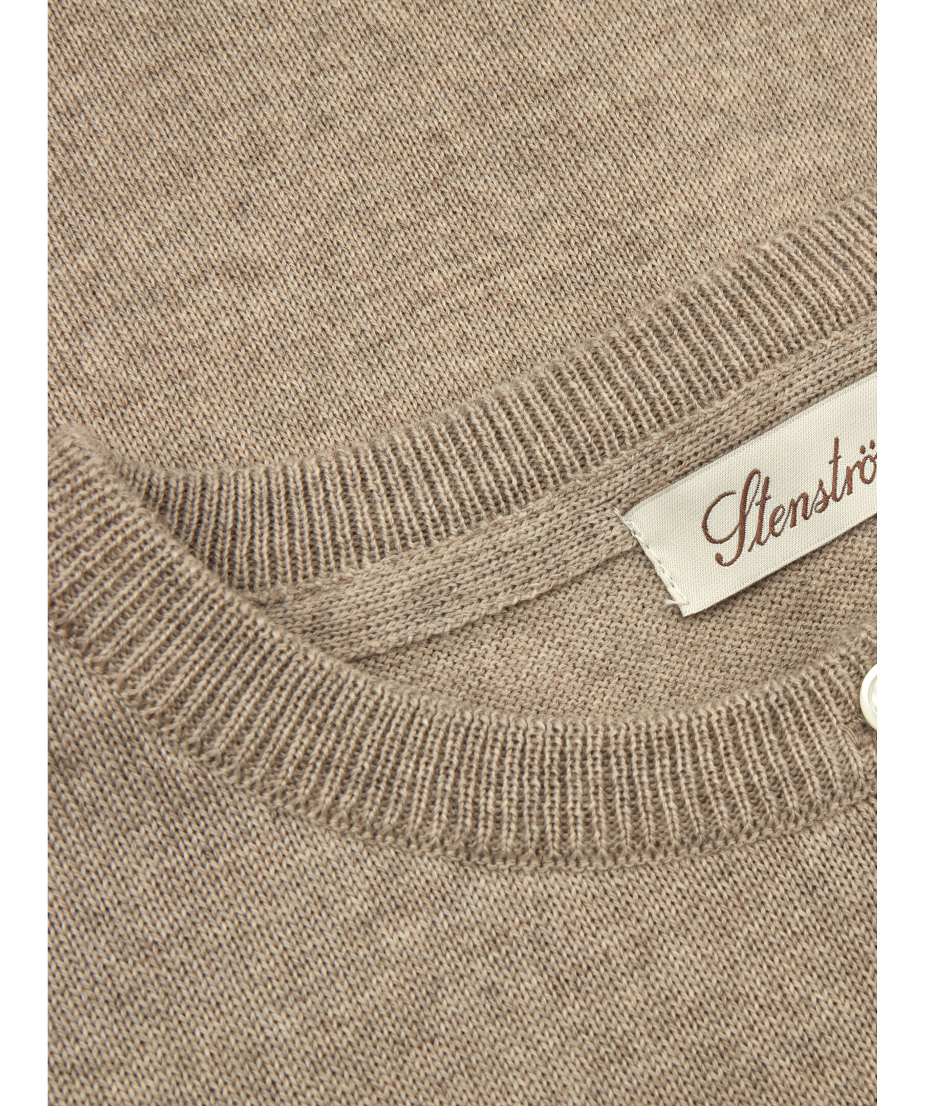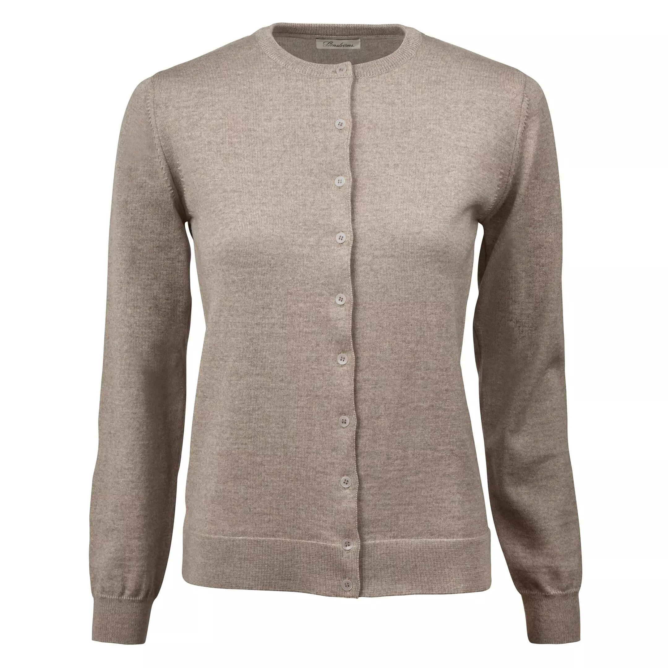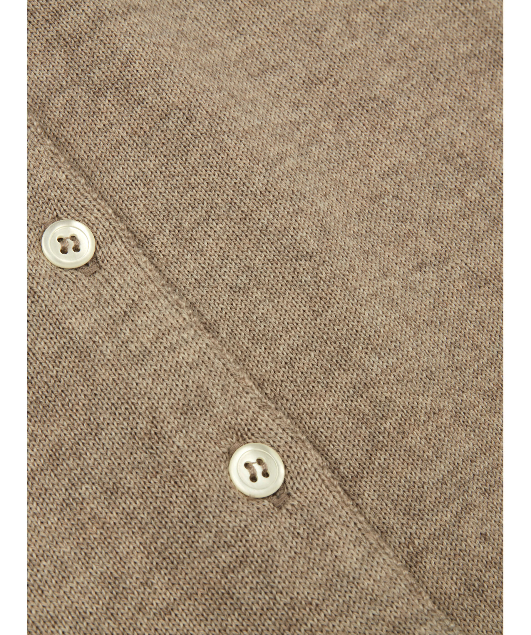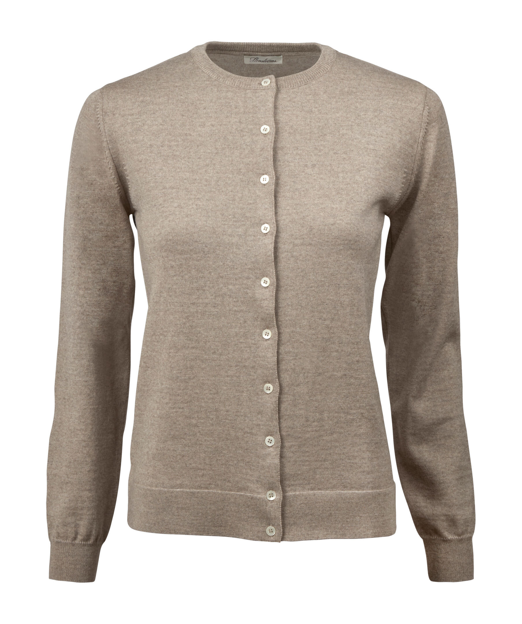 Denna kofta är tillverkad av merinoull och har pärlemorknappar och ribbstickade detaljer vid krage, ärm- och plaggslut.