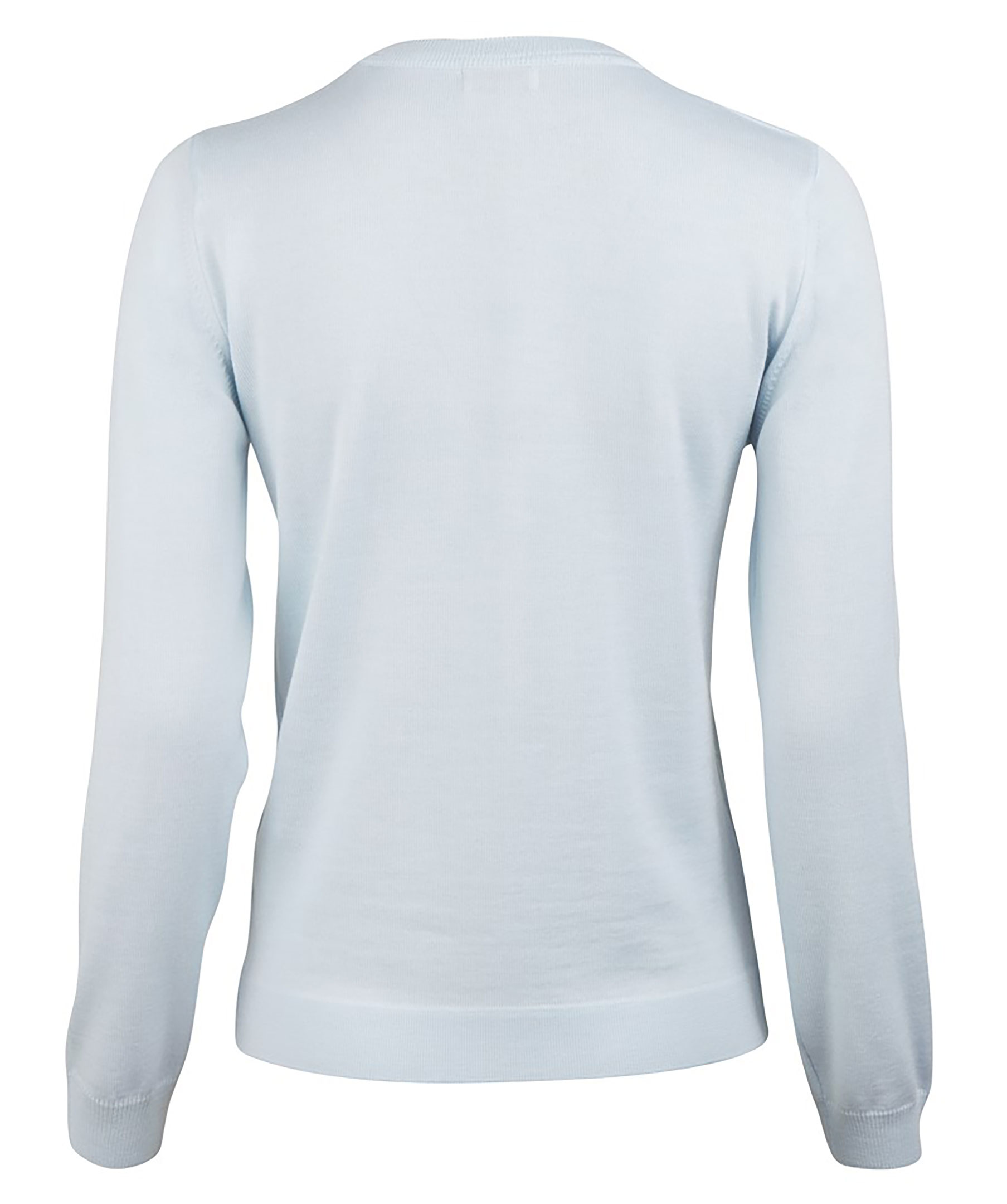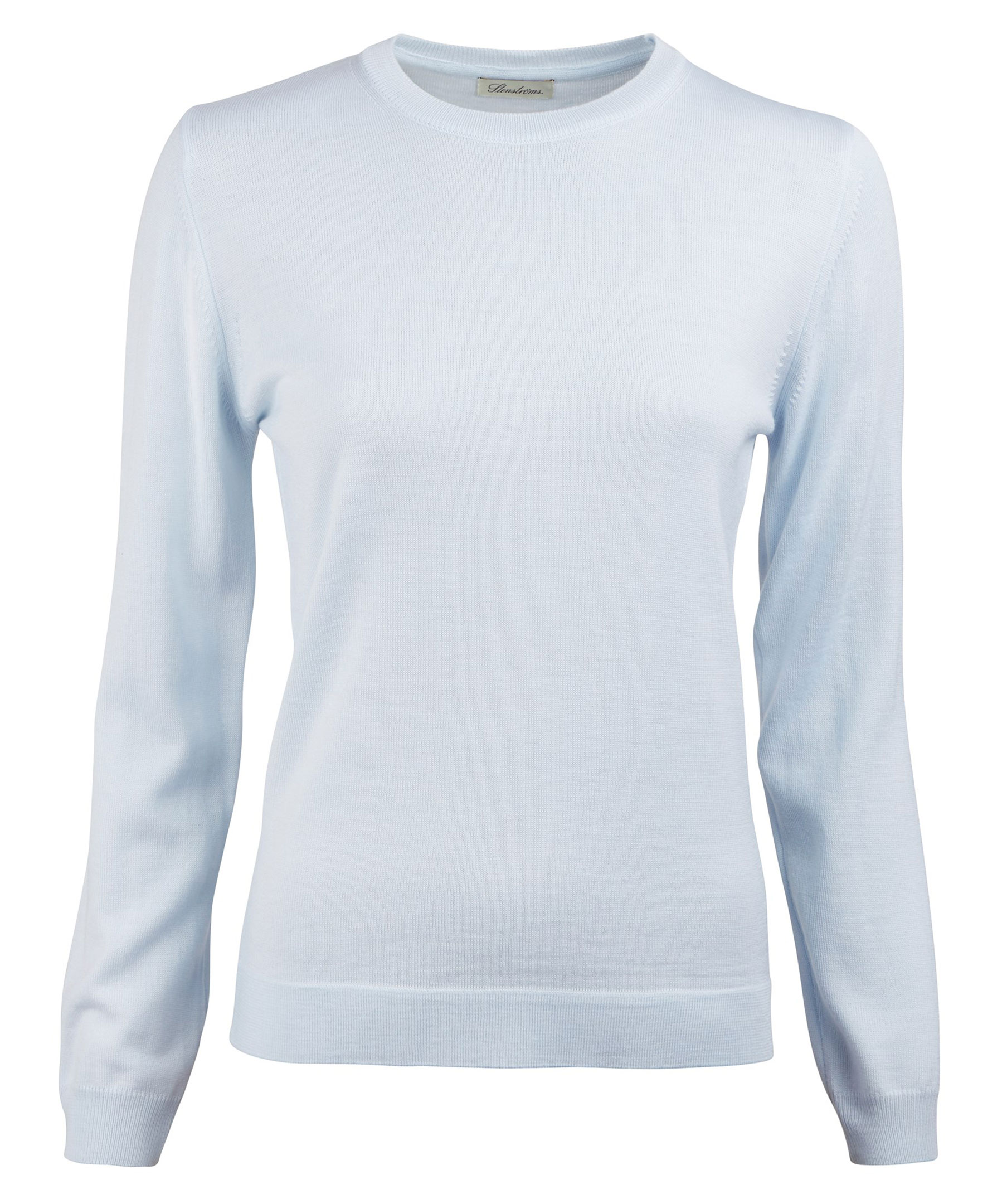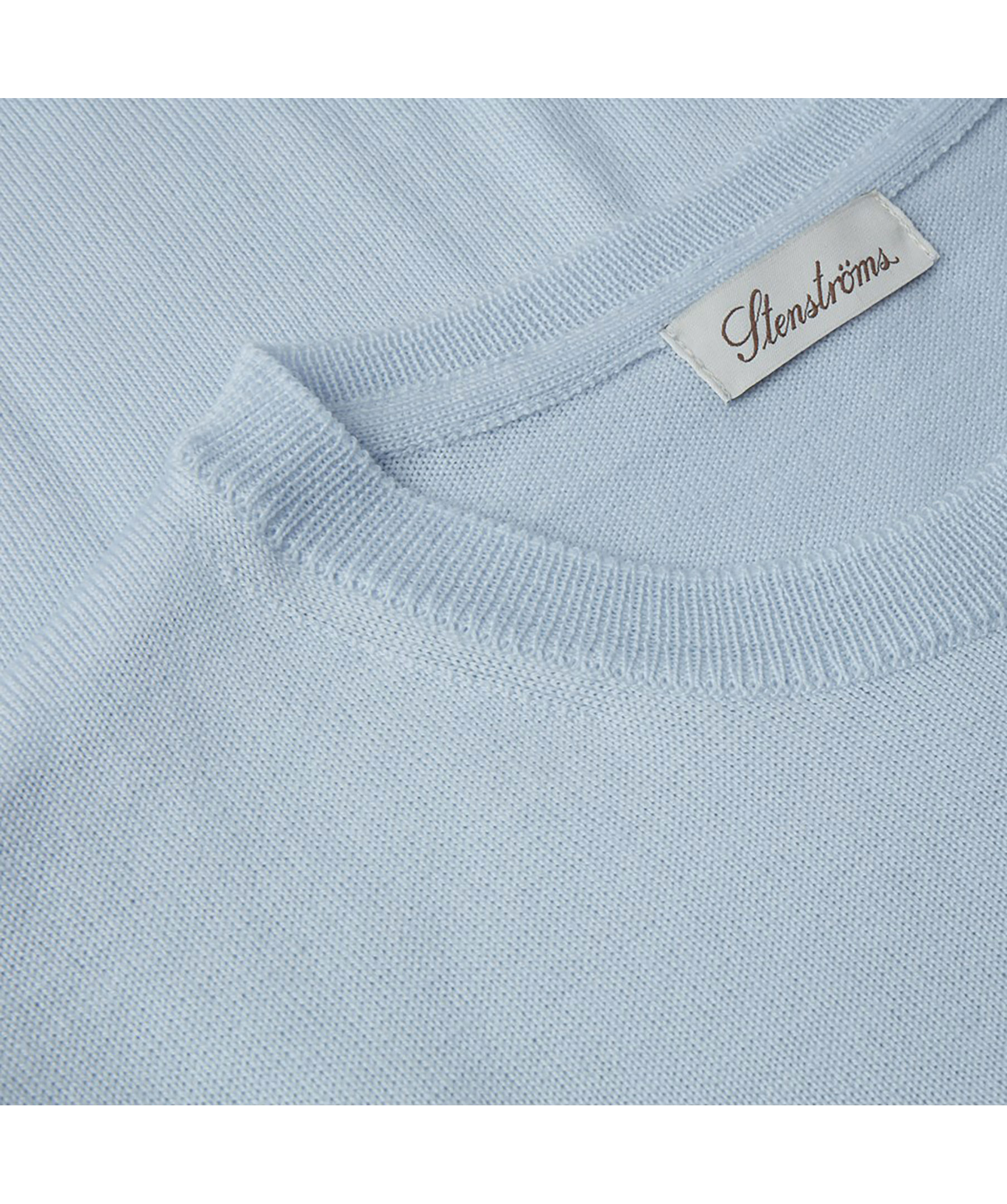 Ljusblå finstickad tröja från Stenströms. Ribbstickade detaljer, rundad hals. Tillverkad i 100% merinoull.