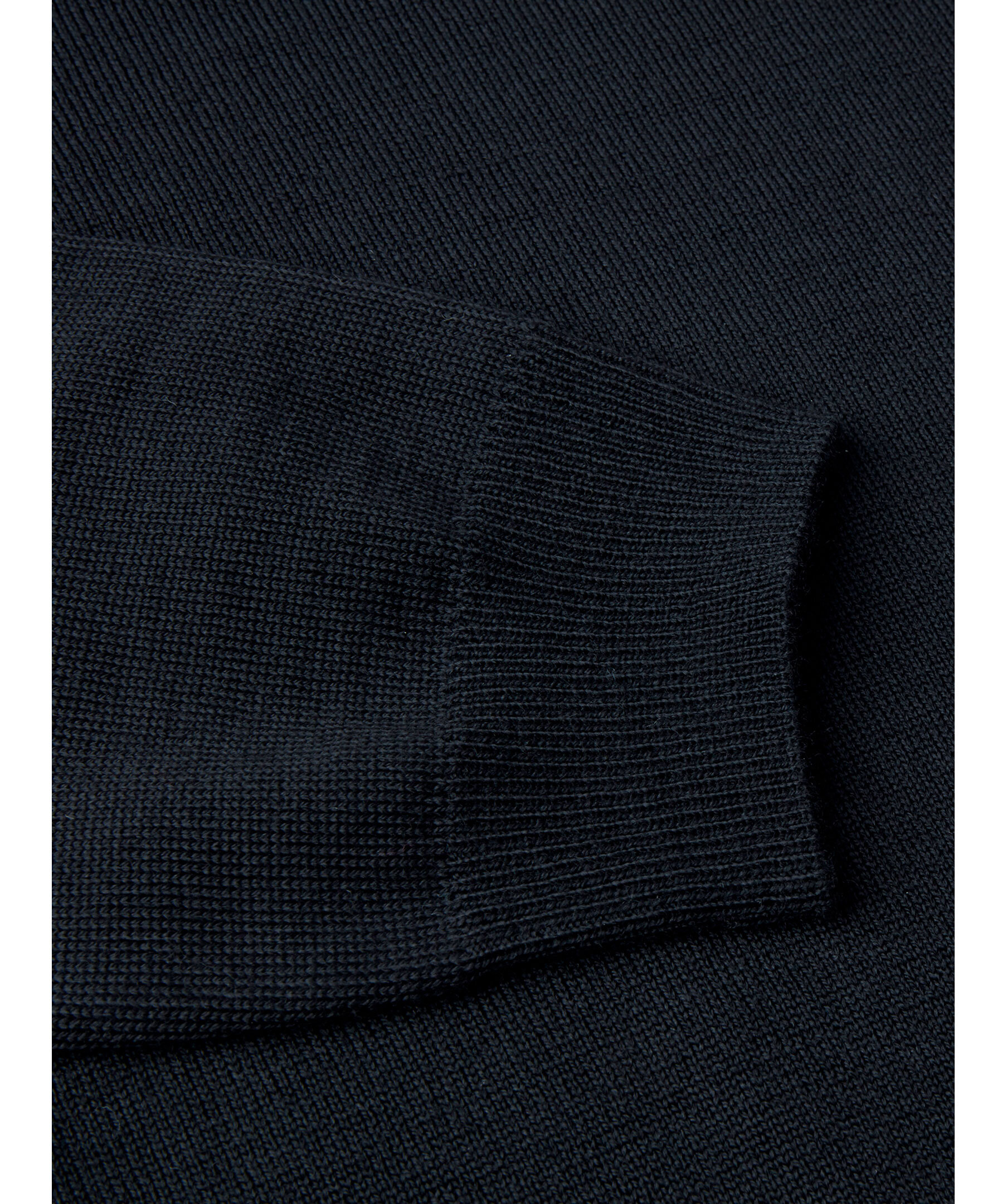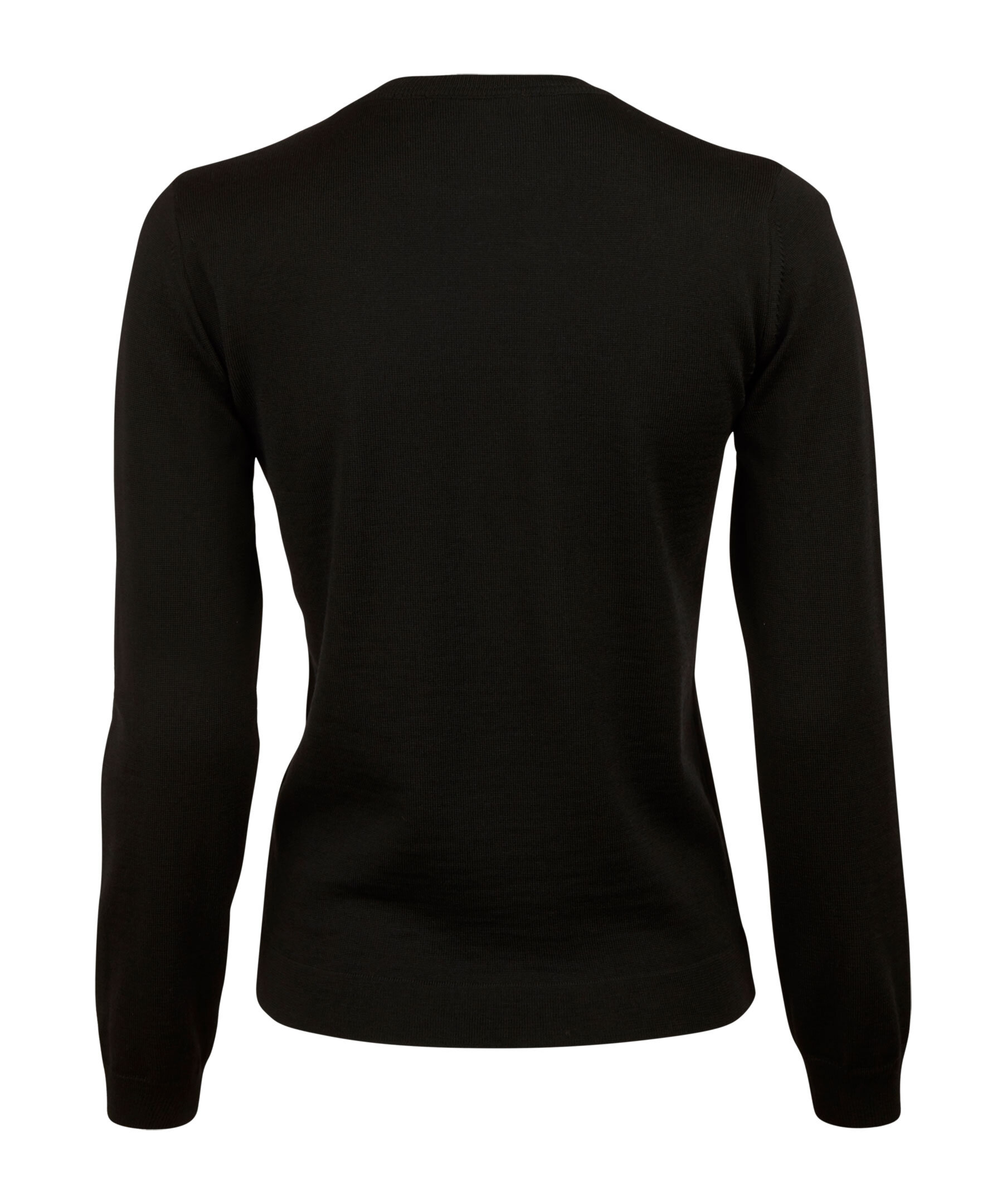 Denna rundhalsade tröja är tillverkad av merinoull och har ribbstickade detaljer vid krage, ärm- och plaggslut.