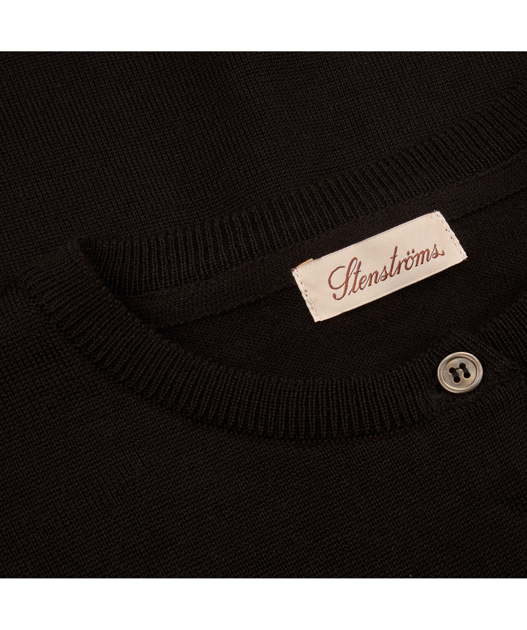 Svart, klassisk, stickad cardigan från Stenströms. Gjord av italiensk merinoull och är det perfekta mellanlagret när temperaturen faller. Designad med ribbstickade ärmslut och fåll. Knäppning framtill med knappar av pärlemor och rundad halsringning.
