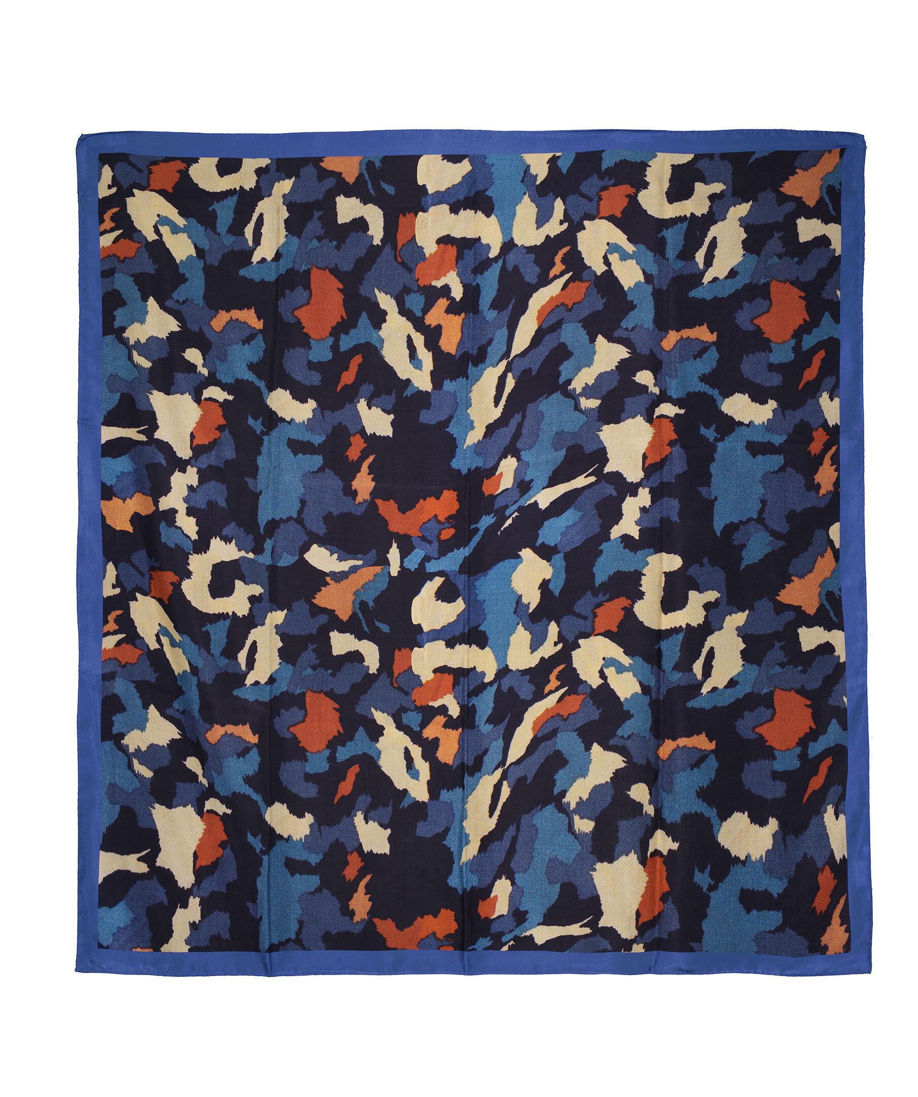 Blå scarf med multifärgat mönster från Stenströms. Tillverkad i 100% siden. Mått: 90x90 cm.
