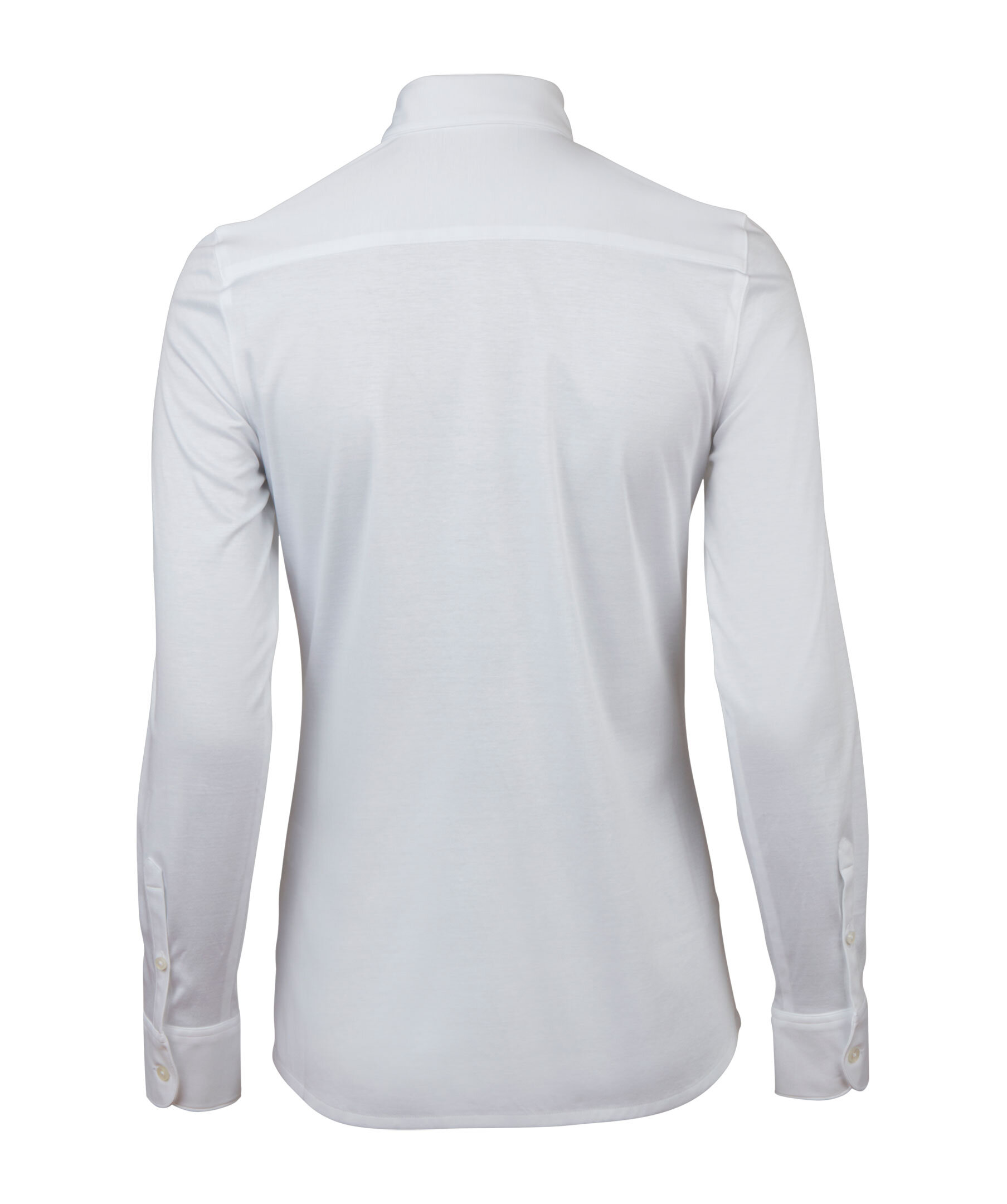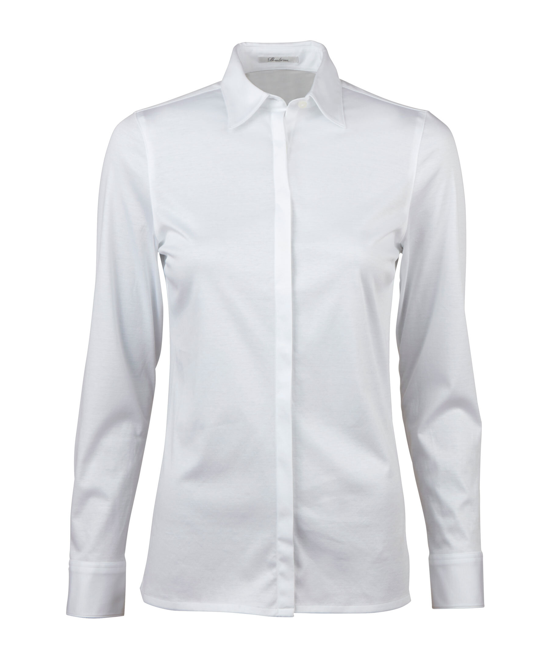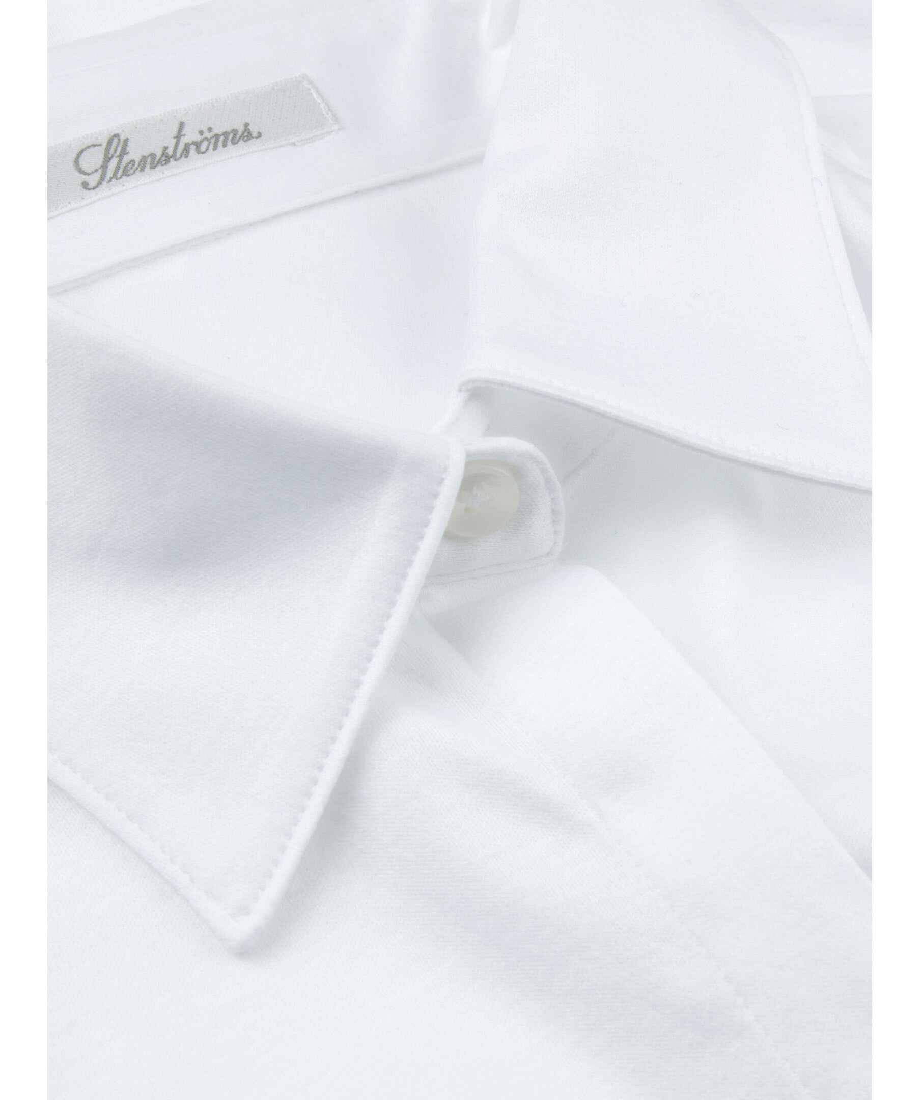 Denna jerseyskjorta är tillverkad av bomull och har en feminin passform. Skjortan har en dold knappslå, enkla manschetter och en klassisk krage. Detta plagg är en Stenströms Essential, och har en given plats i allas garderob.