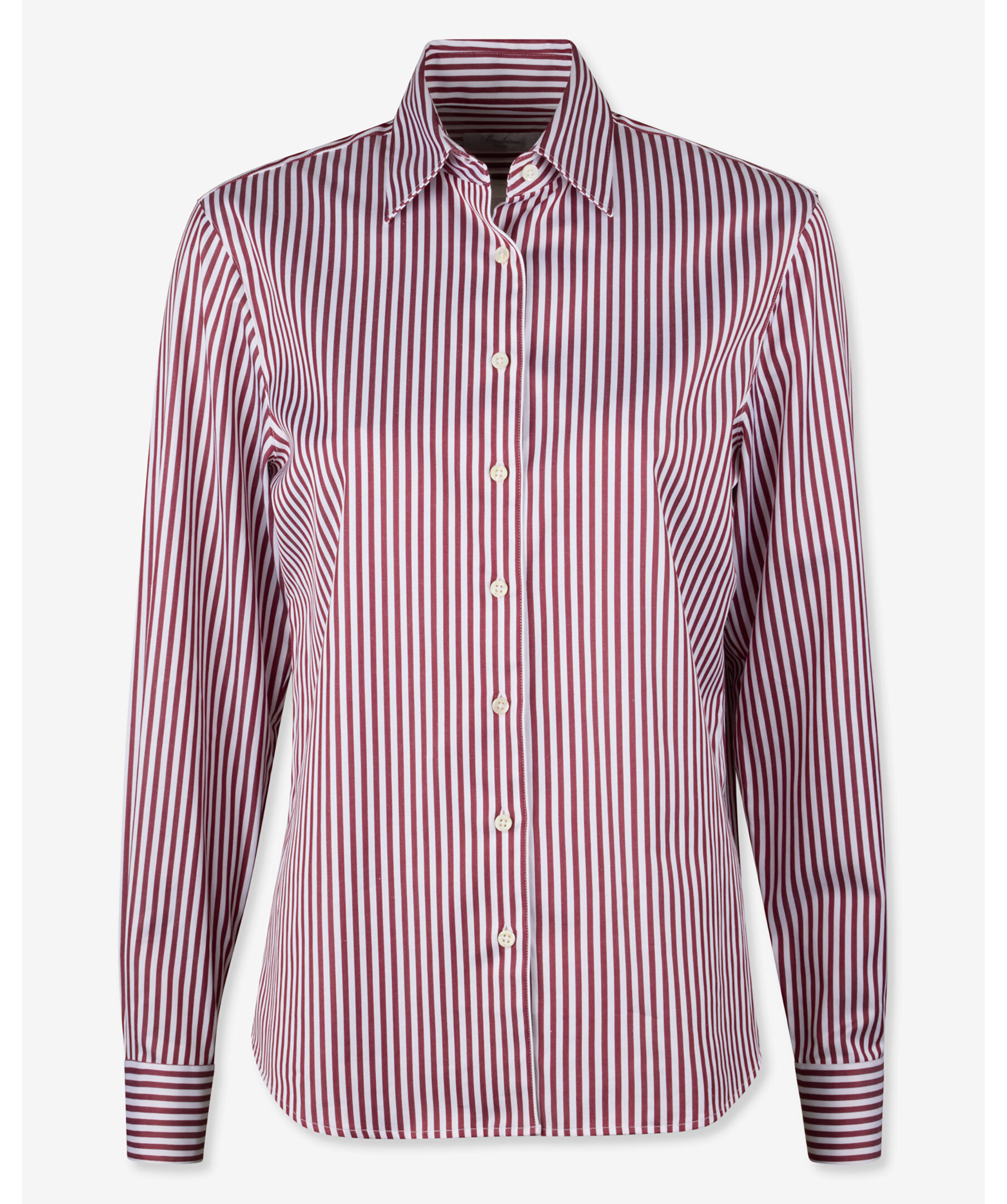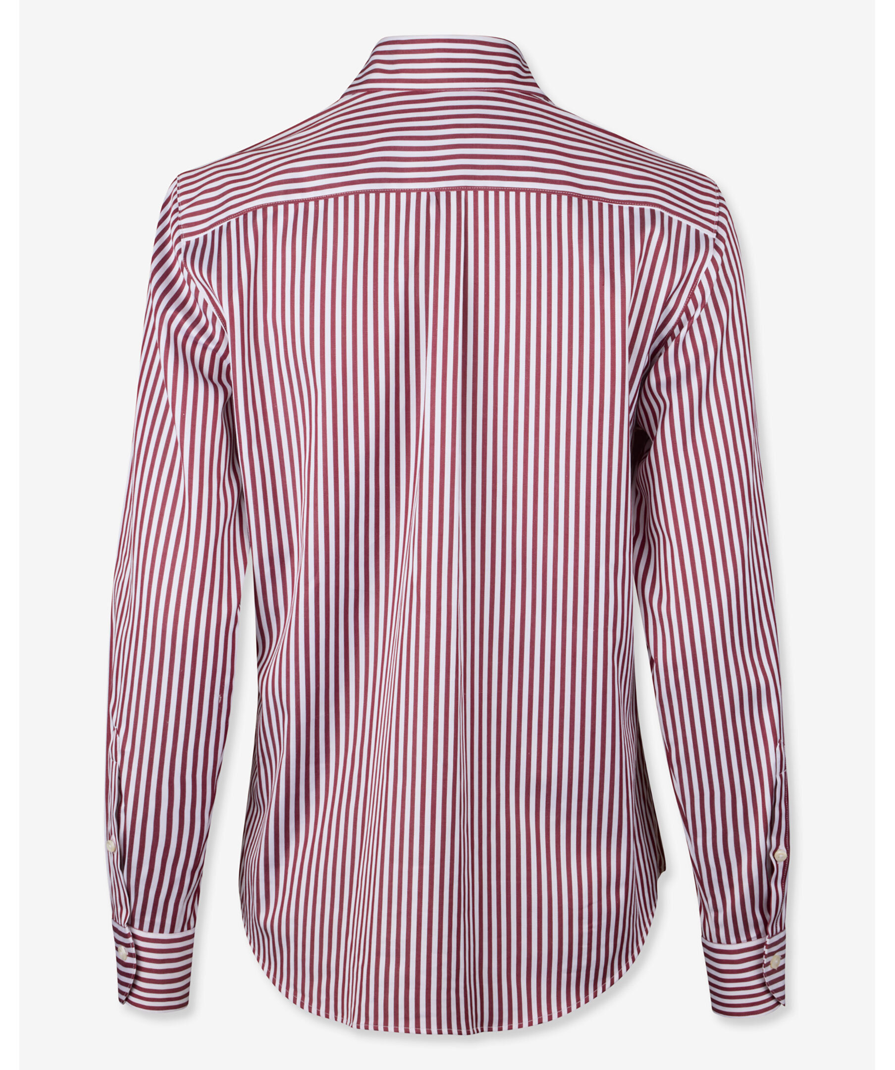 Randig skjorta i vinrött och vitt från Stenströms. Skjortan har en oversized passform och är tillverkad i bomullsstretch. Stängs med pärlemorknappar och har enkla manschetter och en klassisk krage.