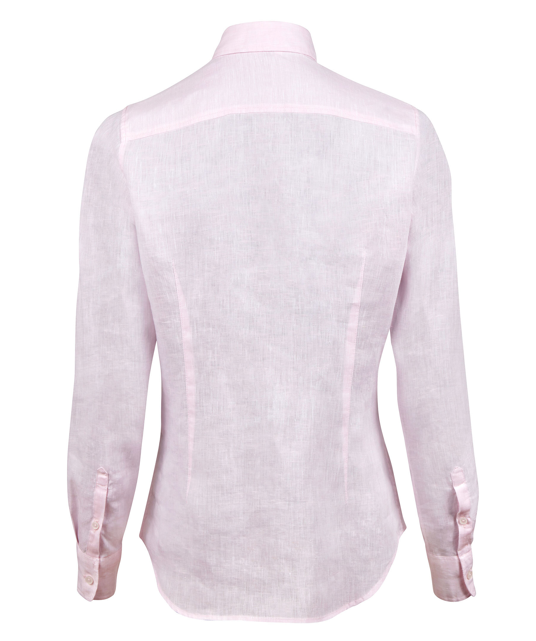 Ljusrosa skjorta med Feminin passform. Tillverkad i linne med en slät knappslå, enkla manschetter och klassisk krage.