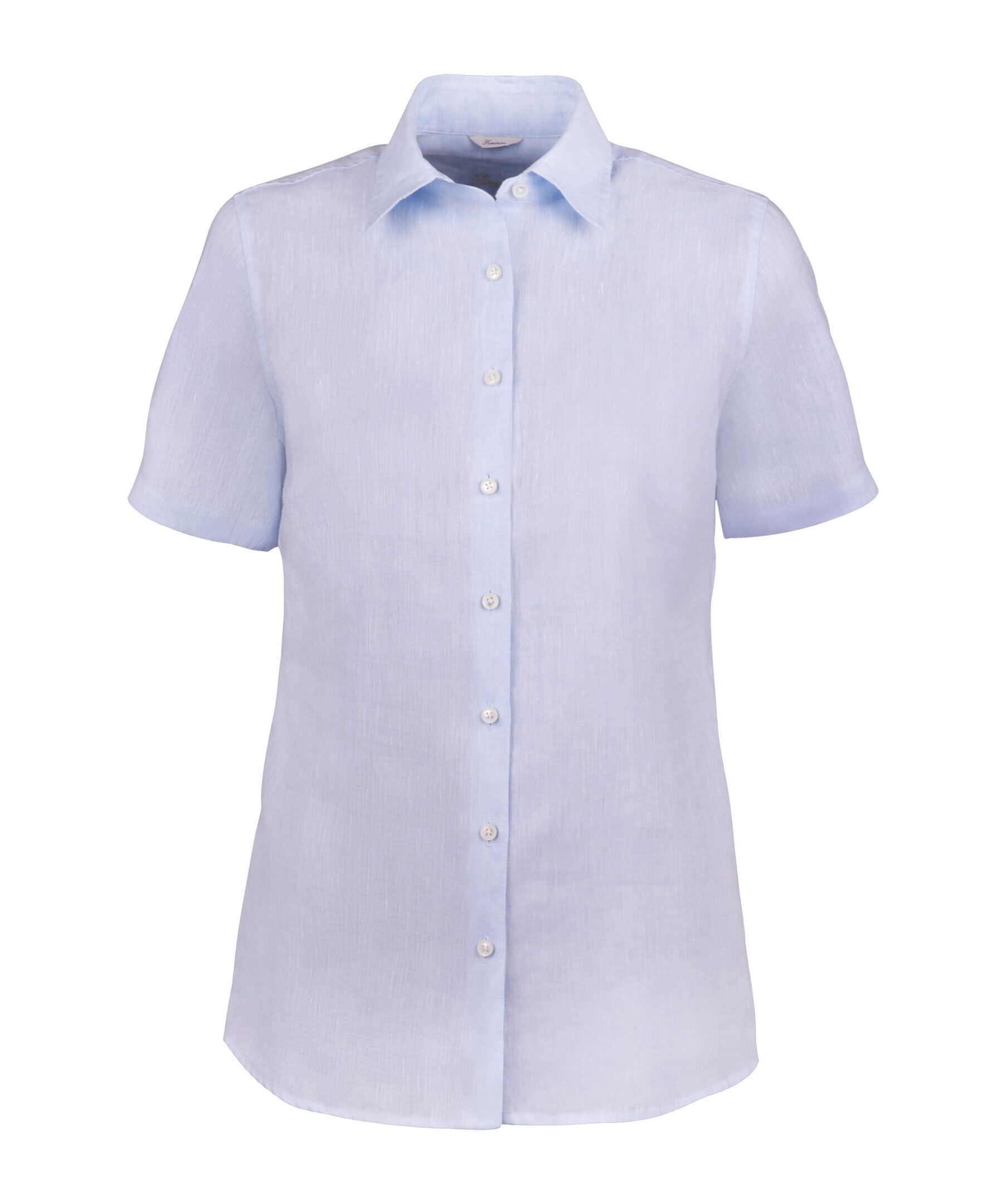 Denna skjorta är tillverkad av linne och har en feminin passform. Skjortan har korta ärmar och en klassisk krage.
