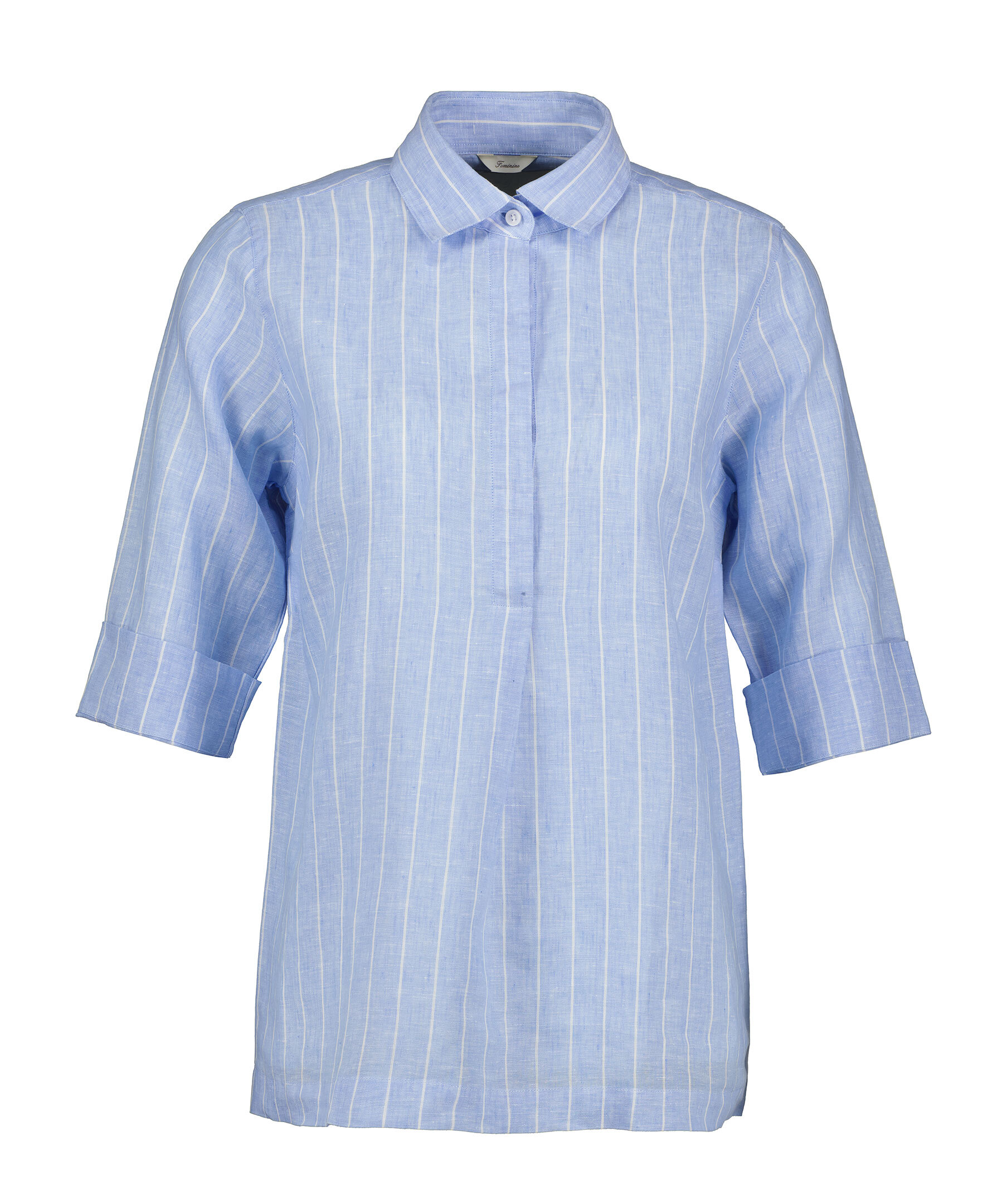 Blå-randig blus från Stenströms. Dold knäppning framtill och 3/4 ärmlängd. Tillverkad i 100% Linne.