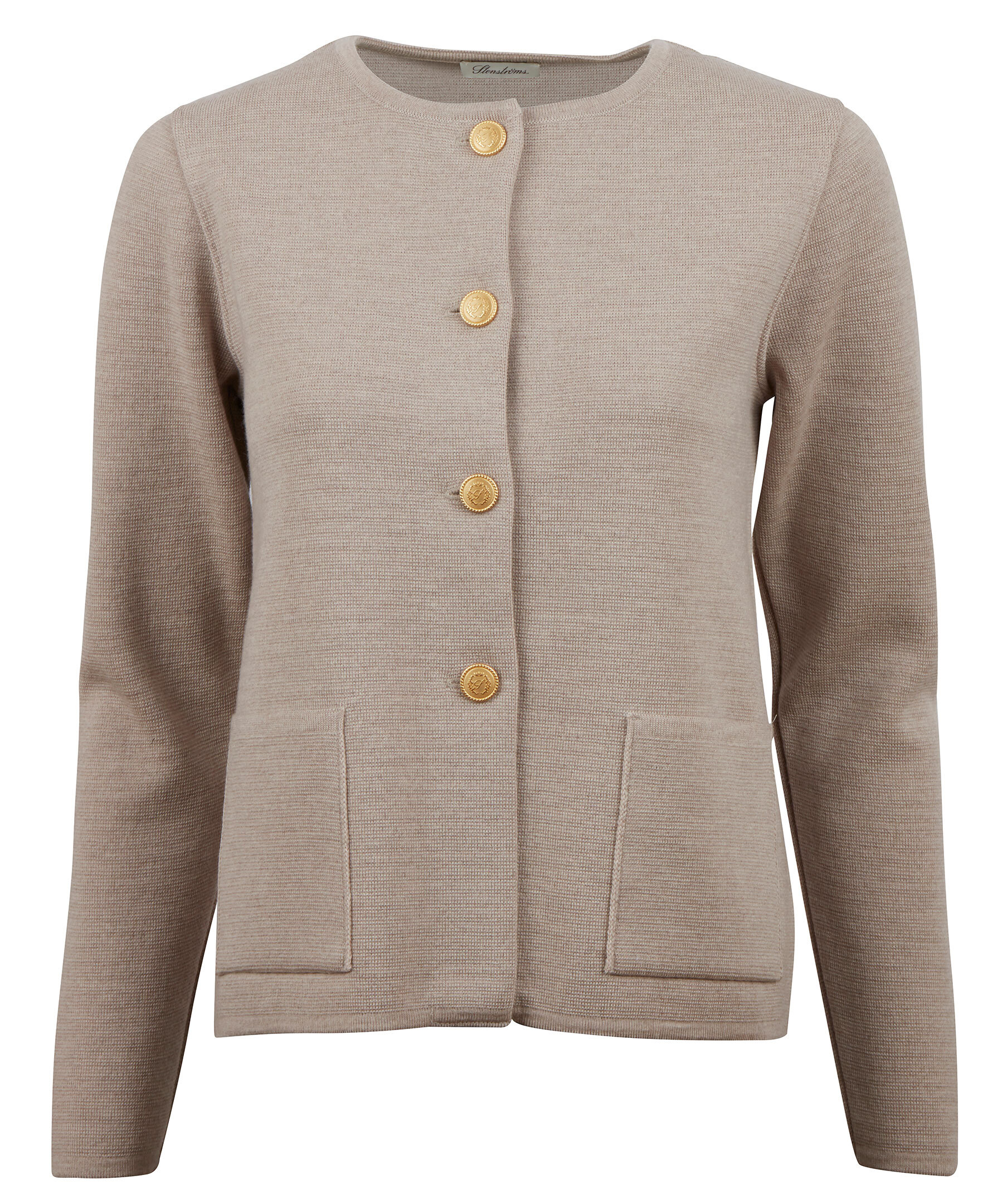 Koftan som passar till allt. Med en tidlös klassisk design, tillverkad av mjuk värmande merinoull håller den här koftan dig varm och chic. Modellen har fickor framtill och knäppning med fyra guldfärgade knappar med Stenströms-S. Bär den på kontoret eller till helgen över vad som helst.