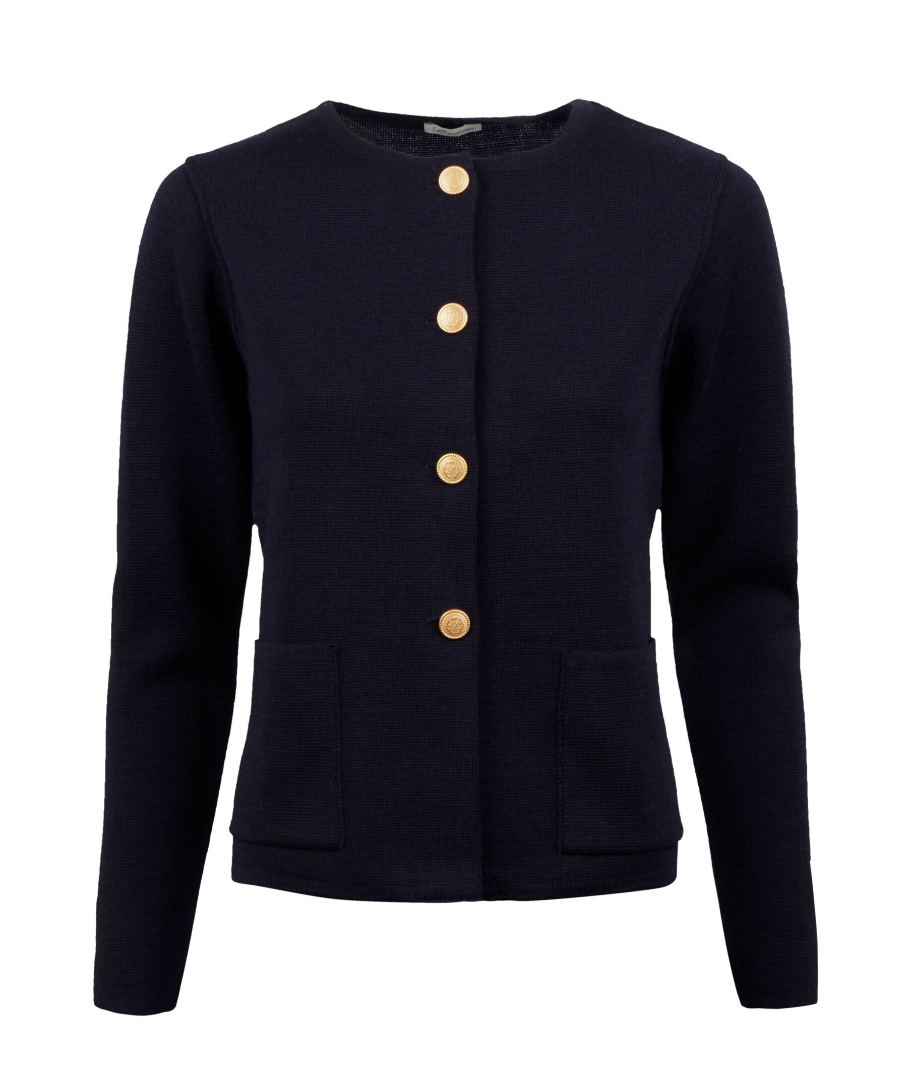 Denna kofta med rak passform är tillverkad av merinoull och har två fickor framtill samt guldiga knappar.
