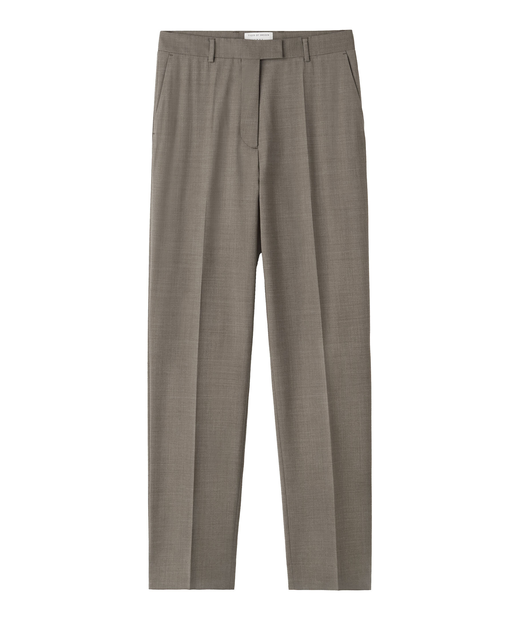 Gråa kostymbyxor med pressveck från Tiger of Sweden. Byxorna har en smal passform och mellanhög midja. Raka, något avsmalnade byxben. Gjorda i en ullblandning. Snedställda framfickor och passpoalerade fickor baktill.