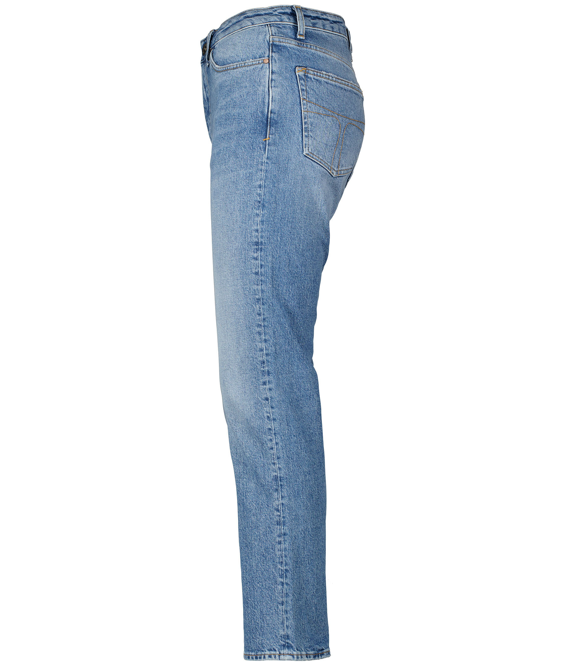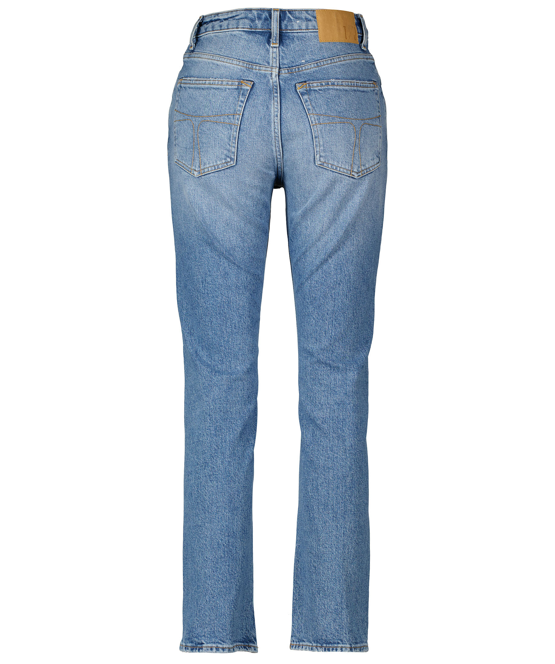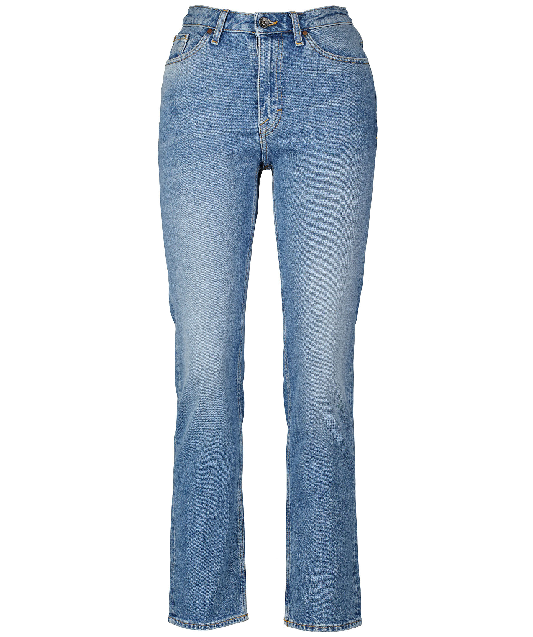 Ljusblå, stentvättade jeans från Tiger of Sweden. Slim fit, hög midja, croppade och raka byxben, fem fickor. Hällor i midja för bälte och patch med logotyp på bak i midjan. *Slim fit *Hög midja *Croppade byxben