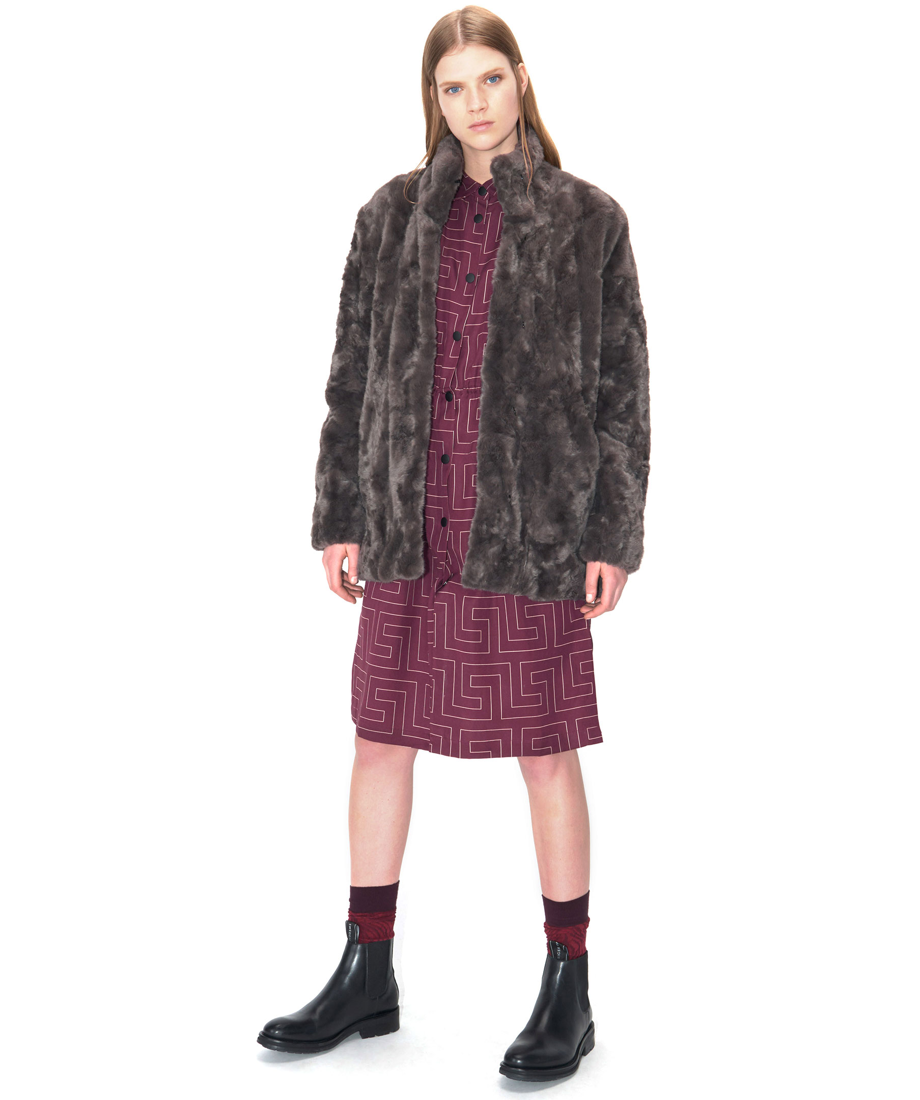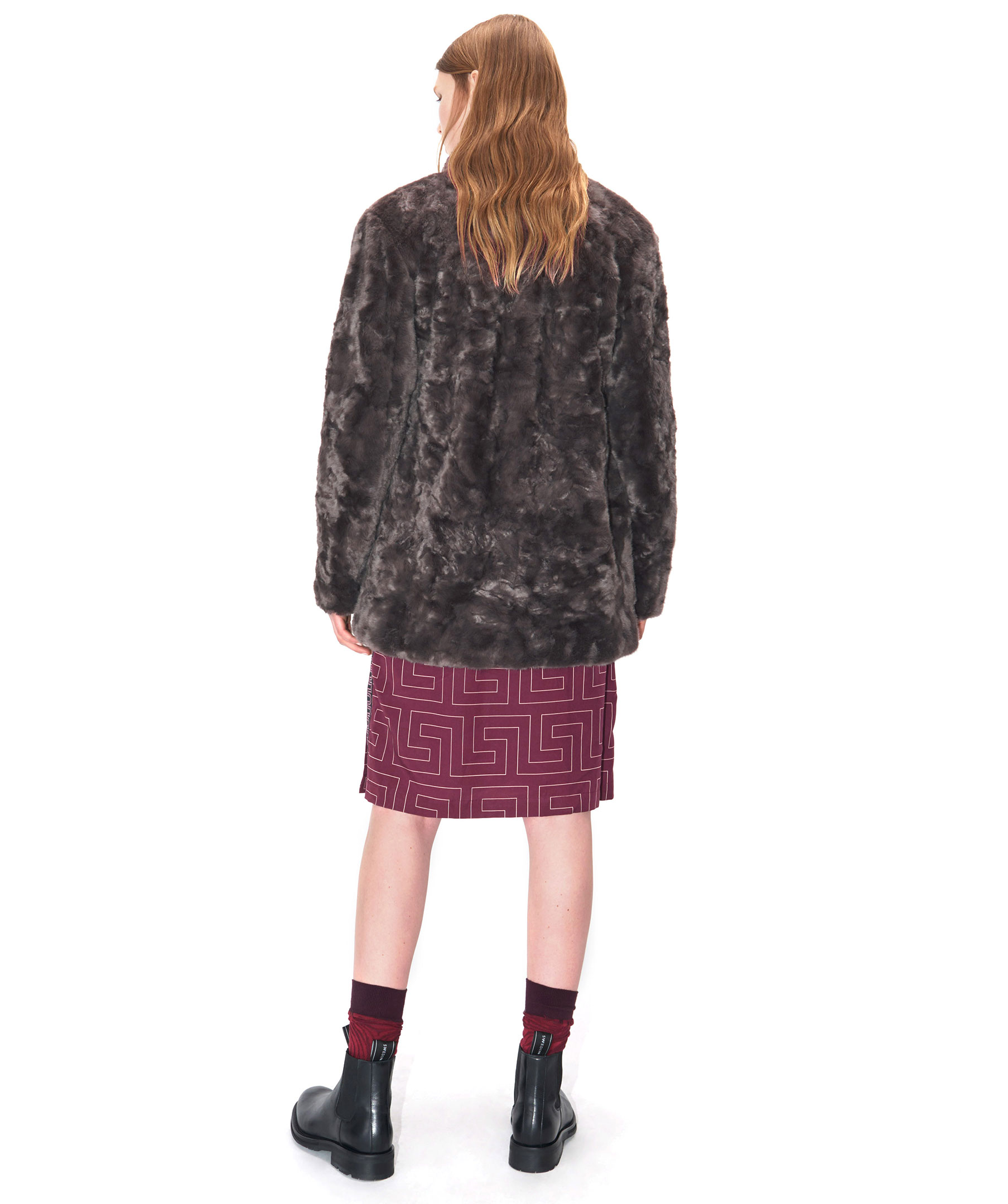 Grå/brun jacka mjuk i konstpäls från Tiger Of Sweden. Normal passform som slutar under höften, stängs med krokar framtill och har två innerfickor.