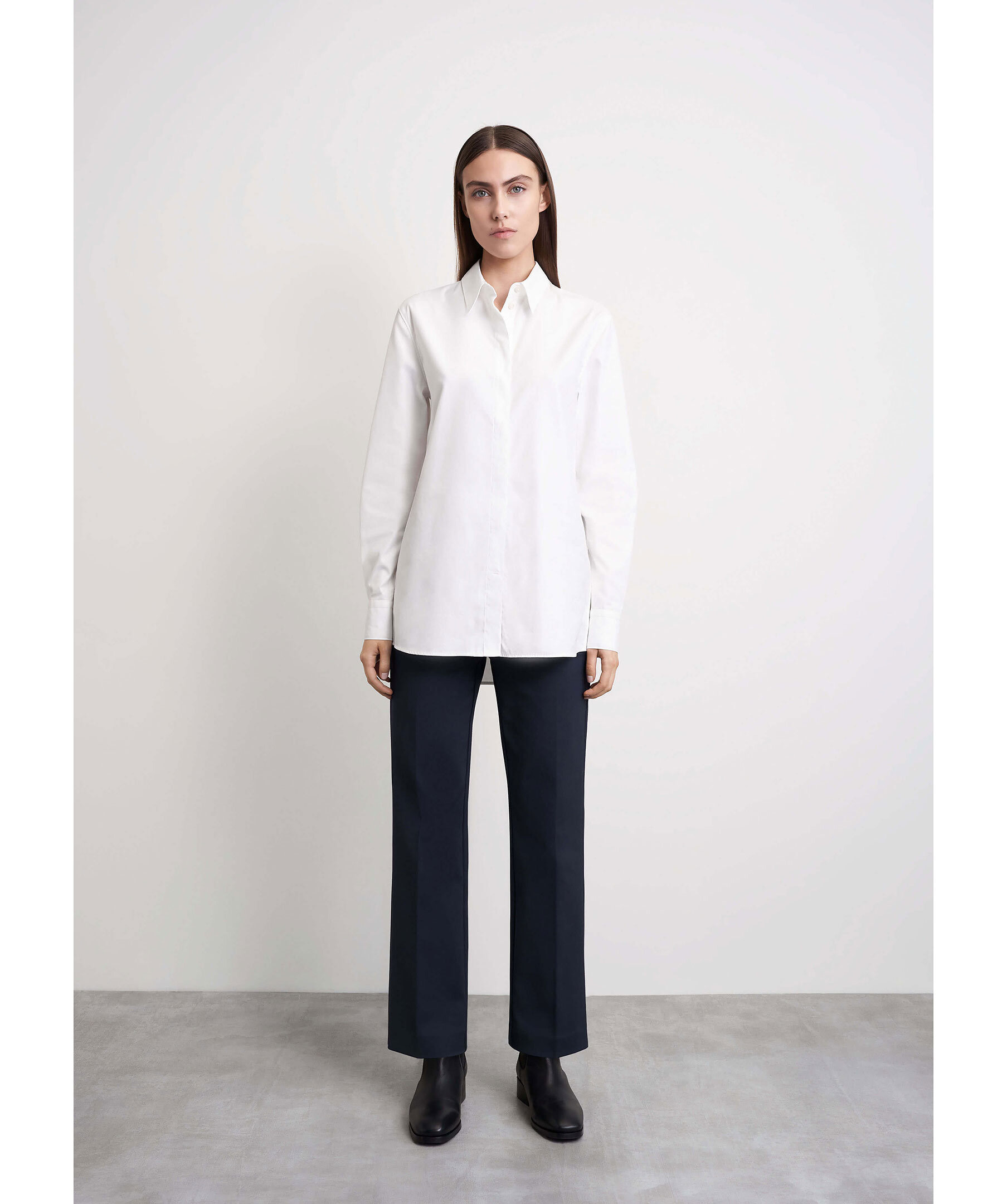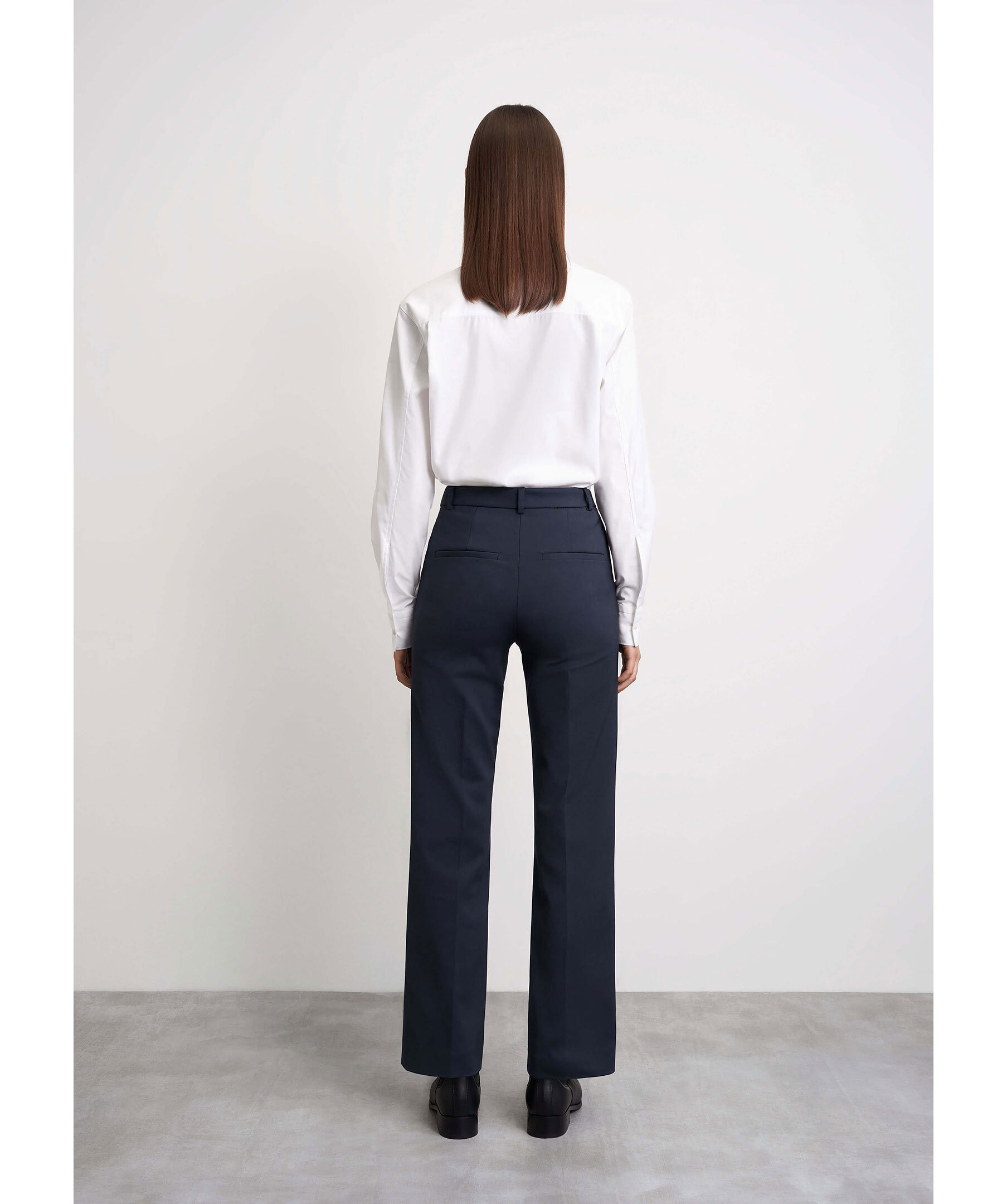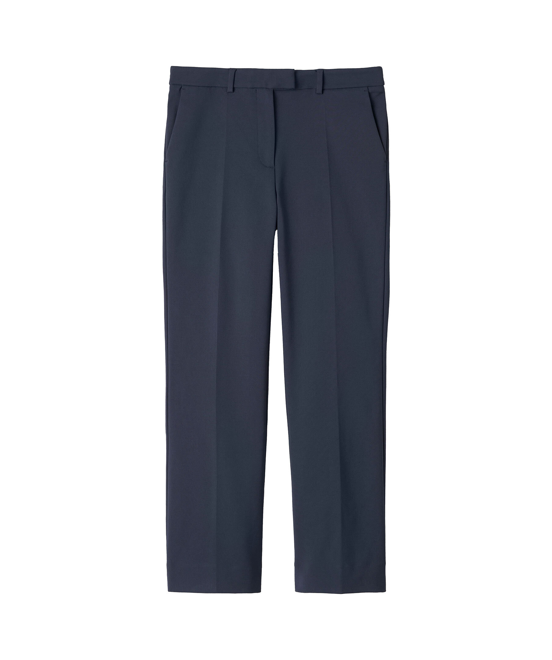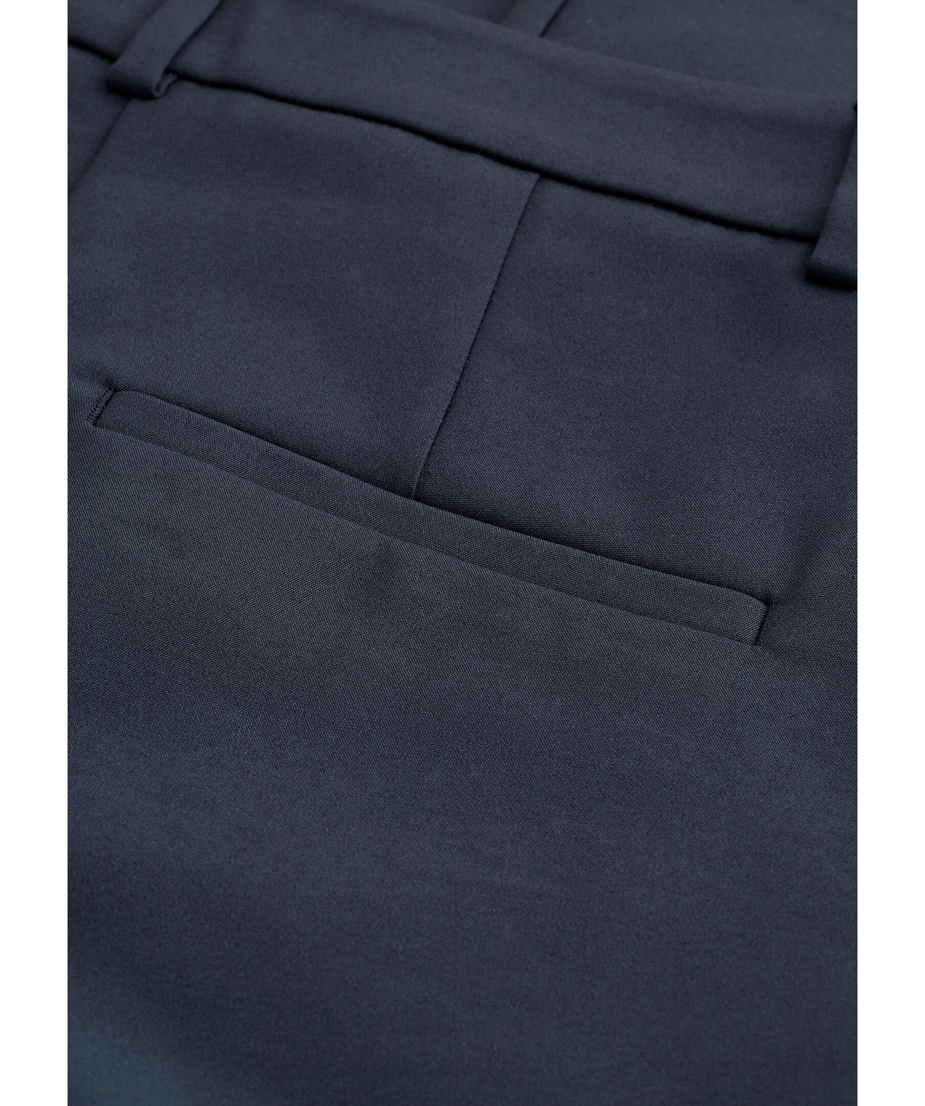 Mörkblåa kostymbyxor i ekologisk bomullsblandning för en bekväm och hållbar stil från Tiger of Sweden. De har en smal passform med raka ben och ankellängd, vilket ger en modern och stilren silhuett. Byxorna är utrustade med blixtlås, hake och hyskstängning för säker passform, snedställda framfickor och passpoalfickor bak för extra funktionalitet och stil.