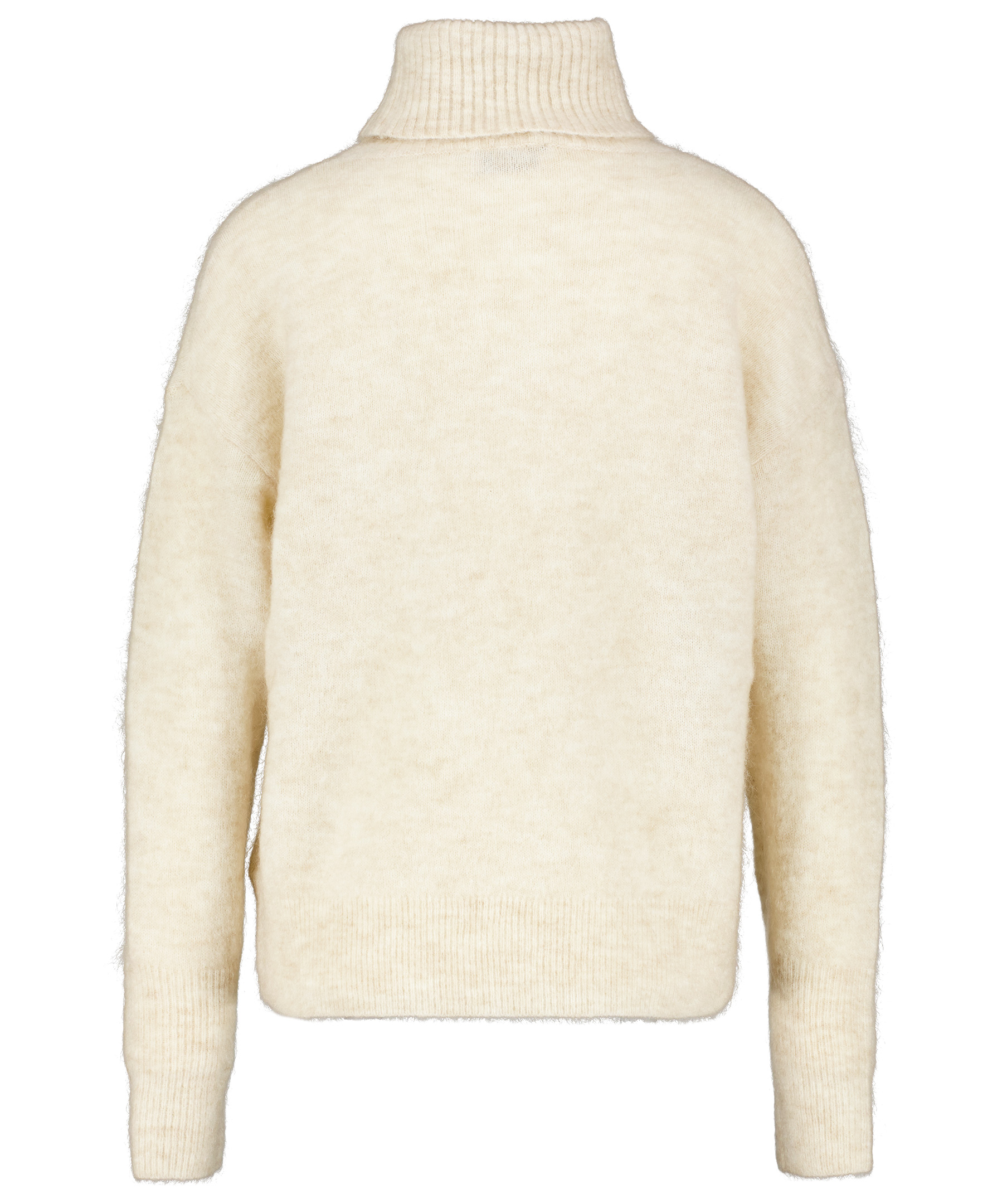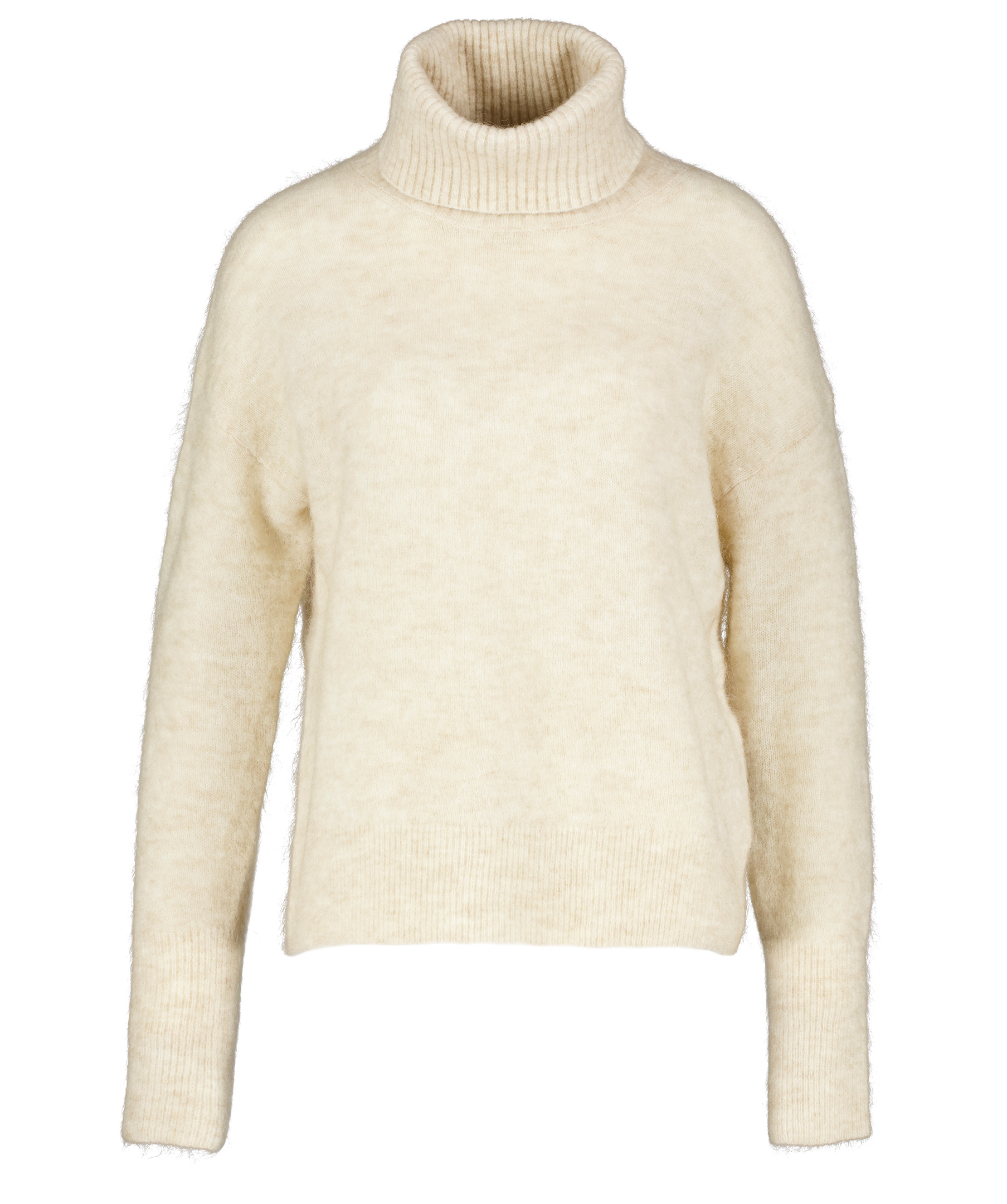 Beige finstickad polotröja i en avslappnad passform från Tiger of Sweden. Tröjan är gjord i en varm mohair blandning. Borstat utseende, polokrage och ribbstickade muddar.