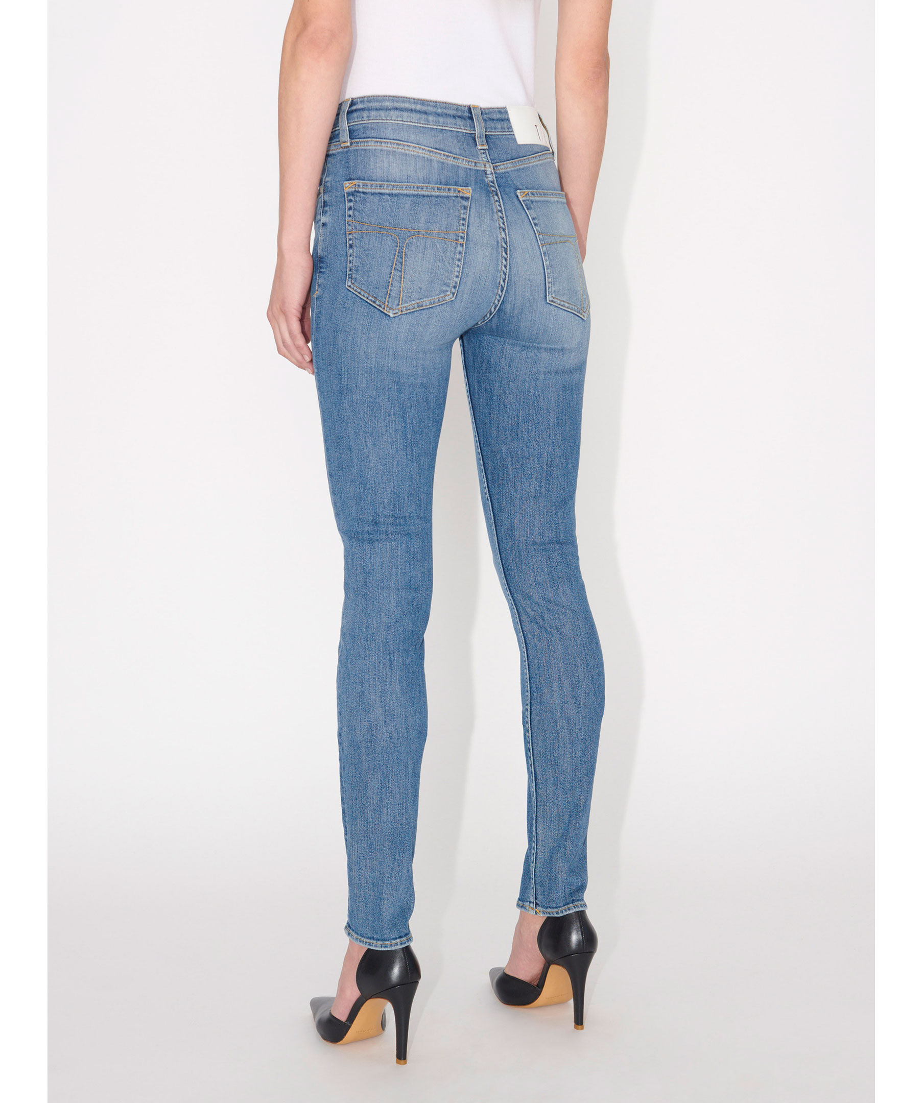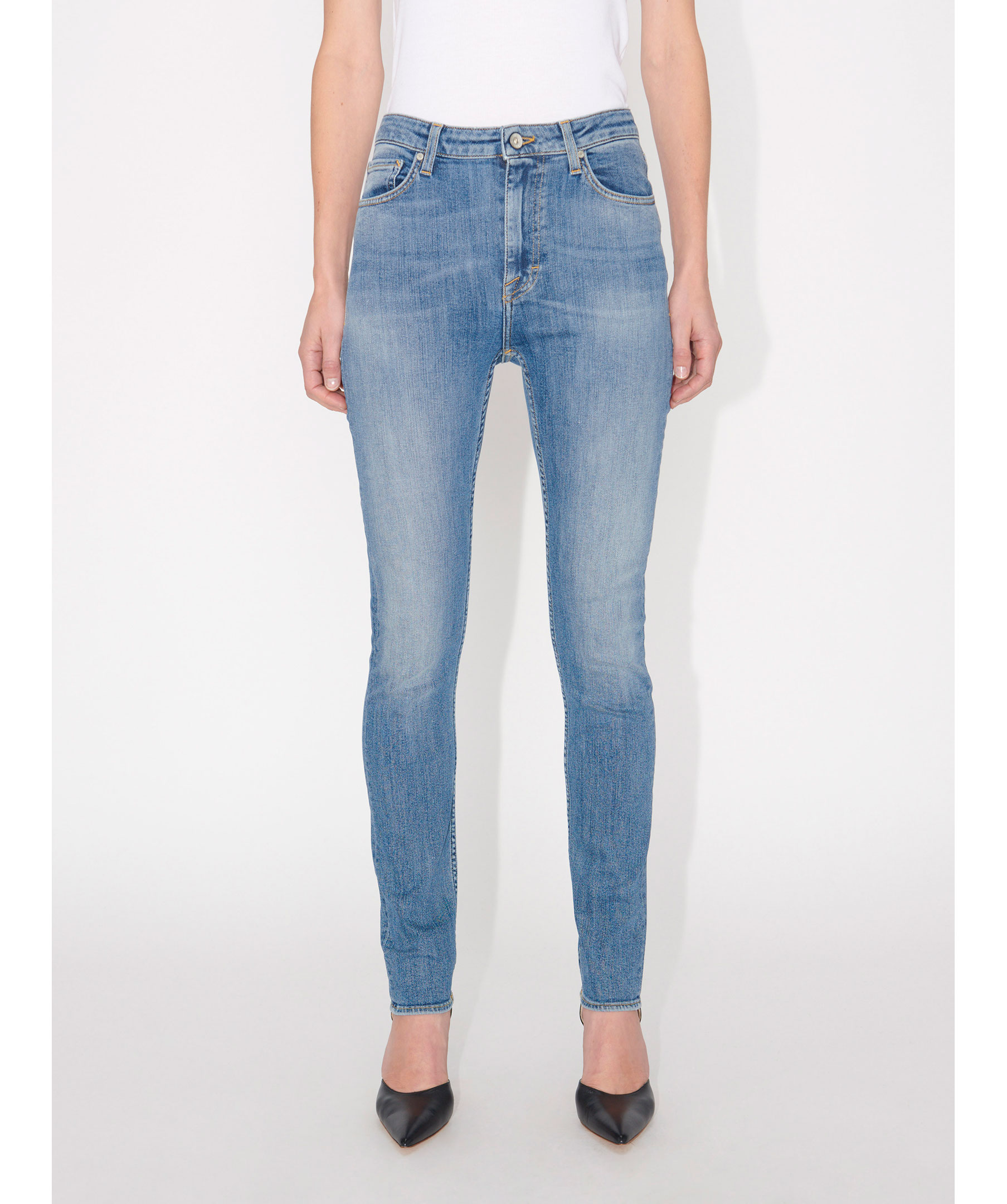 Blå jeans från Tiger of Sweden. Tillverkade i stetchig bomull. Super slim fit, hög midja, smala byxben.