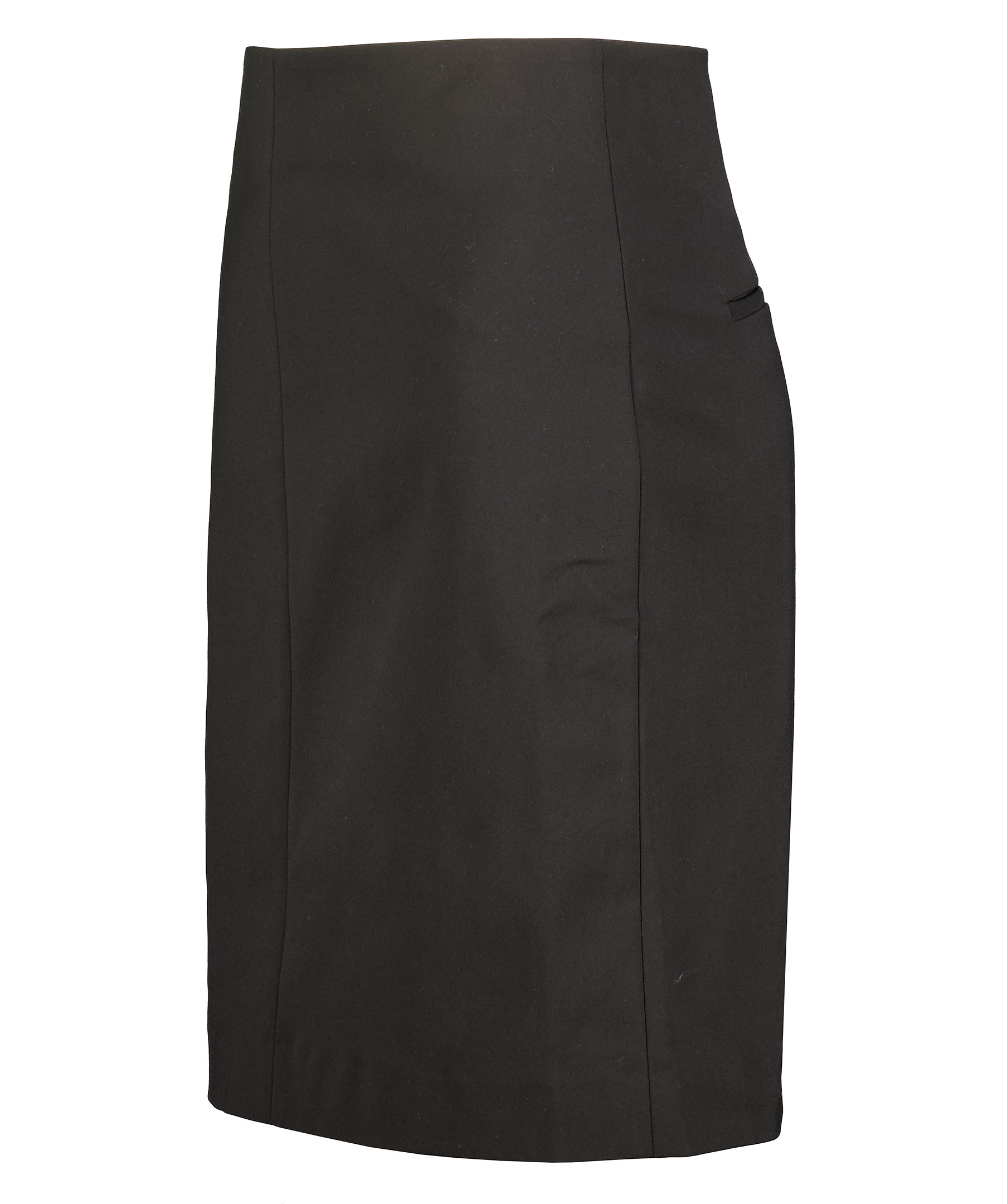 Svart pennkjol från Tiger of Sweden. Smal och figursydd passform, gjord i en stretchig bomullsmix. Kjolen slutar strax över knäna, dold dragkedja och slits baktill samt två två welt fickor.