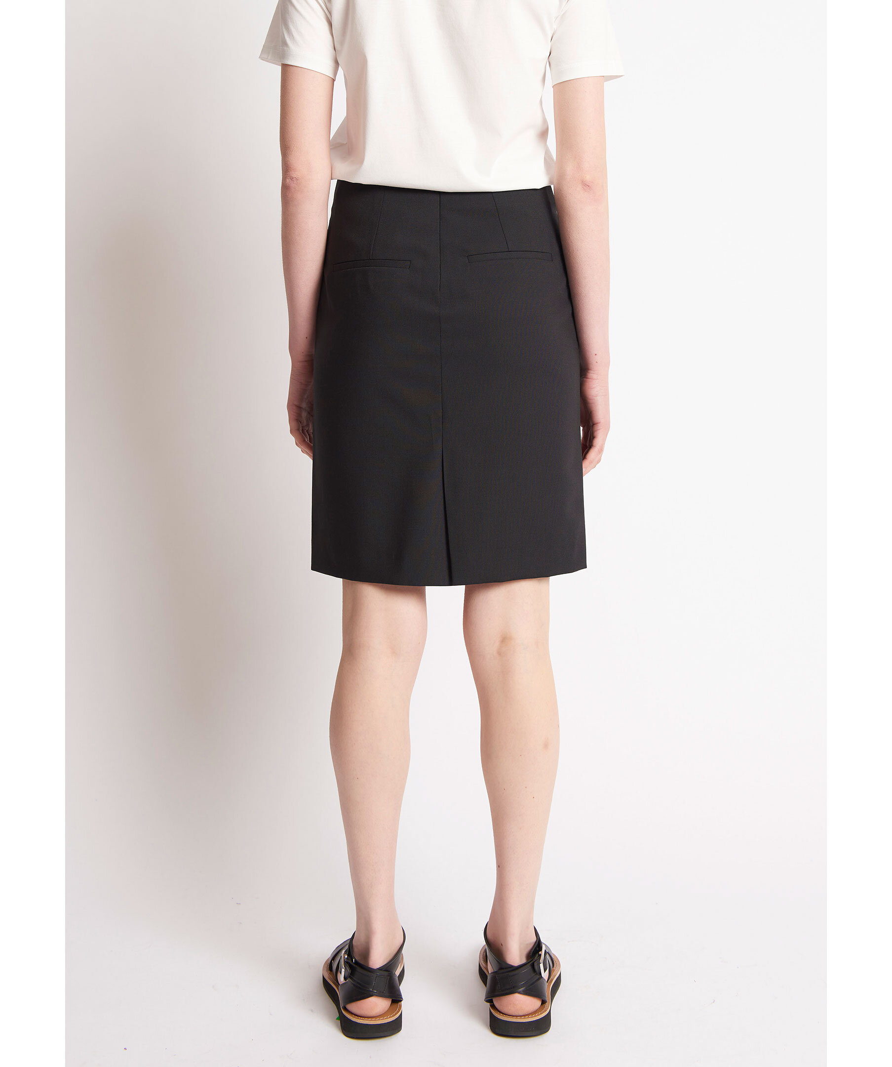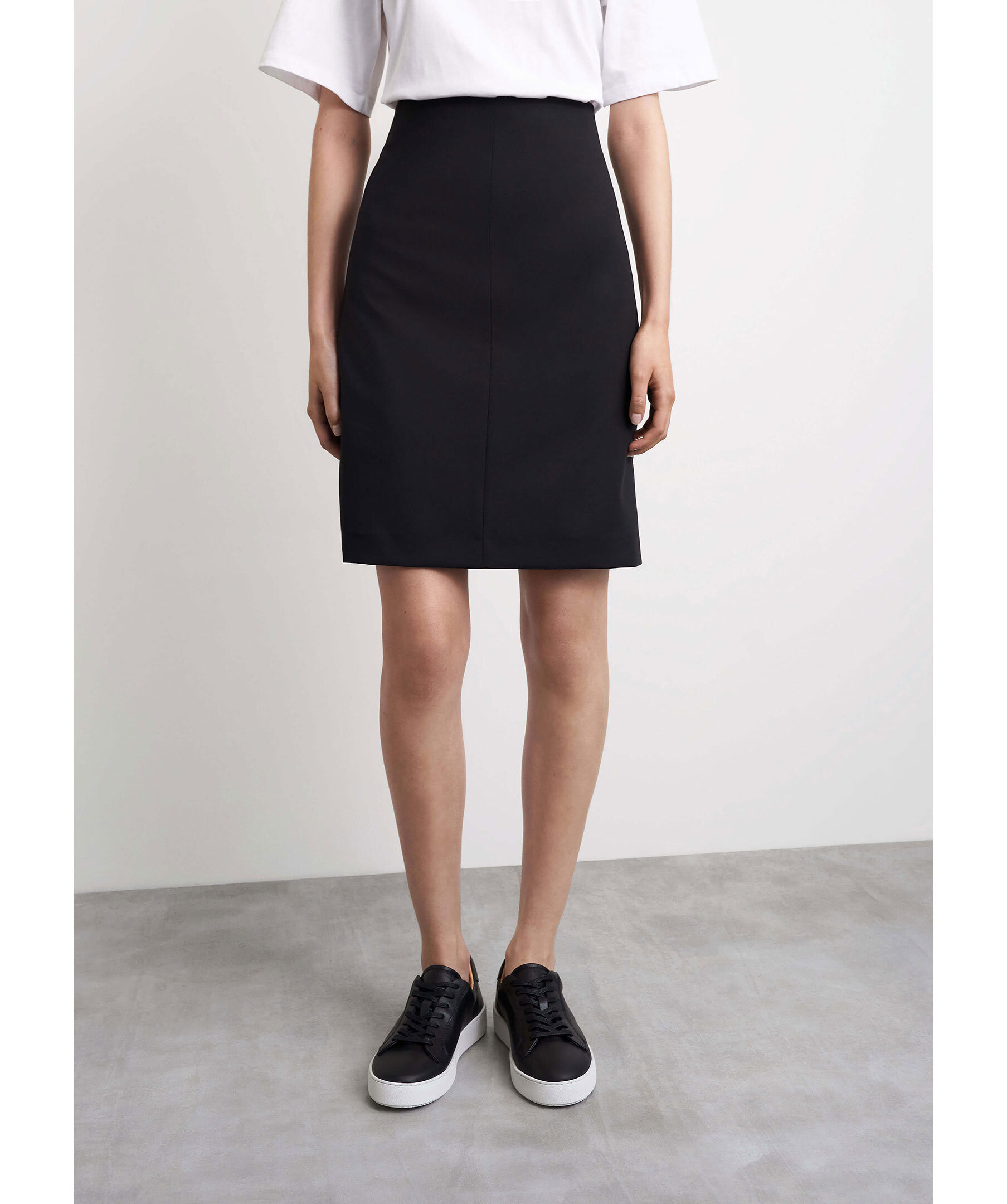 Svart extra-Slim Fit pennkjol i återvunnen polyester och ullstretch från Tiger of Sweden. Rynkfri och packvänlig tygkvalitet. Smal passform med längd ovanför knäet. Dold dragkedja bak, passpoalficka och slits bak. Sömdetaljer fram och bak, samt helt fodrad.