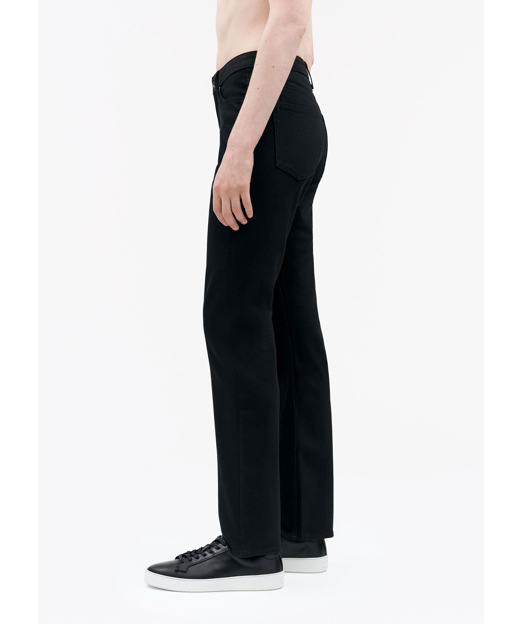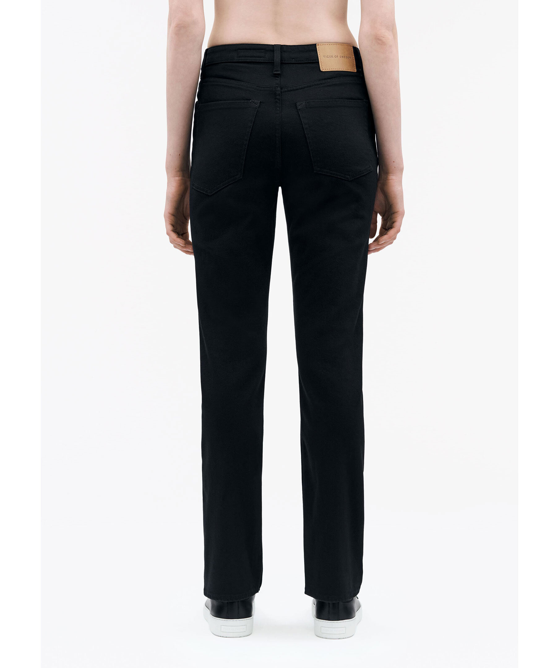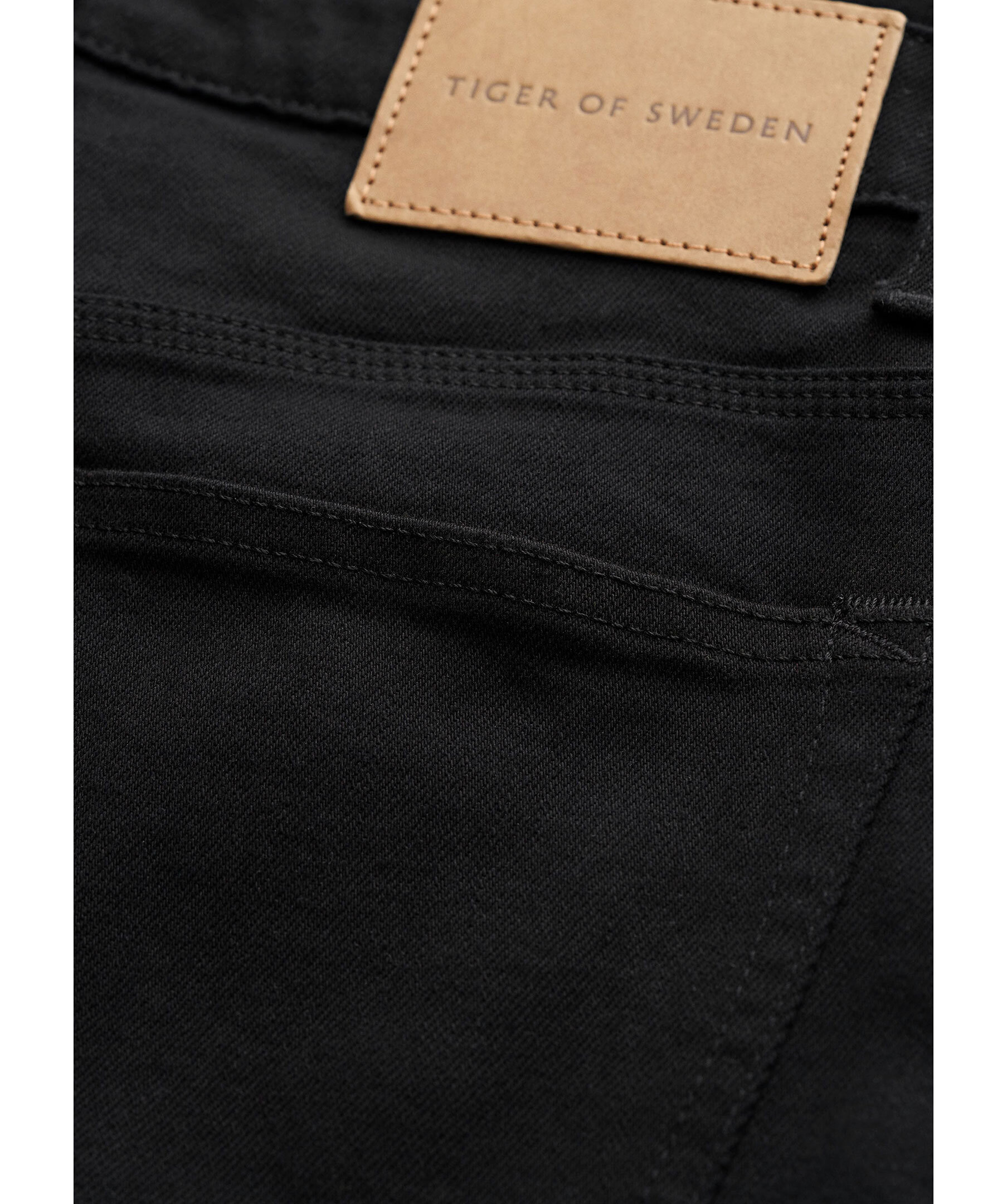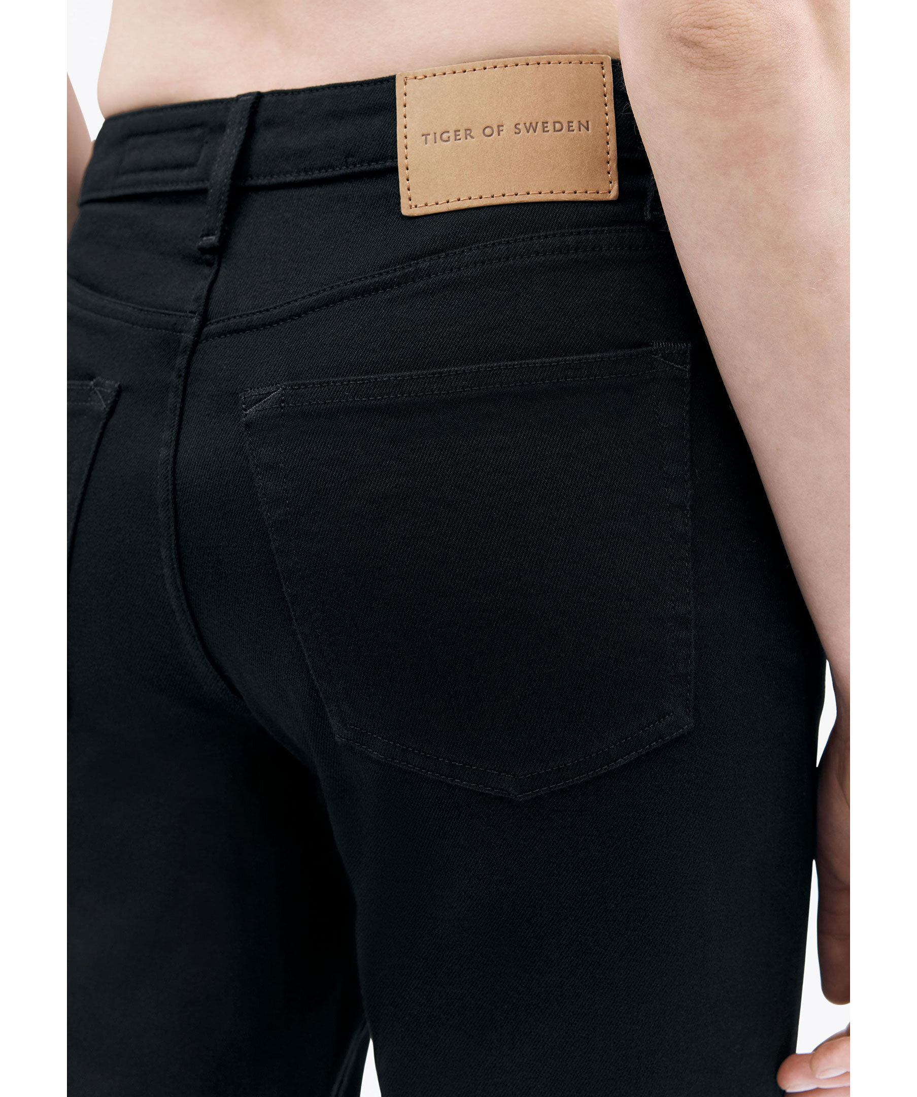 Svarta jeans från Tiger of Sweden. Slim Straight Fit i stretchig bomullsblandning för komfort och rörelsefrihet. De har en hög midja och raka ben som ger en smickrande silhuett. Klassisk femficksmodell som kombinerar stil och funktionalitet, perfekt för både vardag och mer uppklädda tillfällen.