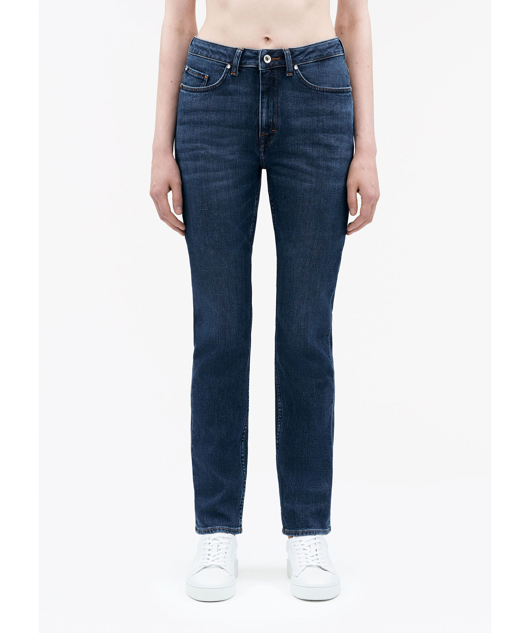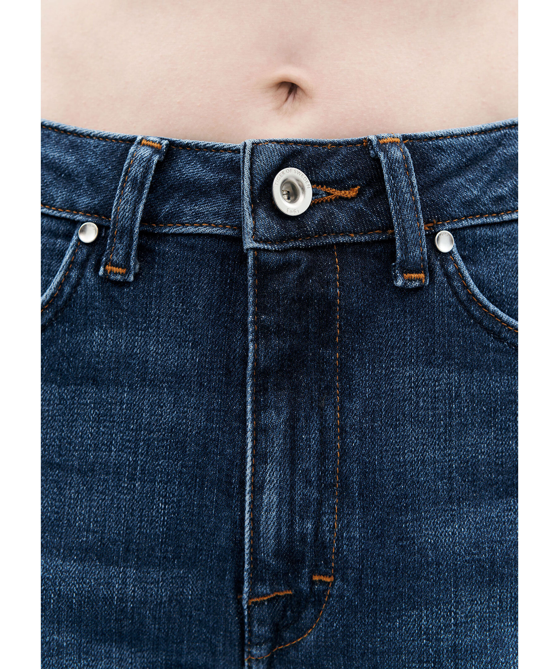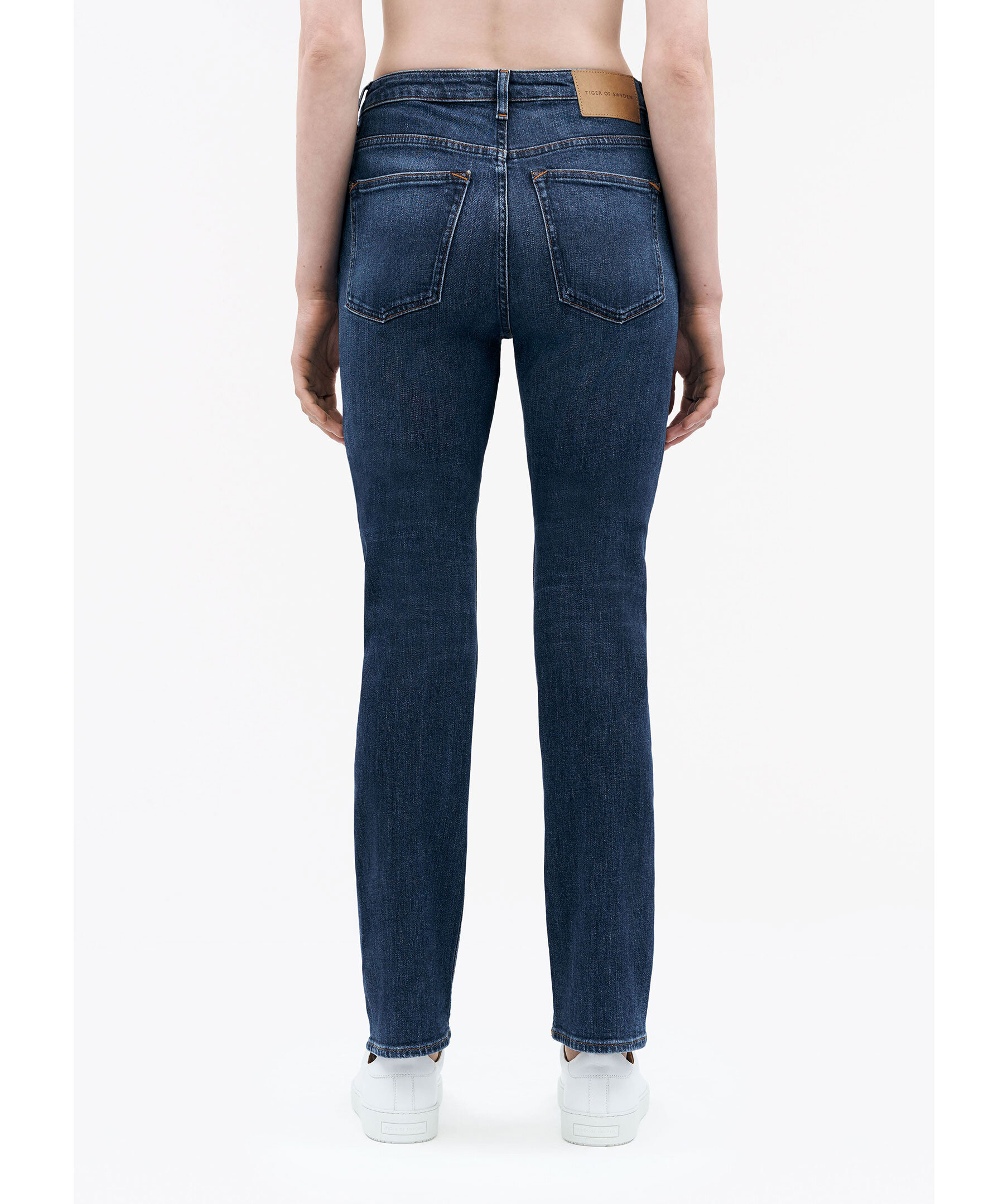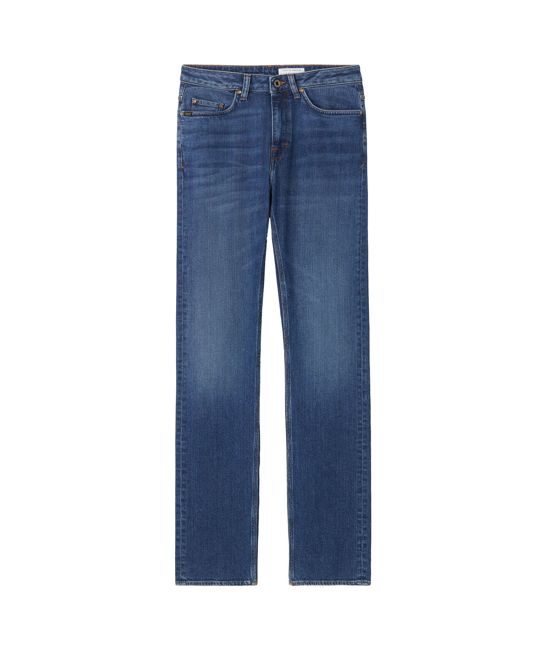 Blåa jeans från Tiger of Sweden. Slim Straight Fit i stretchig bomullsblandning för komfort och rörelsefrihet. De har en hög midja och raka ben som ger en smickrande silhuett. Klassisk femficksmodell som kombinerar stil och funktionalitet, perfekt för både vardag och mer uppklädda tillfällen.