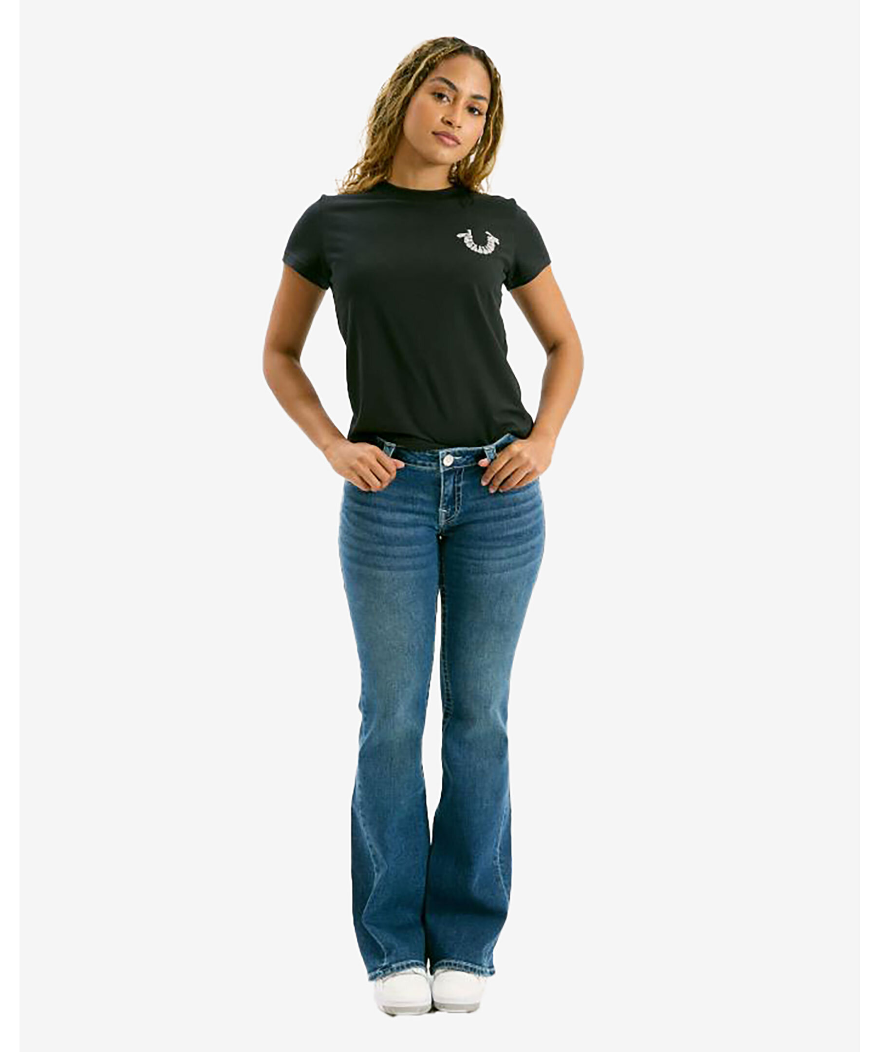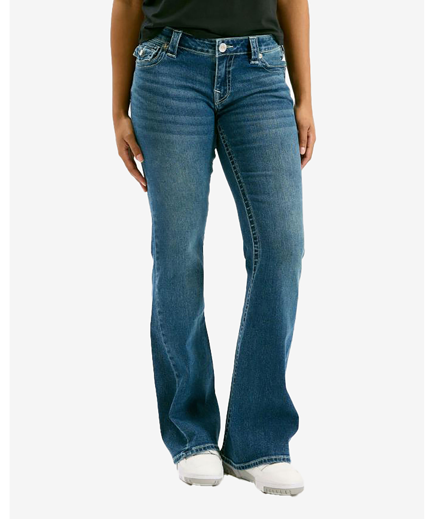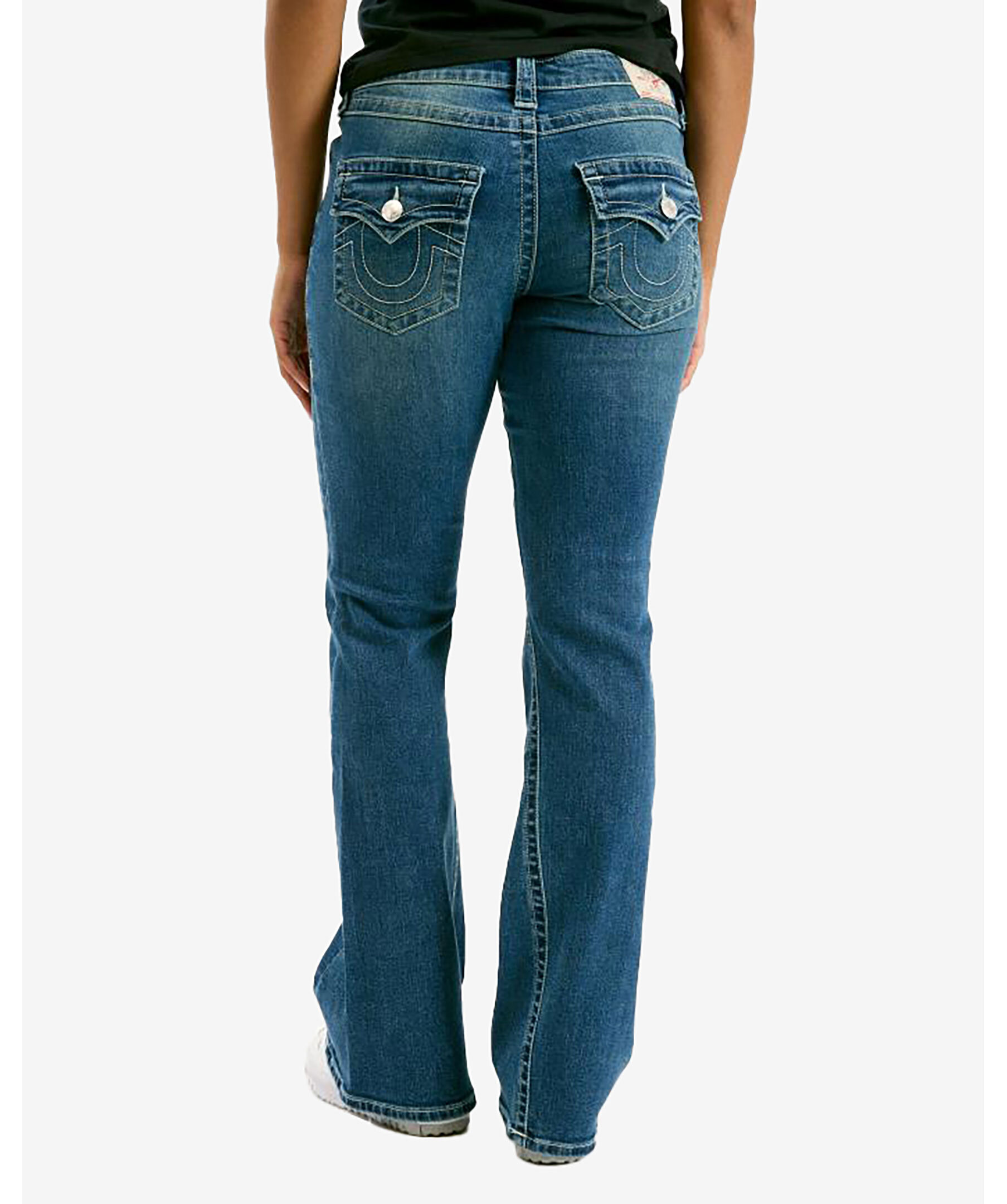 Blåa jeans från True Religion. Jeansen har låg midja med bälteshällor, fem fickor, myntficka och bakfickor med lock samt utsvängda ben. Tillverkade i en bomullsblandning.