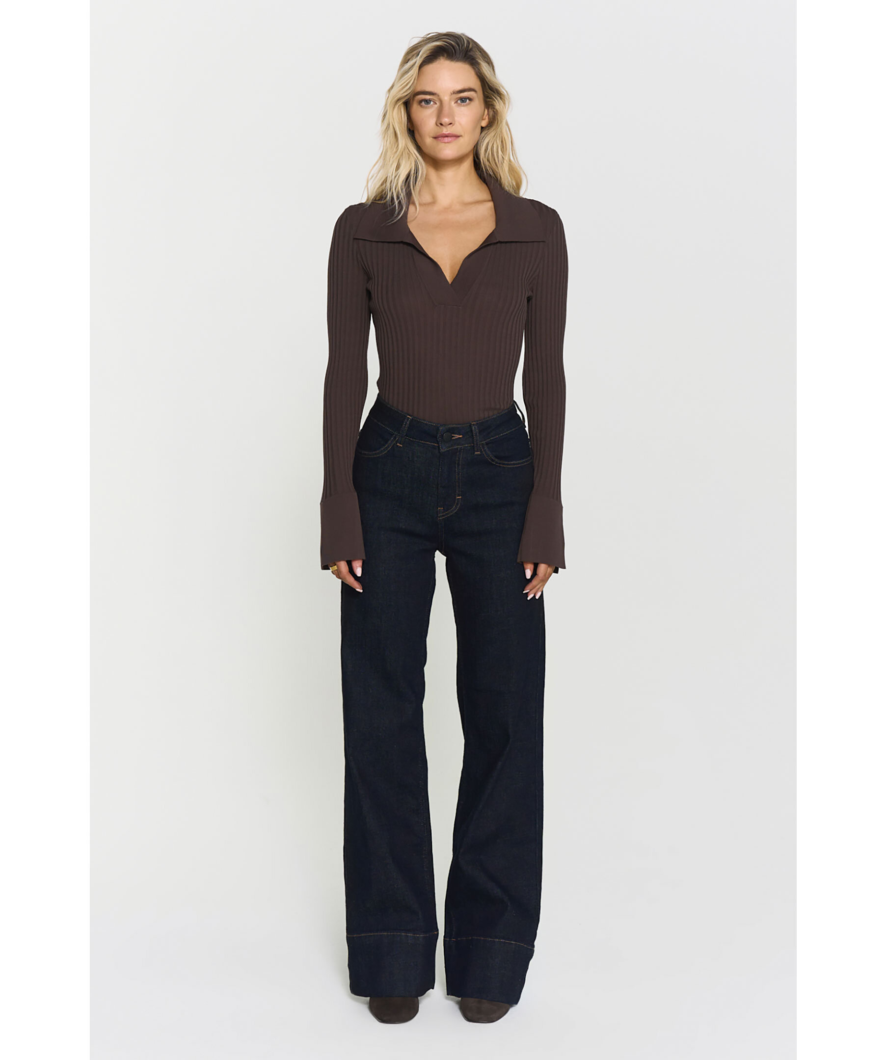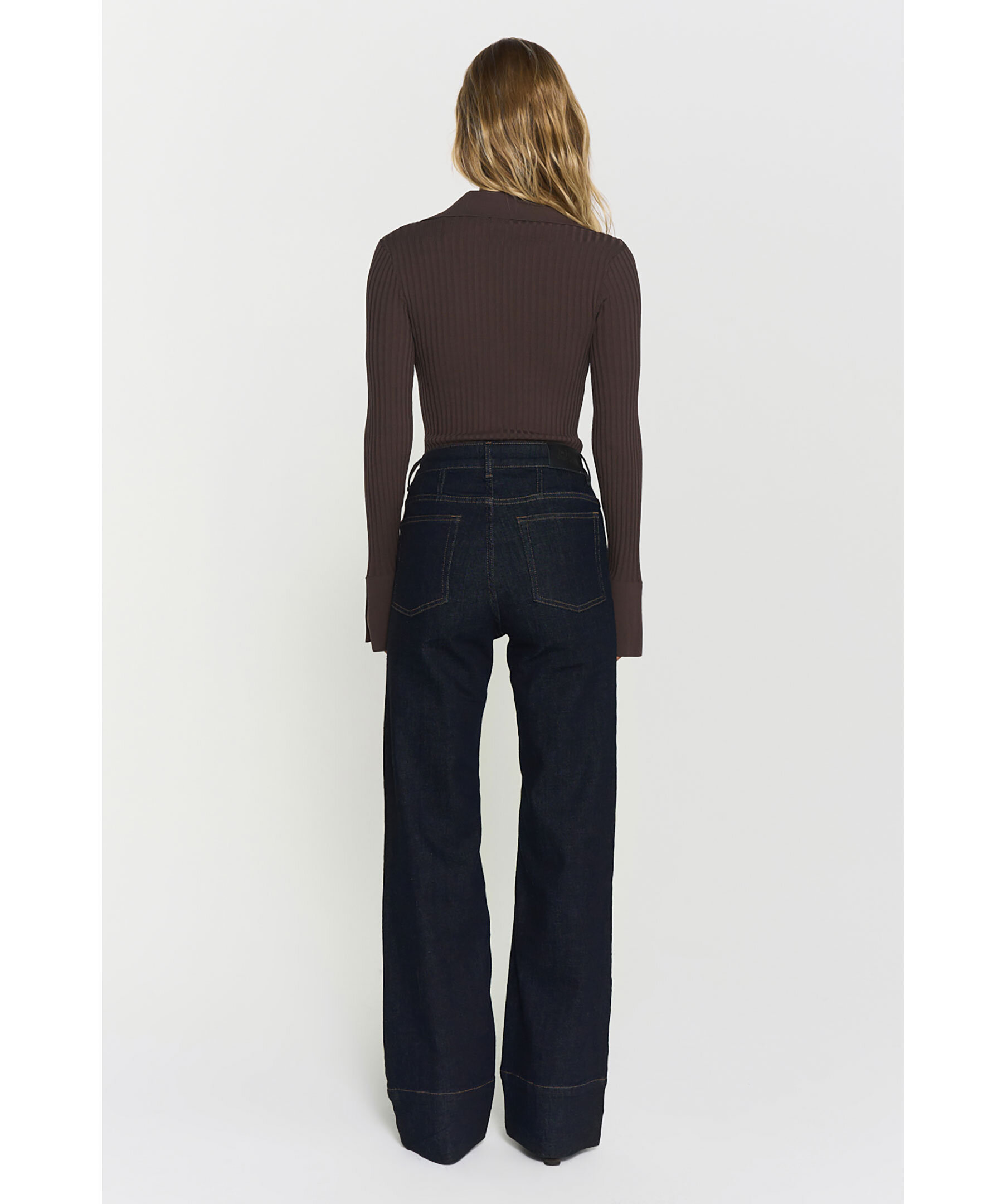 Mörkblåa jeans från Twist&Tango. Jeansen har en medelhög midja med bälteshällor, fyra fickor och en smal passform och bootcut-ben. Brett avslut på benen. Tillverkade i en bomullsblandning.